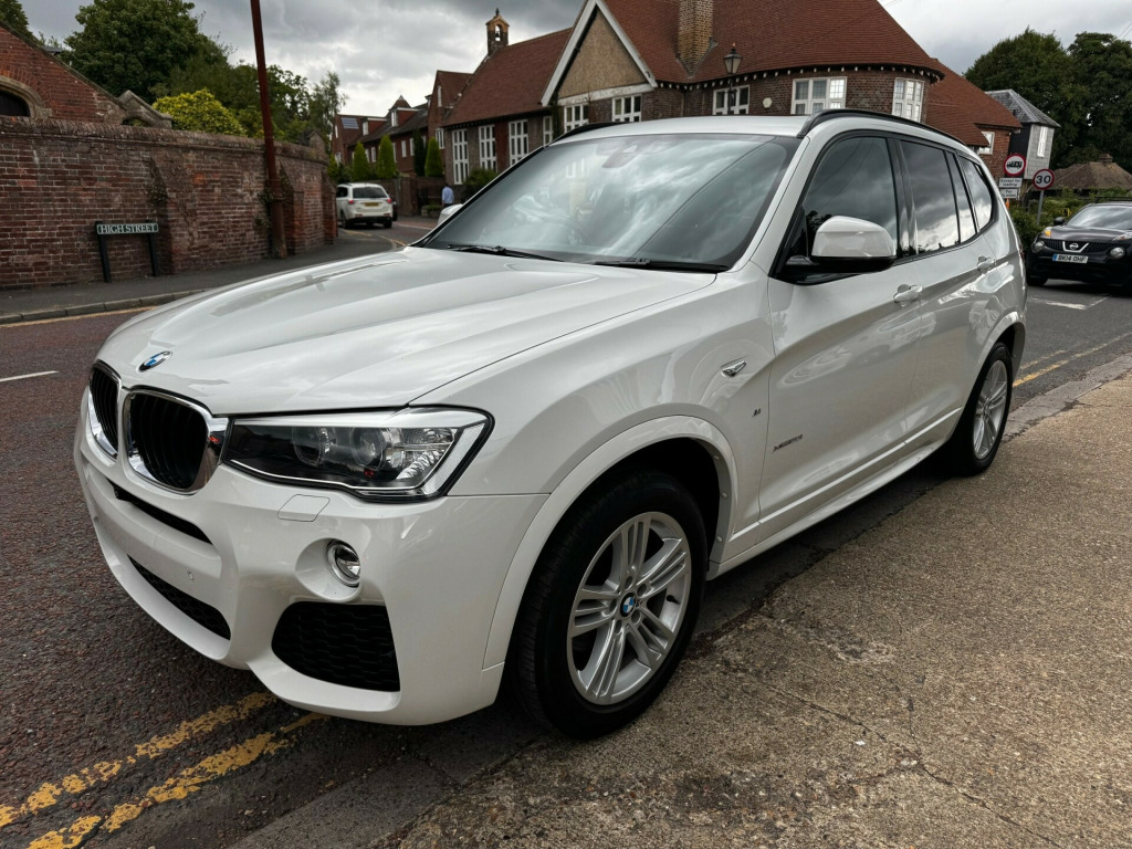 BIG Spec - ULEZ Compliant - Very Rare Car... 2015 BMW X3 xDrive 20i M Sport 2.0i, Presented in Alpine white with full Black nevada leather, Panoramic glass sunroof, Heated front seats, Reversing camera, Apple / Android Carplay, Electric front seats with drivers memory, Xenon headlights, Power folding mirrors, Electric tailgate, Parking sensors, M Sport AlloysWe have a regular supply of fantastic quality cars coming over from Japan, with the majority being high spec European models. We are importing more and more of them due to the superior condition, higher specification and rarer models. All of our cars are fully checked over, valeted, converted from km/h to mp/h and come with new MoT's. Every car comes with VAT and Import duties paid in full. All parts and servicing will be exactly the same as a UK vehicle. v power socket in front centre console, bmw connecteddrive online services, bmw emergency call, bmw teleservices, bluetooth hands free with usb audio interface, dab digital radio, navigation system - bmw professional multimedia, real time traffic information, remote services, shark fin, 19in alloy wheels - bi-colour ferric grey m light double spoke style 698 m with run-flat tyres, direction indicator - side repeaters - integrated in exterior mirrors, electric windows - front and rear with open-close fingertip control - anti-trap facility and comfort closing function, exhaust tailpipe - chrome - dual - round - split - left and right, exterior b pillar - black, exterior mirrors electrically adjustable, exterior parts in body colour, exterior trim - high-gloss shadowline, heat protection glazing with green tint, heated windscreen washer jets, kidney grille - chrome with black high-gloss vertical slats, m aerodynamic bodystyling, m sport package, model designation, roof rails - shadowline high-gloss black, run flat tyres, side exterior m designation badges, tyres - reduced rolling resistance, air conditioning - automatic, ambient lighting, armrest - front with storage compartment, armrest - rear centre with two cupholders, bottle holders integrated into door trim storage compartments - front - up to 1 litre - rear - up to 750ml, central locking switch - doors - fuel filler cap - luggage compartment, cup holders - front - two with removable oddments tray-lid, gear knob - leather, grab handles - integrated in roof lining x4, headlining - anthracite, instrument cluster, interior lighting, interior rear-view mirror with automatic anti-dazzle function, interior trim - aluminium rhombicle with highlight trim finishers pearl chrome, luggage compartment - light, luggage compartment storage, personal profile, rain sensor with automatic headlight activation, rear seat headrests - three, rear seats - slope adjustable, seat heating for driver and front passenger, semi digital instrument cluster, side armrests - front and rear integrated into door trim, sport seats - front, start-stop button with comfort go keyless engine start and auto start-stop deactivation button, steering column with manual reach and rake adjustment, steering wheel - gearshift paddles, steering wheel - m sport leather multifunction, storage compartment - rear centre console and front-rear door trim, sun visors with vanity mirrors and ticket holder, tailgate operation - automatic, through-loading system, tool kit located in luggage compartment, twin horns, welcome light, windscreen wipers with adjustable intervals, airbags, alarm system - thatcham 1 with remote control and engine immobiliser, battery safety cut off, bumper system front and rear - replaceable deformation elements for impacts up to 9mph, child locking system - rear doors, child seat isofix attachment - rear, crash sensor, dsc - dynamic stability control plus, dynamic brake lights, electro mechanical parking brake, first aid kit and warning triangle, incorrect fuelling protection system, remote control including integrated key - 2, seat belt security check for driver and front passenger, side impact protection, three-point seat belts - all seats, visible vin, attentiveness assistant, brake pad wear indicator - front and rear, condition based service, cruise control with brake and speed limiting function, drive performance control with eco pro - comfort and sport modes, eps - electric power steering, m sport suspension, obc - on board computer, oil sensor for level and grade - warning by check control system, optimum shift indicator, pdc - park distance control - front and rear, parking assistant, performance control, reversing assist camera, tpms - tyre pressure monitoring system, idrive controller - 8 favourite buttons, check control warning system for monitoring of lights and door-luggage compartment open warning, high level third brake light using led technology, led fog lights - front, led headlights with extended contents, led tail lights, lights-on warning by audio warning signal when ignition is switched off