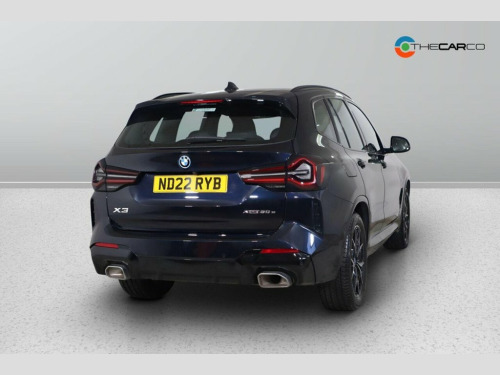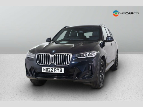 This 2022 BMW X3 30e M Sport is a remarkable example, boasting exceptionally low mileage for its age with only 23,301 miles covered and a single owner from new. This Four Wheel Drive plug in hybrid, powered by a 2.0 litre petrol engine, meets Euro 6 emissions standards. Inside, you'll find luxurious Vernasca Leather upholstery in Black with Grey Stitching, complemented by an Automatic Three Zone Air Conditioning system for ultimate comfort. The X3 30e M Sport offers an impressive 0 to 62mph acceleration time of just 6.1 seconds, showcasing its dynamic performance. This vehicle is equipped with an advanced Parking Assistant, which includes front and rear sensors, along with a Reversing Assist Camera, making manoeuvring effortless. Adaptive LED headlights provide superior visibility, enhancing both safety and the driving experience. These features collectively demonstrate the superior quality and advanced technology present in this BMW X3. 19in Alloy Wheels - 887M M Y-Spoke - Mid, Acoustic Glass, Active Guard, Air Conditioning - Automatic with Three-, Airbags - Driver and Front Passenger Sid, Airbags - Driver and Passenger, Ambient Lighting, Armrest - Rear Centre with Two Cupholder, Attentiveness Assistant, Automatic Powered Electric Bootlid, Automatic Windscreen Wiper and Headlight, BMW Connected Package Professional, BMW ConnectedDrive Online Services, BMW Emergency Call, BMW Live Cockpit Professional, BMW TeleServices, Brake Energy Regeneration, Charging Cable - Mode 2, Condition Based Service, Crash Sensor, Cruise Control, DAB Tuner, DSC - Dynamic Stability Control Plus, Deletion Lumbar Support-Width Adjustment, Door Handl