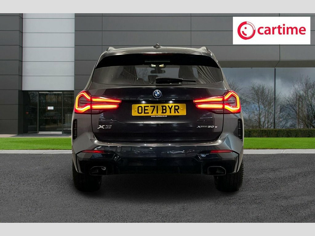 This 2022 BMW X3 30e M Sport is a superb example, having had only one owner from new and boasting a clear vehicle history check. This four wheel drive plug in hybrid SUV features a 2.0 litre petrol engine and meets Euro 6 emissions standards. Inside, you'll find luxurious Vernasca leather upholstery in black with grey stitching, complemented by a Technology Package that includes a Head Up Display. The M Sport Pro Pack further enhances its appeal, alongside striking 20 inch M Double Spoke Style 699 alloy wheels in Jet Black. For effortless manoeuvring, it comes equipped with a Parking Assistant, complete with front and rear sensors and a rear camera. The performance of this X3 is truly impressive, accelerating from 0 to 60mph in just 6.1 seconds, demonstrating its dynamic capabilities. This swift acceleration, combined with the advanced technology and premium M Sport trim, sets this particular X3 apart from other vehicles in its class. It offers a compelling blend of efficiency from its plug in hybrid system and the engaging driving experience expected from a BMW, all within a practical and stylish SUV body. 12V Power Socket in Front Centre Console, 19in Alloy Wheels - 887M M Y-Spoke - Mid, 20in Alloy Wheels - M Double-Spoke Style, ABS - Anti Lock Braking System, Acoustic Glass, Active Guard, Air Conditioning - Automatic with Three-, Airbags - Driver and Front Passenger Sid, Airbags - Driver and Passenger, Alarm System - Thatcham 1 with Remote Co, Ambient Lighting, Armrest - Front - Fixed with Storage Com, Armrest - Rear Centre with Two Cupholder, Attentiveness Assistant, Automatic Powered Electric Bootlid, Automatic Windscreen Wiper and Headlight, Automatically Dimming Rear View Mirror, Battery Safety Cut Off, BMW Connected Package Professional, BMW ConnectedDrive Online Services, BMW Emergency