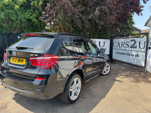 Cars2u - Quality Used Cars with a Personal Touch, , Established in 2012, Cars2u is a family-run business dedicated to providing quality used vehicles with a friendly ,no-pressure approach. Conveniently located on the outskirts of Ipswich, we have excellent transport links via the A12 and A14 and are just a 10 minute drive from Ipswich train station. At Cars2u , every vehicle we sell is HPI clear and undergoes a full inspection to ensure it meets our high standards .For added peace of mind ,all cars come with an RAC warranty. We also offer finance options ,part exchange and nationwide delivery, making it easier than ever to find your perfect car. , Our focus is on customer satisfaction, providing a relaxed and professional service without the pressure of a hard sell. whether youre looking for your next car or simply exploring your options were here to help. , Visit Cars2u today and experience a stress-free way to buy a car. , WE ARE VERY PLEASED TO OFFER THIS VERY GOOD LOOKING VERY CLEAN 2012 12 BMW X3 2.0 XDRIVE 20D M SPORT AUTO, GOOD SPEC ,SHE HAS COVERED A MEAR 106,000 MILES FROM NEW ,SHE WILL BE SERVICED WHEN SOLD AS WELL AS A CURRENT MOT UNTILL 06/2026 AND WILL COME WITH A 3 MONTH RAC WARRANTY FOR HER NEW OWNERS COMPLETE PEACE OF MIND.