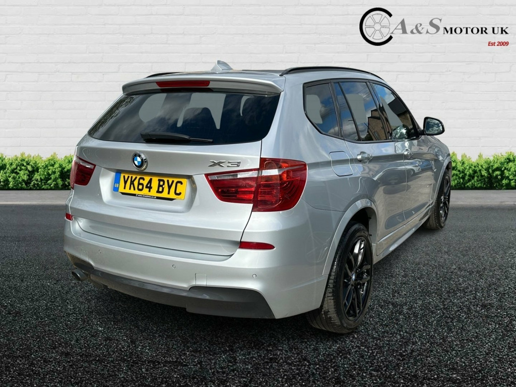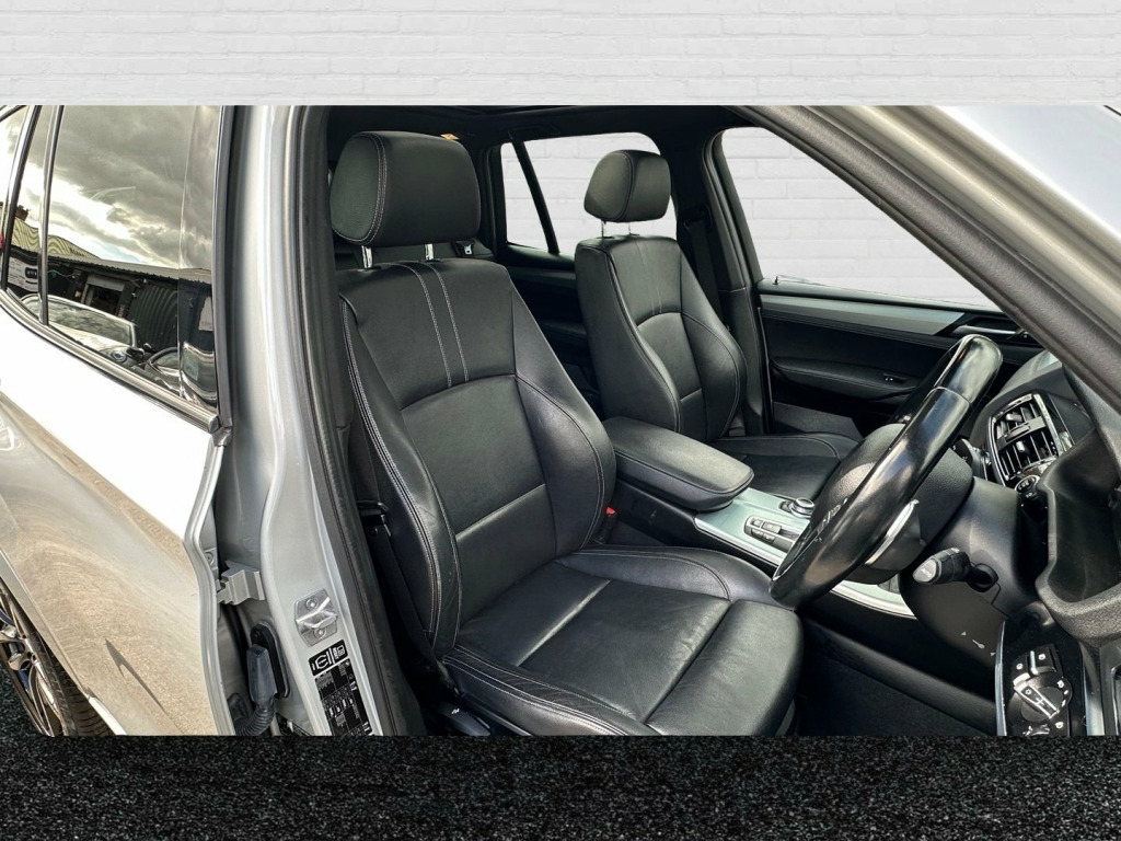 YouTube WALK AROUND VIDEO LINK: *** https://youtu.be/Ap7F3eRY9XY?si=Ub165sHewPtBTD8Z *** , , ____ This Diesel BMW X3 is registered in September 2014 with only 98,184 miles and just 2 previous keepers , ____ Automatic, Silver, 2 Keys, Service History (BMW Service invoices and recent service), , ____ ULEZ COMPLIANT, ____ MOT 01/09/2026, Insurance Group 31,, ____ Road Tax (£195) Per Year, 187 BHP, EURO 6, , , *** WARRANTY ***, ____ This vehicle comes with a 3-month warranty (upgradable to 6 or 12 months) and will leave our showroom with a full PDI check list for your peace of mind. ____ Secure this vehicle today for as little as a £250 deposit, , , *** STANDARD AND UPGRADED FEATURES *** , SAT NAV, CRUISE CONTROL, Full Leather Interior, USB, AUX, Heated Seats, Bluetooth, Trip Computer, Air Conditioning, LED DAYTIME RUNNING LIGHTS, Panoramic Glass Sunroof, Key-Less Start, Electric Sunroof, Front and Rear Parking Sensors, Automatic Headlights, Anti-Lock Brakes (ABS),, , *** PLEASE NOTE THIS ADVERTISEMENT IS FOR INFORMATIONAL PURPOSES ONLY *** , The actual car may have additional features or slight variations in the description. Please contact us on 01619414190 for the most accurate information. , *** PAYMENT ***, We accept debit cards for deposits only. Proof of identity is required. We only accept payments on site and do not accept payments over the phone. We can accept bank transfers and Bank Note Payments up to £5000. +++ TERMS AND CONDITIONS +++ , We trust that you will enjoy many trouble-free miles of motoring and that the vehicle meets with the standard you would expect from a reputable and respected motor dealer such as ourselves. Whilst we endeavour to ensure that every vehicle, we sell meets only the highest possible standards. Unfortunately, on occasion defects do appear on a vehicle subsequent to sale which could not have possibly foreseen. Should you discover any fault with above vehicle shortly after purchase then we would ask that you take the following course of action: 1. Inform us as soon as possible, 2. Try to bring / transport the vehicle to our premises so that we may inspect the alleged problem and arrange a suitable course of action, PLEASE DO NOT TAKE THE VEHICLE TO A THIRD-PARTY GARAGE before allowing us to inspect it, as we will NOT ACCEPT liability for any work done by another garage. it is important to remember that very often what might appear to you as serious fault is anything but, and can accordingly be rectified by our skilled and experienced staff at little or no cost to yourself. We will not accept responsibility for other garages cost unless expressly authorized by ourselves. Please note: We cannot accept liability for wear and tear items or for any defects commensurate with the vehicles age, price and mileage. These terms and conditions are only valid for 3 months from the date of sale. Unless both parties are agreed on different terms, sold as trade sale or sold with faults (customer is informed before purchase). , ,