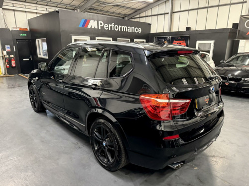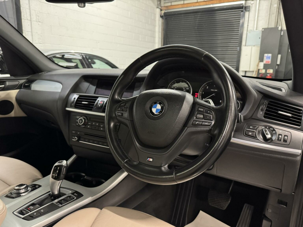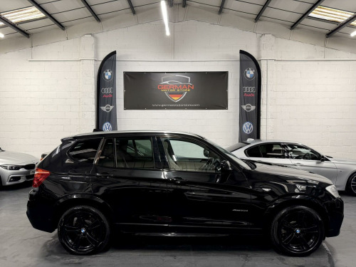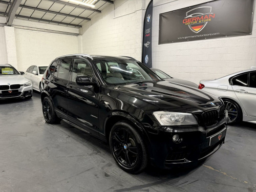 German Motor Store are delighted to offer this 2013 BMW X3 20d M Sport Auto to market, finished in Sapphire black with oyster Nevada leather Interior trim. This stunning X3 arrives with a full service history, & will leave us with a fresh 12 month MOT. With just 2 previous owners, it also comes with a staggering £7k of specification. This includes... Variable sports steering, sports auto paddle shift box, heated seats, panoramic electric glass roof, folding mirrors, upgrade 19'' gloss black alloy wheels, upgrade gloss black kidney grills & sun protection giving a stealth like finish. It also has professional media navigation, enhanced bluetooth,, auto headlights & wipers. Returning over 50 MPG this X3 is very economical to run. Viewers Will Not be Disappointed on Inspection. Part Exchange Welcome. Be sure to check our google reviews to see what other are saying.Viewing By Appointment Only.German Motor Store Limited is a family operated business specializing in quality used German Cars with over 30 years' experience in the industry! We are authorized and registered by the FCA so can arrange finance for our customers if necessary, through our selected finance companies. Our company aim is to independently offer quality used German vehicles at competitive prices, with an excellent and honest service backed up by dealership facilities. We are located on the out skirts of the Derbyshire Peak District in Chesterfield, 10 minutes' drive from either junction 29 or 30 of the M1 Motorway. We are very relaxed here at German Motor Store you will be able to view your selected car in your own time and never feel under pressure.. 12V Power Socket - Centre Console, 12V Power Socket - Luggage Compartment, 18in Alloy Wheels - Light M Star Spoke - 368M, ABS - Anti Lock Braking System, Additional Detachable Cupholder, Air Conditioning - Automatic with Two-Zone Control, Airbags - Driver, Airbags - Driver and Front Passenger Side, Airbags - First and Second Seat Row ITS Head, Airbags - Passenger, Airbags - Passenger Deactivation, Alarm System Thatcham 1 with Remote Control, Ambient Interior Lighting, Anti Roll Bars - Front and Rear, Armrest - Front with Storage Compartment, ASC - Automatic Stability Control, Automatically Dimming Rear View Mirror, Auxiliary Input, Bluetooth Hands Free with USB Audio Interface, BMW Mobility System, BMW Online services, BMW Professional Radio - Single CD and MP3, BMW TeleServices, Brake Force Display, Bumper - Regeneration to Original Shape - MPH Specific, Cathodic Dip Paintwork Preservation of Hollow Cavities Underfloor Protection, CBC - Cornering Brake Control, Central Locking - Doors Boot Fuel Cap via Remote Key, Child Proof Locking System - Rear Doors, Child Seat ISOFIX Attachment - Rear, Courtesy Lights - Front and Rear with Soft On-Off Dimming, Crash Sensor - Activating Central Locking-Hazard Warning Lights-Fuel Cut Off, Cruise Control with Brake Function, DAB Digital Radio, DBC - Dynamic Brake Control, Deformation Zones - Front and Rear, Door Handles - Body Colour, Door Mirrors - Drivers Aspheric, Door Mirrors - Electric and Heated and Aspheric, Door Sill Finishers - M Designation, Drive Performance Control, DSC - Dynamic Stability Control - Stabilises the Vehicle in Extreme Situations - Controls Traction, DTC - Dynamic Traction Control, EBD - Electronic Brake-Force Distribution, Electric Windows - Front and Rear with Open-Close Fingertip Control, Electro Mechanical Parking Brake, Engine Immobiliser, Enhanced Bluetooth Telephone Functionality with USB Audio Interface and Voice Control, Exhaust Tailpipe - Finisher in Chrome, Exterior Trim - High-Gloss Shadowline, First Aid Kit, Floor Mats - Velour, Follow Me Home Headlight Function, Footwell Lights - Front, Front Fog Lights, Glove Compartment - Illuminated, Grab Handles with Four Coat Hooks, HDC - Hill Descent Control, Head Restraints - Front and Rear, Head Restraints - Height and Angle, Headlights - Automatic Activation, Headlights - Height Adjustment, Headlights - Washer System, Headlining - Anthracite, Heated Windscreen Washer Jets, High Level Third Brake Light, iDrive Controller on Centre Console with 6.5in Colour Display, Incorrect Fuelling Protection System, Interior Lighting, Interior Trim - Brushed Aluminium, Kidney Grille - Chrome with Black Vertical Slats, Locking Wheel Bolts, Luggage Compartment - Additional Storage on Each Side and Under Floor, Luggage Compartment - Illuminated with Four Lashing Eyes in Boot Floor, Luggage Compartment - Removable Cover, M Aerodynamic Bodystyling, M Sport Package, Multifunction Controls for Steering Wheel, OBC - On-Board Computer, PDC - Park Distance Control - Front and Rear, PDC - Park Distance Control - Rear, Performance Control, Power Steering - Electric, Rain Sensor, Reading Lights - Front and Rear, Roof Rails - High-Gloss Shadowline, Run Flat Tyres, Seats - 60-40 Split Folding Rear, Seats - Manual Adjustment for Height - Fore and Aft Position - Recline Angle, Side Impact Protection, Speaker System with Five Speakers, Sport Seats - Front, Steering Column with Manual Reach and Rake Adjustment, Storage Compartment - Front Door Pockets, Storage Compartment - Trays in Centre Console, Sun Visors with Illuminated Vanity Mirrors and Ticket Holder, Suspension - Sport, TPWS - Tyre Pressure Warning System, 19in Alloy Wheels - Light M Double Spoke - 369M, Black Sapphire, BMW Apps Interface, BMW Assist, Door Mirrors - Folding - Automatically Dimming, Enhanced Bluetooth Telephone Preparation with USB Audio Interface, Media Package - BMW Professional, Navigation System - BMW Professional Multimedia, Nevada Leather - Oyster, Panoramic Gla.