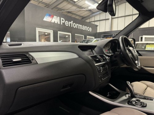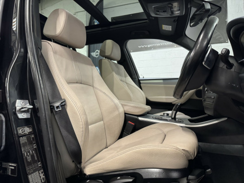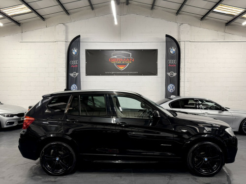 German Motor Store are delighted to offer this 2013 BMW X3 20d M Sport Auto to market, finished in Sapphire black with oyster Nevada leather Interior trim. This stunning X3 arrives with a full service history, & will leave us with a fresh 12 month MOT. With just 2 previous owners, it also comes with a staggering £7k of specification. This includes... Variable sports steering, sports auto paddle shift box, heated seats, panoramic electric glass roof, folding mirrors, upgrade 19 gloss black alloy wheels, upgrade gloss black kidney grills & sun protection giving a stealth like finish. It also has professional media navigation, enhanced bluetooth,, auto headlights & wipers. Returning over 50 MPG this X3 is very economical to run. Viewers Will Not be Disappointed on Inspection. Part Exchange Welcome. Be sure to check our google reviews to see what other are saying. , Viewing By Appointment Only. , German Motor Store Limited is a family operated business specializing in quality used German Cars with over 30 years experience in the industry! We are authorized and registered by the FCA so can arrange finance for our customers if necessary, through our selected finance companies. Our company aim is to independently offer quality used German vehicles at competitive prices, with an excellent and honest service backed up by dealership facilities. We are located on the out skirts of the Derbyshire Peak District in Chesterfield, 10 minutes drive from either junction 29 or 30 of the M1 Motorway. We are very relaxed here at German Motor Store you will be able to view your selected car in your own time and never feel under pressure.