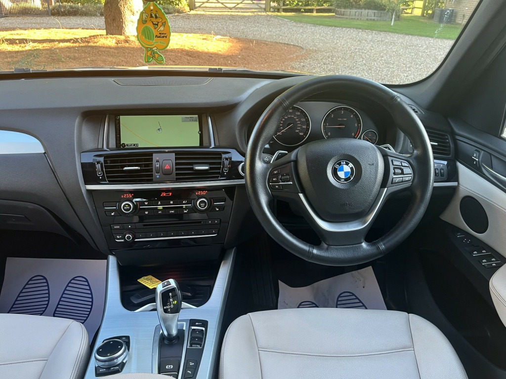 THIS STUNNING 1 FORMER KEEPER BMW X3 2.0D XLINE AUTO XDRIVE HAS BEEN OWNED BY CURRENT OWNER FOR 10 YEARS. IT HAS FULL SERVICE HISTORY BY BMW, SERVICED 13 TIMES BY A BMW MAIN DEALER, INCLUDING JUST FULLY SERVICED AND MOTD AND NEW REAR DISCS AND PADS FITTED. IT COMES WITH OVER £5600 OF EXTRAS including a reverse camera and heated seats. IT COMES IN Space Grey Metallic WITH Nevada leather, Oyster. Beige Full leather interior, Four wheel-drive, 5 seats, Space Grey Metallic, 2 owners, Upgrades - Media Package - BMW Professional, 19in Alloy Wheels - Light Y-Spoke Style 608, Navigation System - BMW Professional Multimedia, Advanced Parking Package, Enhanced Bluetooth Telephone Preparation with USB Audio Interface, Reversing Assist Camera, Concierge Service, Headlining - Anthracite, Through-Loading System, Interior Trim - Brushed Aluminium, Luggage Compartment Separating Net, Steering Wheel - Gearshift Paddles, Internet, Servotronic Steering, Remote Services, Nevada Leather - Oyster, Standard Features - 12V Power Socket - Centre Console, 12V Power Socket - Luggage Compartment, 18in Alloy Wheels - Light Double-Spoke Style 605, ABS - Anti Lock Braking System, ASC - Automatic Stability Control, Additional Detachable Cupholder, Air Conditioning - Automatic with Two-Zone Control, Air Microfilter, Airbags - Driver, Airbags - Driver and Front Passenger Side, Airbags - First and Second Seat Row ITS Head, Airbags - Passenger, Airbags - Passenger Deactivation, Alarm System Thatcham 1 with Remote Control, Aluminium Effect Side Sill Cover, Ambient Interior Lighting, Anti Roll Bars - Front and Rear, Armrest - Front with Storage Compartment, Automatically Dimming Rear View Mirror, Auxiliary Input, BMW Emergency Call, BMW Mobility System, BMW Navigation System, BMW Professional Radio - Single CD and MP3, BMW TeleServices, Bluetooth Hands Free with USB Audio Interface, Bootlid Operation - Powered, Brake Drying, Brake Fade Compensation, Brake Force Display, Brake Pre-Tensioning, CBC - Cornering Brake Control, Central Locking - Doors Boot Fuel Cap via Remote Key, Child Proof Locking System - Rear Doors, Child Seat ISOFIX Attachment - Rear, Courtesy Lights - Front and Rear with Soft On-Off Dimming, Crash Sensor - Activating Central Locking-Hazard Warning Lights-Fuel Cut Off, Cruise Control with Brake Function, DAB Digital Radio, DBC - Dynamic Brake Control, DSC - Dynamic Stability Control - Stabilises the Vehicle in Extreme Situations - Controls Traction, DTC - Dynamic Traction Control, Deformation Zones - Front and Rear, Door Handles - Body Colour, Door Mirrors - Drivers Aspheric, Door Mirrors - Electric and Heated and Aspheric, Door Sill Finishers with BMW xLine Designation, Drive Performance Control, EBD - Electronic Brake-Force Distribution, Electric Windows - Front and Rear with Open-Close Fingertip Control, Electro Mechanical Parking Brake, Embellishers for Instrument Panel - Black High-Gloss, Engine Immobiliser, Exhaust Tailpipe - Finisher in Chrome, Exterior Trim - Matt Aluminium, First Aid Kit, Floor Mats - Velour, Follow Me Home Headlight Function, Footwell Lights - Front, Front Fog Lights, Glove Compartment - Illuminated, Grab Handles with Four Coat Hooks, HDC - Hill Descent Control, Head Restraints - Front and Rear, Head Restraints - Height and Angle, Headlights - Automatic Activation, Headlights - Height Adjustment, Heated Windscreen Washer Jets, High Level Third Brake Light, Hill Start Assist, Incorrect Fuelling Protection System, Interior Colour - Black, Interior Lighting, Interior Trim - Dark Copper, Kidney Grille - Chrome with Satin Aluminium Vertical Slats, Locking Wheel Bolts, Luggage Compartment - Additional Storage on Each Side and Under Floor, Luggage Compartment - Illuminated with Four Lashing Eyes in Boot Floor, Luggage Compartment - Removable Cover, Media Package - BMW Business, Multifunction Controls for Steering Wheel, Navigation System - BMW Business Advanced, OBC - On-Board Computer, PDC - Park Distance Control - Front and Rear, PDC - Park Distance Control - Rear, Power Steering - Electric, Rain Sensor, Reading Lights - Front and Rear, Roof Rails - Matt Aluminium, Run Flat Tyres, Seats - 60-40 Split Folding Rear, Seats - Front Heated, Seats - Manual Adjustment for Height - Fore and Aft Position - Recline Angle, Side Impact Protection, Speaker System with Five Speakers, Sport Multi-Function Leather Steering Wheel - Three Spoke, Steering Column with Manual Reach and Rake Adjustment, Storage Compartment - Front Door Pockets, Storage Compartment - Trays in Centre Console, Sun Visors with Illuminated Vanity Mirrors and Ticket Holder, TMC - Traffic Information, TPMS - Tyre Pressure Monitoring System, TPWS - Tyre Pressure Warning System, iDrive Controller on Centre Console with 6.5in Colour Display, ALL CARS COME WITH WARRANTY, FINANCE AND PART EXCHANGES WELCOME, ALL VIEWINGS BY APPOINTMENT, £9795