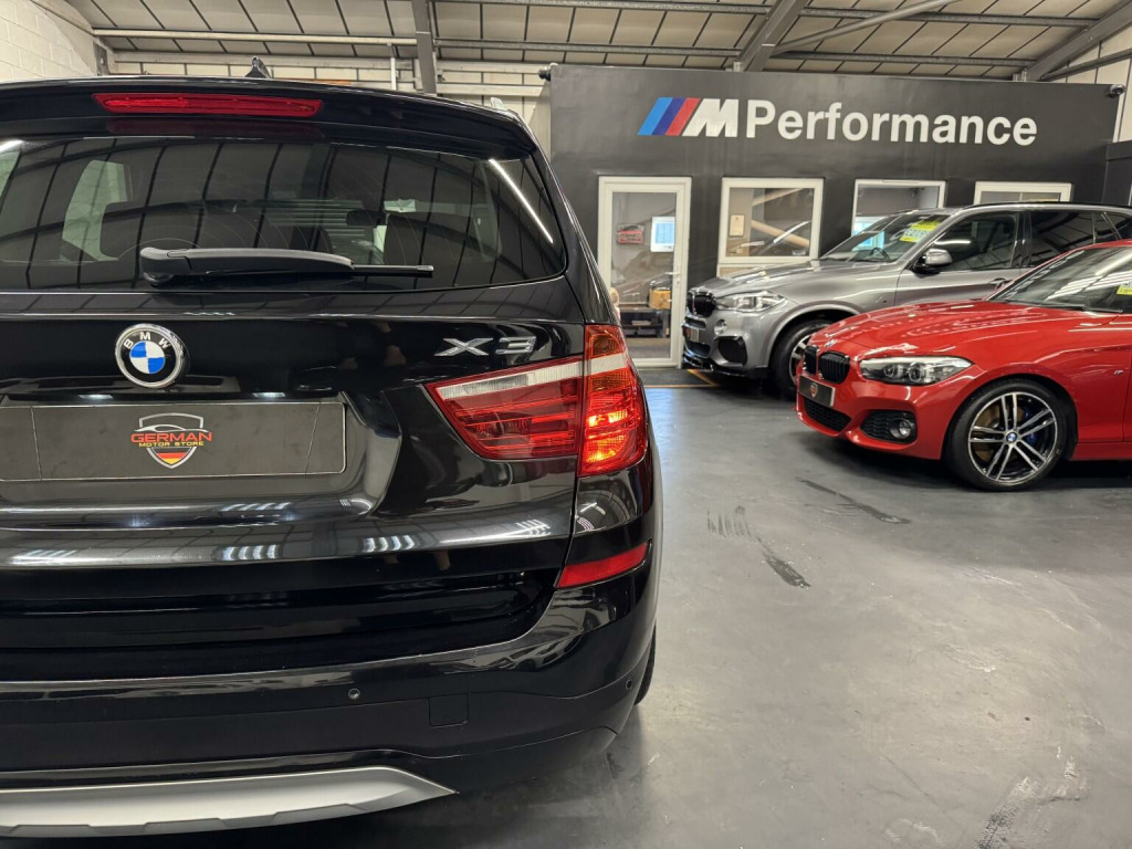 German Motor Store are proud to offer this stunning 2015 (65) BMW X3 20d X Line Auto to market. Finished in Sapphire black with black nevada lather, this one owner car is in stunning condition throughout. It arrives with a full BMW dealer service history, it will also leave us with a fresh 12 month MOT for new keeper. Being top of the range model, it hosts good specification that includes....Media navigation, front & rear parking Sensors, DAB radio, enhanced Bluetooth phone connectivity, digital climate control, cruise control, electric tailgate, heated seats, auto head light & wipers. This is probably the best one on available to buy today, so don't miss out on this incredible opportunity!Viewing By Appointment Only!!German Motor Store Limited is a family operated business specializing in quality used German Cars with over 30 years experience in the industry! All vehicles come with a 14 day money back guarantee when purchased on line. All cars also come with an in house comprehensive warranty, that can be extended to 12 month, 24 or even 36 months, please ask for quote. We offer nationwide delivery meaning you can buy with ease and with trust. Customer service is at the core of what we do, we are highly rated on both Auto trader and Google so please be sure to read our reviews.. 12V Power Socket - Centre Console, 12V Power Socket - Luggage Compartment, 18in Alloy Wheels - Y-Spoke Style 607, ABS - Anti Lock Braking System, Additional Detachable Cupholder, Air Conditioning - Automatic with Two-Zone Control, Air Inlets - Aluminium Effect, Air Microfilter, Airbags - Driver, Airbags - Driver and Front Passenger Side, Airbags - Front ITS Head, Airbags - Passenger, Airbags - Passenger Deactivation, Airbags - Rear ITS Head, Alarm System Thatcham 1 with Remote Control, Aluminium Effect Side Sill Cover, Ambient Interior Lighting, Anti Roll Bars - Front and Rear, Armrest - Front with Storage Compartment, Armrest - Rear Centre, ASC - Automatic Stability Control, Automatically Dimming Rear View Mirror, Auxiliary Input, Bluetooth - Audio Streaming - with Compatible Devices, Bluetooth Hands Free Facility, BMW ConnectedDrive Online Services, BMW Emergency Call, BMW Mobility System, BMW Navigation System, BMW Professional Radio - Single CD and MP3, BMW TeleServices, Brake Drying, Brake Fade Compensation, Brake Force Display, Brake Pre-Tensioning, CBC - Cornering Brake Control, Central Locking - Doors Boot Fuel Cap via Remote Key, Child Proof Locking System - Rear Doors, Child Seat ISOFIX Attachment - Rear, Courtesy Lights - Front and Rear with Soft On-Off Dimming, Crash Sensor - Activating Central Locking-Hazard Warning Lights-Fuel Cut Off, Cruise Control with Brake Function, DAB Digital Radio, DBC - Dynamic Brake Control, Door Handles - Body Colour, Door Mirrors - Body Coloured, Door Mirrors - Drivers Aspheric, Door Mirrors - Electric and Heated, Door Mirrors - Integrated Indicators, Door Sill Finishers with BMW xLine Designation, Drive Performance Control with ECO PRO - Comfort and Sport Modes, DSC - Dynamic Stability Control - Stabilises the Vehicle in Extreme Situations - Controls Traction, DTC - Dynamic Traction Control, EBD - Electronic Brake-Force Distribution, Electric Windows - Front and Rear with Open-Close Fingertip Control, Electro Mechanical Parking Brake, Embellisher in Front and Rear Bumper - Aluminium, Embellishers for Instrument Panel - Black High-Gloss, Engine Immobiliser, Exhaust - Single with Matt Chrome Finisher, Exterior Trim - Satin Aluminium, First Aid Kit, Floor Mats - Velour, Follow Me Home Headlight Function, Footwell Lights - Front, Front Fog Lights, Glove Compartment - Illuminated, Grab Handles with Coat Hooks, Halogen Headlights, HDC - Hill Descent Control, Head Restraints - Front and Rear, Head Restraints - Height and Angle, Head Restraints - X Embossing, Headlights - Automatic Activation, Headlights - Height Adjustment, Headrests - Active Front, Heated Windscreen Washer Jets, High Level Third Brake Light, Hill Start Assist, iDrive Controller on Centre Console, Incorrect Fuelling Protection System, Indicator Lenses - Clear, Interior Trim - Dark Copper High Gloss, Keyless Start, Kidney Grille - Chrome with Satin Aluminium Vertical Slats, Locking Wheel Bolts, Luggage Compartment - Additional Storage on Each Side and Under Floor, Luggage Compartment - Illuminated with Four Lashing Eyes in Boot Floor, Luggage Compartment - Removable Cover, Media Package - BMW Business, Multifunction Controls for Steering Wheel, Navigation System - BMW Business Advanced, OBC - On-Board Computer, PDC - Park Distance Control - Front, PDC - Park Distance Control - Front and Rear, PDC - Park Distance Control - Rear, Power Steering - Electric, Rain Sensor, Reading Lights - Front and Rear, Roof Rails - Matt Aluminium, Run Flat Tyres, Seats - 60-40 Split Folding Rear, Seats - Front Heated, Seats - Manual Adjustment for Height - Fore and Aft Position - Recline Angle, Side Impact Protection, Sill - Luggage Compartment - Stainless Steel, Speakers x6, Sport Multi-Function Leather Steering Wheel - Three Spoke, Start-Stop Button with Keyless Operation, Steering Column with Manual Reach and Rake Adjustment, Storage Compartment - Front Door Pockets, Storage Compartment - Trays in Centre Console, Sun Visors with Illuminated. Full dealership history