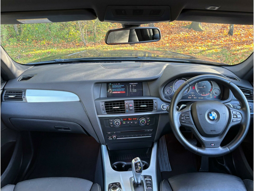 With only 2 owners and a full service history, this BMW X3 30d M Sport presents a compelling proposition. This four wheel drive model boasts a powerful 3.0 litre diesel engine, capable of accelerating from 0 to 62 miles per hour in just 6.2 seconds. It comes equipped with the M Sport trim, featuring the BMW Advanced Loudspeaker System, Park Distance Control for front and rear, and automatic headlights. Inside, you'll find automatic climate control with two zone settings, and enhanced Bluetooth telephone functionality with USB audio interface and voice control. This BMW X3 offers a towing weight of 2400 kg and has a low mileage for its age. Bodywork as well as the Full Leather Interior is in great shape with hardly a mark. It drives beautifully too. Dont miss this one!Call us now or see more pictures and vehicle information on our website https://www.thatchersmotors.co.uk. Still not sure? Please read OUR GOOGLE REVIEWS.*** All of our vehicles are fully prepared, HPI Clear and we do try to show the vehicle as well as we can so no horrible surprises or feelings of disappointment when you arrive to view. Also, as there are often more vehicle pictures - as well as additional vehicles on our own website https://www.thatchersmotors.co.uk feel free to take a look around. Bare in mind that we sell cars and vans across the entire UK, so if you're not local to us, don't worry, we can provide full HD videos upon request. Know exactly what you're getting before you set out on a long journey. Mechanical inspections are carried out and any mechanical defects are rectified. (Extended Warranties available). Every vehicle will be valeted to a high standard before handover.***ONE FINAL THING- SOME OF OUR VEHICLES MAY NOT BE PRESENT ON SITE SO, PLEASE CALL US BEFORE SETTING OFF *** Finally, we at Thatchers look forward to meeting you *** P.S. We PURCHASE cars too!! So even if you don't buy from us we may be just the place for you to sell to *** v power socket - centre console, 12v power socket - luggage compartment, 18in alloy wheels - light m star spoke - 368m, abs - anti lock braking system, asc - automatic stability control, additional detachable cupholder, air conditioning - automatic with two-zone control, airbags - driver, airbags - driver and front passenger side, airbags - first and second seat row its head, airbags - passenger, airbags - passenger deactivation, alarm system thatcham 1 with remote control, ambient interior lighting, anti roll bars - front and rear, armrest - front with storage compartment, armrest - rear centre, automatically dimming rear view mirror, auxiliary input, bmw mobility system, bmw online services, bmw professional radio - single cd and mp3, bmw teleservices, brake drying, brake fade compensation, brake force display, brake pre-tensioning, bumper - regeneration to original shape - mph specific, cbc - cornering brake control, cathodic dip paintwork preservation of hollow cavities underfloor protection, central locking - doors boot fuel cap via remote key, child proof locking system - rear doors, child seat isofix attachment - rear, courtesy lights - front and rear with soft on-off dimming, cruise control with brake function, dbc - dynamic brake control, dsc - dynamic stability control - stabilises the vehicle in extreme situations - controls traction, dtc - dynamic traction control, deformation zones - front and rear, door handles - body colour, door mirrors - drivers aspheric, door mirrors - electric and heated and aspheric, door sill finishers - m designation, drive performance control, ebd - electronic brake-force distribution, electric windows - front and rear with open-close fingertip control, electro mechanical parking brake, engine immobiliser, enhanced bluetooth telephone functionality with usb audio interface and voice control, exhaust tailpipe - finisher in chrome, exhaust tailpipe - twin, exterior trim - high-gloss shadowline, first aid kit, floor mats - velour, follow me home headlight function, footwell lights - front, front fog lights, glove compartment - illuminated, grab handles with four coat hooks, hdc - hill descent control, head restraints - front and rear, head restraints - height and angle, headlights - automatic activation, headlights - height adjustment, headlights - washer system, headlining - anthracite, heated windscreen washer jets, high level third brake light, hill start assist, incorrect fuelling protection system, interior lighting, interior trim - brushed aluminium, kidney grille - chrome with satin aluminium vertical slats, locking wheel bolts, luggage compartment - additional storage on each side and under floor, luggage compartment - illuminated with four lashing eyes in boot floor, luggage compartment - removable cover, m aerodynamic bodystyling, m sport package, multifunction controls for steering wheel, obc - on-board computer, pdc - park distance control - front and rear, pdc - park distance control - rear, performance control, rain sensor, reading lights - front and rear, roof rails - high-gloss shadowline, run flat tyres, seats - 60-40 split folding rear, seats - manual adjustment for height - fore and aft position - recline angle, servotronic steering, side impact protection, speaker system with five speakers, sport seats - front, steering column with manual reach and rake adjustment, steering wheel - leather - multifunction - gearshift paddles, storage compartment - front door pockets, storage compartment - trays in centre console, sun visors with illuminated vanity mirrors and ticket holder, suspension - sport, tpws - tyre pressure warning system, variable sport steering, idrive controller on centre console with 6.5in colour display, media package - bmw professional, navigation system - bmw professional multimedia, enhanced bluetooth telephone preparation with usb audio interface, loudspeaker system - bmw advanced, door mirrors - folding - automatically dimming, concierge service, bmw apps interface, remote services, nevada leat