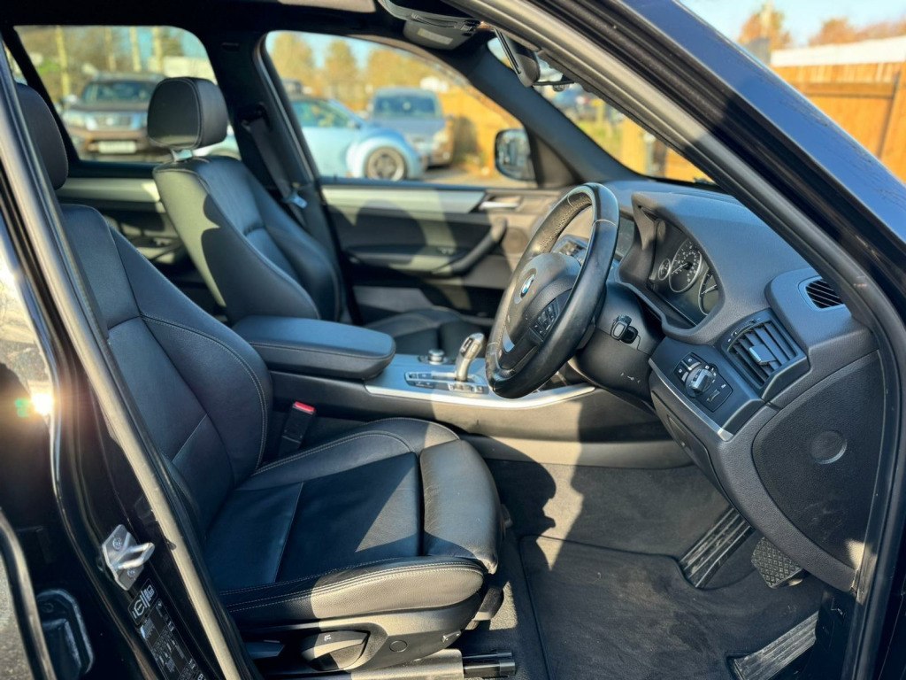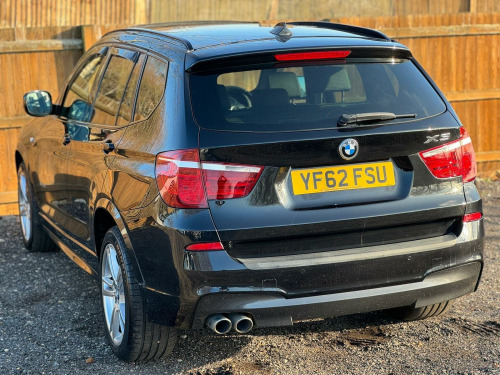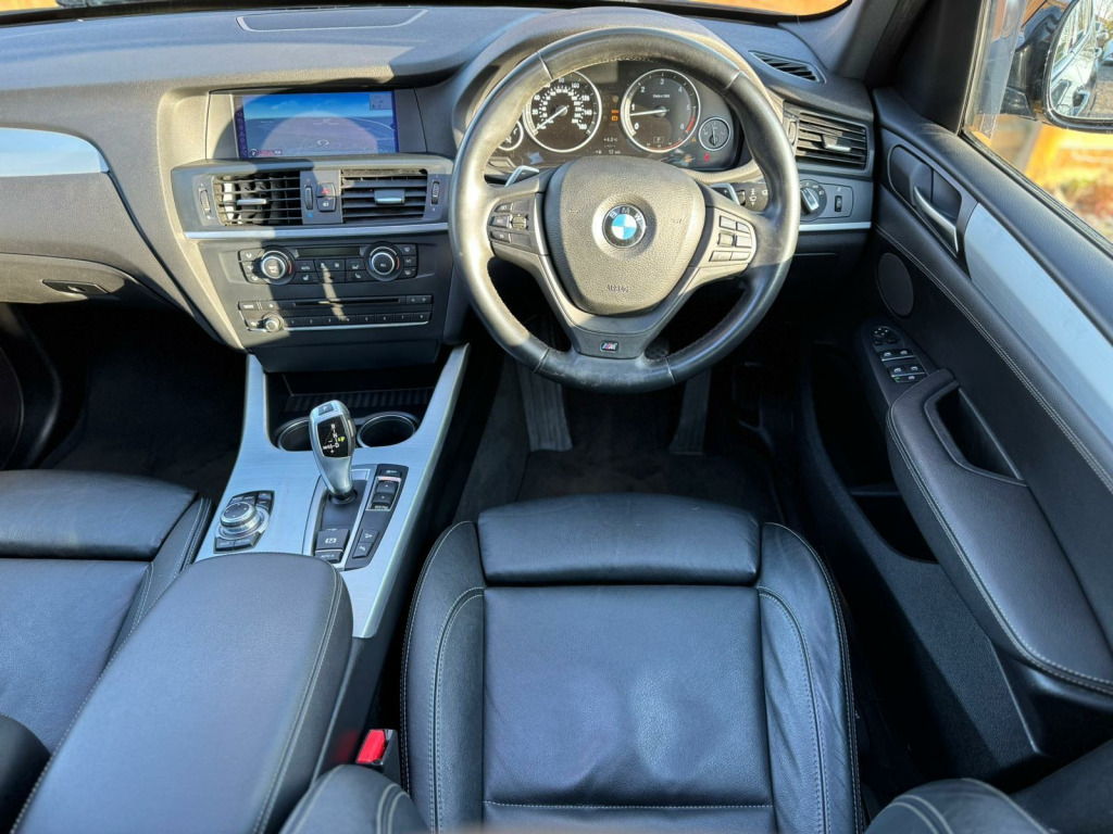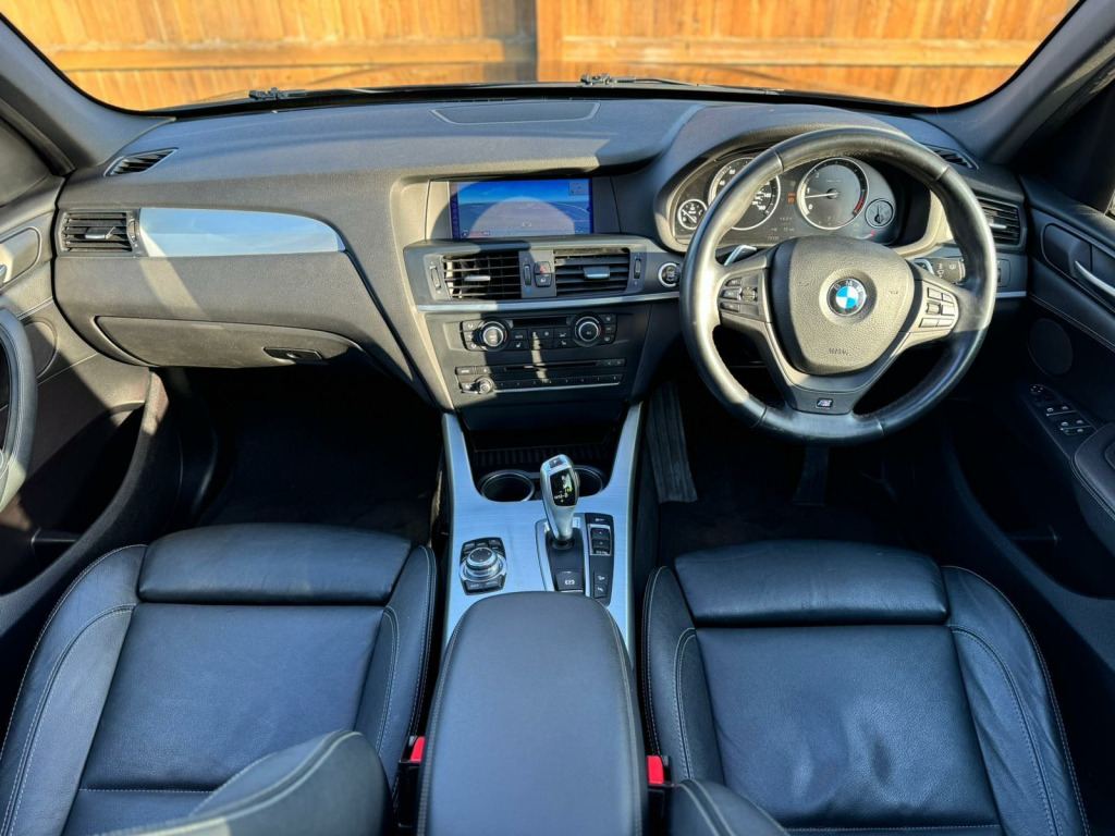 This 2013 BMW X3 30d M Sport boasts exceptionally low mileage for its age, having covered just 73,000 miles. This desirable four wheel drive model features a powerful 3.0L diesel engine and is presented in the sporty M Sport trim. It comes equipped with a powered bootlid for convenience, a Professional Multimedia package for enhanced entertainment, and stylish 19 inch M Double Spoke alloy wheels. Comfort is further assured with heated front seats and a panoramic glass sunroof, offering an open and airy cabin experience.The X3 30d M Sport offers impressive performance, accelerating from 0 to 62mph in a swift 6.2 seconds, demonstrating its capability. Its substantial towing weight of 2400 kg makes it a practical choice for those needing to tow. The generous boot space provides ample room for luggage or shopping, while its low insurance group rating indicates potentially lower running costs compared to similar vehicles. These factors combine to make this BMW X3 a compelling option for those seeking a blend of performance, practicality, and premium features. v power socket - centre console, 12v power socket - luggage compartment, 18in alloy wheels - light m star spoke - 368m, abs - anti lock braking system, asc - automatic stability control, additional detachable cupholder, air conditioning - automatic with two-zone control, airbags - driver, airbags - driver and front passenger side, airbags - first and second seat row its head, airbags - passenger, airbags - passenger deactivation, alarm system thatcham 1 with remote control, ambient interior lighting, anti roll bars - front and rear, armrest - front with storage compartment, armrest - rear centre, automatically dimming rear view mirror, auxiliary input, bmw mobility system, bmw online services, bmw professional radio - single cd and mp3, bmw teleservices, brake drying, brake fade compensation, brake force display, brake pre-tensioning, bumper - regeneration to original shape - mph specific, cbc - cornering brake control, cathodic dip paintwork preservation of hollow cavities underfloor protection, central locking - doors boot fuel cap via remote key, child proof locking system - rear doors, child seat isofix attachment - rear, courtesy lights - front and rear with soft on-off dimming, cruise control with brake function, dbc - dynamic brake control, dsc - dynamic stability control - stabilises the vehicle in extreme situations - controls traction, dtc - dynamic traction control, deformation zones - front and rear, door handles - body colour, door mirrors - drivers aspheric, door mirrors - electric and heated and aspheric, door sill finishers - m designation, drive performance control, ebd - electronic brake-force distribution, electric windows - front and rear with open-close fingertip control, electro mechanical parking brake, engine immobiliser, enhanced bluetooth telephone functionality with usb audio interface and voice control, exhaust tailpipe - finisher in chrome, exhaust tailpipe - twin, exterior trim - high-gloss shadowline, first aid kit, floor mats - velour, follow me home headlight function, footwell lights - front, front fog lights, glove compartment - illuminated, grab handles with four coat hooks, hdc - hill descent control, head restraints - front and rear, head restraints - height and angle, headlights - automatic activation, headlights - height adjustment, headlights - washer system, headlining - anthracite, heated windscreen washer jets, high level third brake light, hill start assist, incorrect fuelling protection system, interior lighting, interior trim - brushed aluminium, kidney grille - chrome with satin aluminium vertical slats, locking wheel bolts, luggage compartment - additional storage on each side and under floor, luggage compartment - illuminated with four lashing eyes in boot floor, luggage compartment - removable cover, m aerodynamic bodystyling, m sport package, multifunction controls for steering wheel, obc - on-board computer, pdc - park distance control - front and rear, pdc - park distance control - rear, performance control, rain sensor, reading lights - front and rear, roof rails - high-gloss shadowline, run flat tyres, seats - 60-40 split folding rear, seats - manual adjustment for height - fore and aft position - recline angle, servotronic steering, side impact protection, speaker system with five speakers, sport seats - front, steering column with manual reach and rake adjustment, steering wheel - leather - multifunction - gearshift paddles, storage compartment - front door pockets, storage compartment - trays in centre console, sun visors with illuminated vanity mirrors and ticket holder, suspension - sport, tpws - tyre pressure warning system, variable sport steering, idrive controller on centre console with 6.5in colour display, media package - professional multimedia, visibility package, panoramic glass sunroof, xenon headlights, 19in alloy wheels - light m double spoke - 369m, navigation system - bmw professional multimedia, bootlid operation - powered, sun protection glazing, seats - front heated, door mirrors - folding - automatically dimming, extended storage, high-beam assistant, adaptive headlights, bmw assist, nevada leather - black