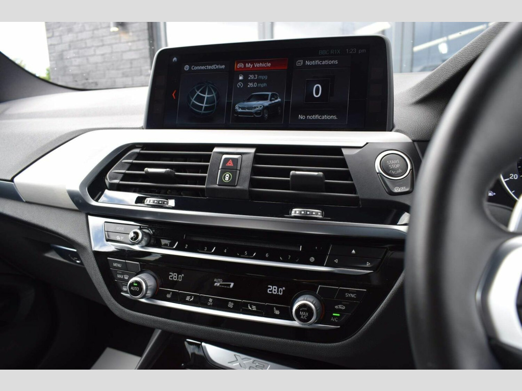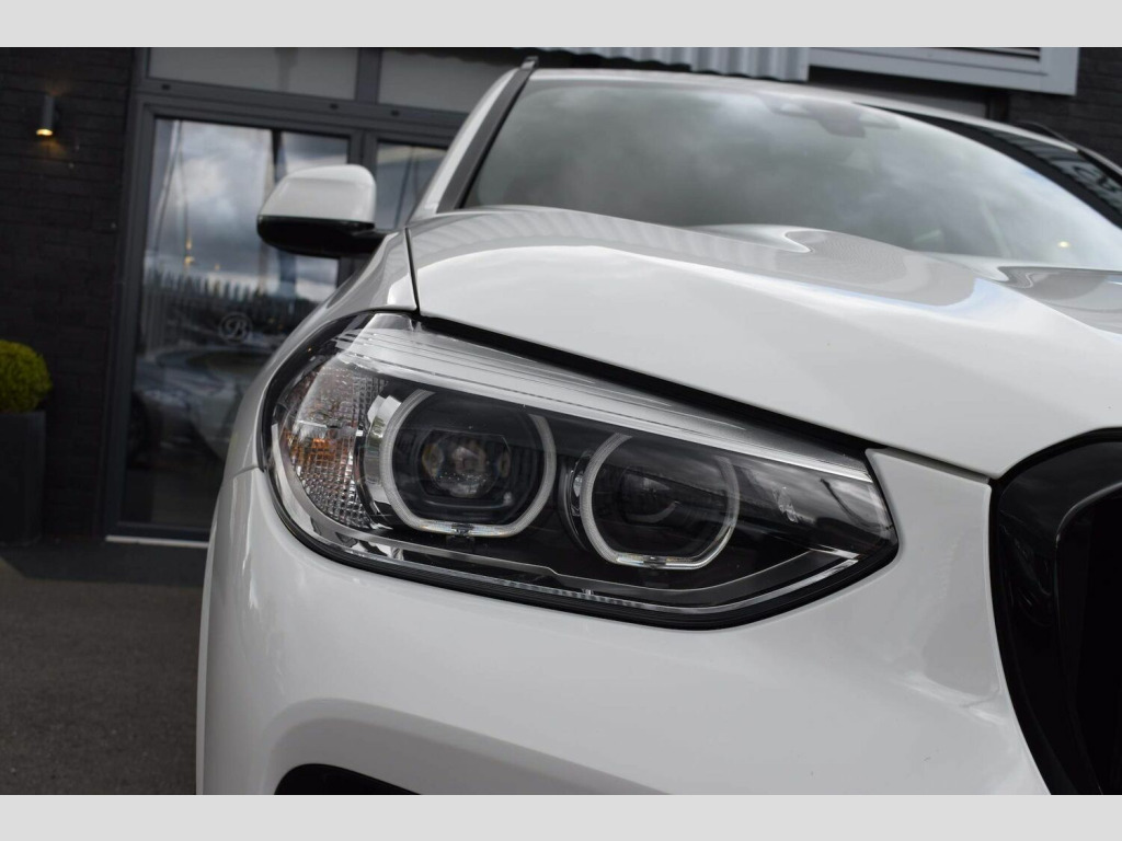 December 2017 67 BMW X3 3.0 30d M Sport Auto xDrive finished in sought after Alpine White with full black Dakota leather interior. 39200 miles covered which is backed up by BMW service history and we have completed a brake fluid change ready for the next owner. Presented in excellent showroom condition inside and out and is supplied with both keys and all correct documentation, handbooks etc. Great spec with some desirable options fitted including: Speaker System - Harman/Kardon, Comfort Access with Smart Opener, Enhanced Bluetooth Telephone Preparation with Wireless Charging, 20in Alloy Wheels - M Light Double Spoke Style 699 M, Interior Trim - Aluminium Fine Cutting with Highlight Trim Finishers in Pearl Chrome and Sun Protection Glazing. Black kidney grills are the only non factory addition to this car. Other features include: Adaptive LED Headlights with High-Beam Assistant, BMW ConnectedDrive Online Services, BMW Professional Navigation with 10.25in Touch Display, Bluetooth Hands Free with USB Audio Interface, Cruise Control with Brake and Speed Limiting Function, DAB Digital Radio, Exterior Mirrors - Electrically Folding with Anti Dazzle, LED Tail Lights, M Sport Suspension, PDC - Park Distance Control - Front and Rear, Park Assist, Rain Sensor with Automatic Headlight Activation, Reversing Assist Camera, Roof Rails - High-Gloss Shadowline, Seat Heating for Driver and Front Passenger, TPMS - Tyre Pressure Monitoring, Tailgate Operation - Automatic, Through-Loading System and more. FINANCE FROM 6.9% APR | GTECHNIQ DETAILING & CERAMIC COATINGS | XPEL PAINT PROTECTION FILM