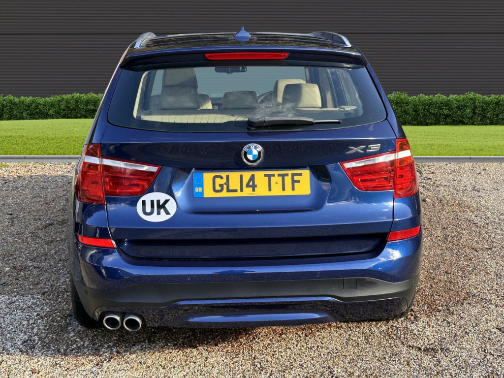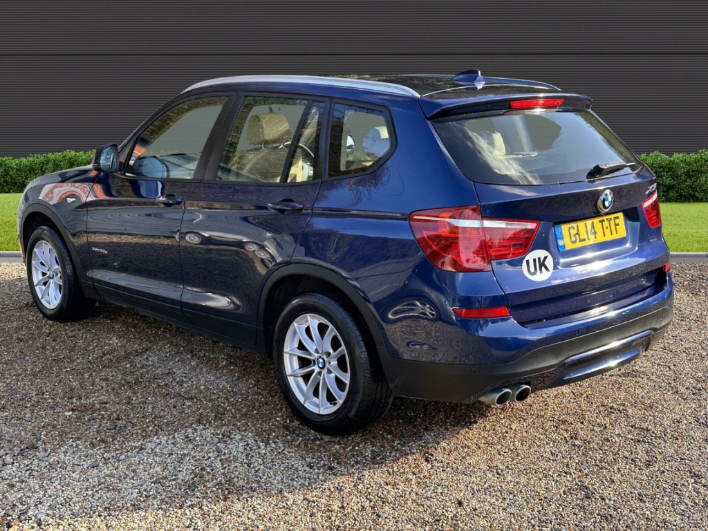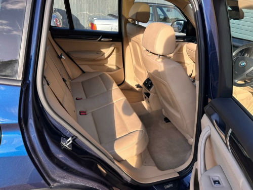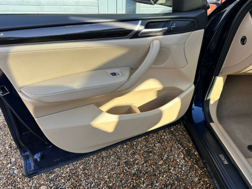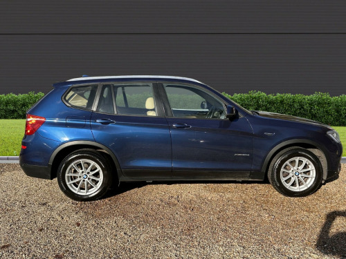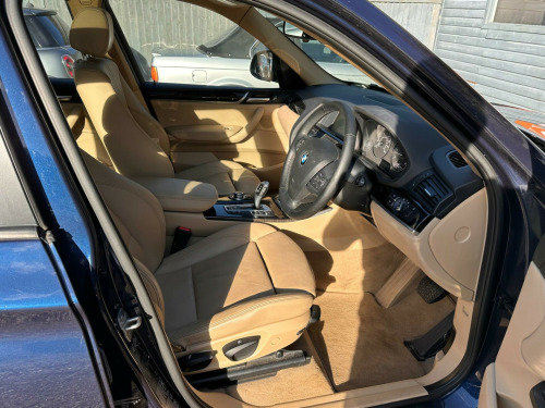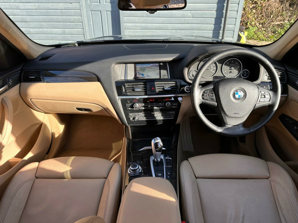 This 2014 BMW X3 30d SE is a superb example with a clear vehicle history check and only two previous owners.  It boasts a powerful 3.0L diesel engine paired with a four wheel drive drivetrain, ensuring excellent performance and capability.  The SE trim level offers a refined driving experience, complemented by desirable features such as front sport seats for comfort, enhanced Bluetooth telephone preparation with USB audio interface for seamless connectivity, and a panoramic glass sunroof that floods the cabin with light.  Further enhancing its practicality and comfort are the electric towbar, with a generous towing weight of 2400 kg, and a heated steering wheel for those colder journeys.This Euro 6 compliant X3 offers impressive acceleration, reaching 0-62mph in just 5.9 seconds, demonstrating its dynamic capabilities. Its large boot space makes it exceptionally practical for families and adventurers alike. The low insurance group rating also indicates that this vehicle is more economical to run compared to similar models. These highlights collectively show how this BMW X3 stands out from other vehicles in its class, offering a compelling blend of performance, comfort, and practicality.. 12V Power Socket - Centre Console, 12V Power Socket - Luggage Compartment, 17in Alloy Wheels - Light Y Spoke - 305, ABS - Anti Lock Braking System, ASC - Automatic Stability Control, Additional Detachable Cupholder, Air Conditioning - Automatic with Two-Zone Control, Air Microfilter, Airbags - Driver, Airbags - Driver and Front Passenger Side, Airbags - First and Second Seat Row ITS Head, Airbags - Passenger, Airbags - Passenger Deactivation, Alarm System Thatcham 1 with Remote Control, Ambient Interior Lighting, Anti Roll Bars - Front and Rear, Armrest - Front with Storage Compartment, Automatically Dimming Rear View Mirror, Auxiliary Input, BMW Emergency Call, BMW Mobility System, BMW Navigation System, BMW Online services, BMW Professional Radio - Single CD and MP3, BMW TeleServices, Bluetooth Hands Free with USB Audio Interface, Bootlid Operation - Powered, Brake Drying, Brake Fade Compensation, Brake Force Display, Brake Pre-Tensioning, CBC - Cornering Brake Control, Central Locking - Doors Boot Fuel Cap via Remote Key, Child Proof Locking System - Rear Doors, Child Seat ISOFIX Attachment - Rear, Courtesy Lights - Front and Rear with Soft On-Off Dimming, Crash Sensor - Activating Central Locking-Hazard Warning Lights-Fuel Cut Off, Cruise Control with Brake Function, DAB Digital Radio, DBC - Dynamic Brake Control, DSC - Dynamic Stability Control - Stabilises the Vehicle in Extreme Situations - Controls Traction, DTC - Dynamic Traction Control, Deformation Zones - Front and Rear, Door Handles - Body Colour, Door Mirrors - Drivers Aspheric, Door Mirrors - Electric and Heated and Aspheric, Drive Performance Control, EBD - Electronic Brake-Force Distribution, Electric Windows - Front and Rear with Open-Close Fingertip Control, Electro Mechanical Parking Brake, Embellishers for Instrument Panel - Black High-Gloss, Engine Immobiliser, Enhanced Bluetooth Telephone Functionality with USB Audio Interface and Voice Control, Exhaust Tailpipe - Twin, Exhaust Tailpipes - Twin Chrome, Exterior Trim - Black, First Aid Kit, Floor Mats - Velour, Follow Me Home Headlight Function, Footwell Lights - Front, Front Fog Lights, Glove Compartment - Illuminated, Grab Handles with Four Coat Hooks, HDC - Hill Descent Control, Head Restraints - Front and Rear, Head Restraints - Height and Angle, Headlights - Automatic Activation, Headlights - Height Adjustment, Heated Windscreen Washer Jets, High Level Third Brake Light, Hill Start Assist, Incorrect Fuelling Protection System, Interior Colour - Black, Interior Lighting, Interior Trim - Satin Silver, Kidney Grille - Chrome with Satin Aluminium Vertical Slats, Locking Wheel Bolts, Luggage Compartment - Additional Storage on Each Side and Under Floor, Luggage Compartment - Illuminated with Four Lashing Eyes in Boot Floor, Luggage Compartment - Removable Cover, M Aerodynamic Bodystyling, Media Package - BMW Business, Multifunction Controls for Steering Wheel, Navigation System - BMW Business Advanced, OBC - On-Board Computer, PDC - Park Distance Control - Front and Rear, PDC - Park Distance Control - Rear, Power Steering - Electric, Rain Sensor, Reading Lights - Front and Rear, Roof Rails - Matt Aluminium, Seats - 60-40 Split Folding Rear, Seats - Front Heated, Seats - Manual Adjustment for Height - Fore and Aft Position - Recline Angle, Side Impact Protection, Speaker System with Five Speakers, Steering Column with Manual Reach and Rake Adjustment, Steering Wheel - 3-Spoke Leather, Steering Wheel - Leather Multifunction, Storage Compartment - Front Door Pockets, Storage Compartment - Trays in Centre Console, Sun Visors with Illuminated Vanity Mirrors and Ticket Holder, TMC - Traffic Information, TPMS - Tyre Pressure Monitoring System, TPWS - Tyre Pressure Warning System, iDrive Controller on Centre Console with 6.5in Colour Display, Panoramic Glass Sunroof, Visibility Package, Towbar - Electric, Xenon Headlights, Sport Seats - Front, Enhanced Bluetooth Telephone Preparation with USB Audio Interface, Int.