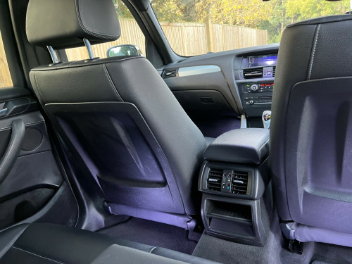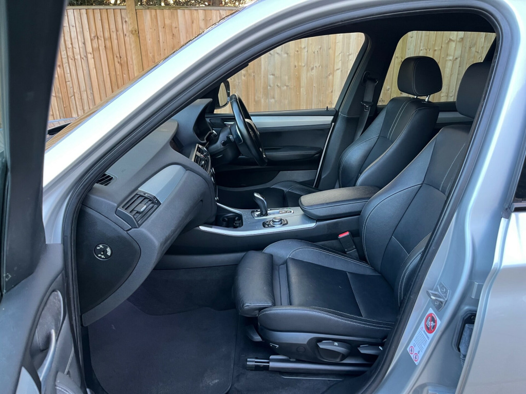 Just arrived..very low mileage 35d X3 finished in Titanium silver with black Nevada leather interior. An amazing vehicle to drive but also practical.The specification includes reversing assist camera, heated seats, sun protection glass, xenon headlights, heads up display, professional media package, visibility package, access package, adaptive headlights, rear wash wipe delete, enhanced Bluetooth function, the list goes on. It has been very well maintained by its 2 owners and drives without fault. It has just been serviced including gearbox and differential services and has a new advisory free mot. We have the original two keys, hand book pack , service book and V5C. Call us on 01732 835520 to book a test drive or read on to find out more about out us..The Brookside Group is a long established family business with a great reputation and we operate in a relaxed and friendly manner with no pressure whatsoever. For complete peace of mind all our vehicles have a new MOT, a full HPI report and a comprehensive warranty. We have no hidden fees. We are nice people who have been here a long time and we look after our customers ..Please read our five star reviews. This vehicle will be supplied with a six months parts and labour warranty which can be extended to one or two years at extra cost. Competitive finance is available subject to status. We are authorised and regulated by the FCA. FCA number 665382. Part exchange is welcome. To arrange a viewing on this vehicle please call us on 01732 835520 or use the email booking facility. v power socket - centre console, 12v power socket - luggage compartment, auxiliary input, bmw online services, bmw professional radio - single cd and mp3, bmw teleservices, bluetooth hands free with usb audio interface, dab digital radio, enhanced bluetooth telephone functionality with usb audio interface and voice control, speaker system with five speakers, 18in alloy wheels - light m star spoke - 368m, bmw mobility system, bumper - regeneration to original shape - mph specific, cathodic dip paintwork preservation of hollow cavities underfloor protection, door handles - body colour, door mirrors - drivers aspheric, door mirrors - electric and heated and aspheric, electric windows - front and rear with open-close fingertip control, exhaust tailpipe - finisher in chrome, exhaust tailpipes - twin chrome, exterior trim - high-gloss shadowline, heated windscreen washer jets, kidney grille - chrome with satin aluminium vertical slats, locking wheel bolts, m aerodynamic bodystyling, m sport package, roof rails - high-gloss shadowline, run flat tyres, abs - anti lock braking system, asc - automatic stability control, airbags - driver, airbags - driver and front passenger side, airbags - first and second seat row its head, airbags - passenger, airbags - passenger deactivation, alarm system thatcham 1 with remote control, anti roll bars - front and rear, cbc - cornering brake control, central locking - doors boot fuel cap via remote key, child proof locking system - rear doors, child seat isofix attachment - rear, dbc - dynamic brake control, dsc - dynamic stability control - stabilises the vehicle in extreme situations - controls traction, dtc - dynamic traction control, deformation zones - front and rear, ebd - electronic brake-force distribution, electro mechanical parking brake, engine immobiliser, first aid kit, hdc - hill descent control, hill start assist, incorrect fuelling protection system, side impact protection, additional detachable cupholder, air conditioning - automatic with two-zone control, ambient interior lighting, armrest - front with storage compartment, armrest - rear centre, automatically dimming rear view mirror, courtesy lights - front and rear with soft on-off dimming, door sill finishers - m designation, floor mats - velour, footwell lights - front, glove compartment - illuminated, grab handles with four coat hooks, head restraints - front and rear, head restraints - height and angle, headlining - anthracite, interior lighting, interior trim - brushed aluminium, luggage compartment - additional storage on each side and under floor, luggage compartment - illuminated with four lashing eyes in boot floor, luggage compartment - removable cover, multifunction controls for steering wheel, rain sensor, reading lights - front and rear, seats - 60-40 split folding rear, seats - manual adjustment for height - fore and aft position - recline angle, sport seats - front, steering column with manual reach and rake adjustment, steering wheel - leather - multifunction - gearshift paddles, storage compartment - front door pockets, storage compartment - trays in centre console, sun visors with illuminated vanity mirrors and ticket holder, brake force display, cruise control with brake function, drive performance control, obc - on-board computer, pdc - park distance control - front and rear, pdc - park distance control - rear, performance control, servotronic steering, sport automatic transmission, suspension - sport, tpws - tyre pressure warning system, variable sport steering, idrive controller on centre console with 6.5in colour display, follow me home headlight function, front fog lights, headlights - automatic activation, headlights - height adjustment, headlights - washer system, high level third brake light