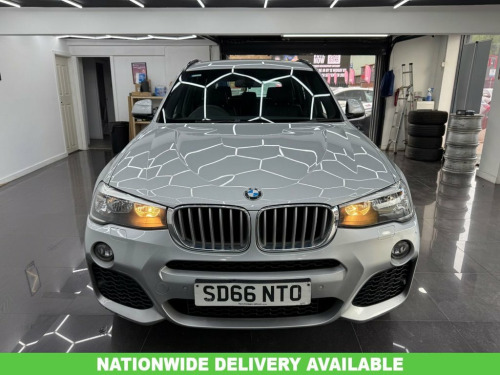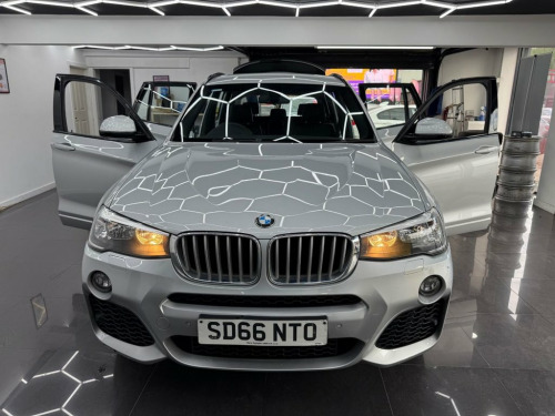 This 2017 BMW X3 35d M Sport boasts a full dealership service history and has had only one owner from new, ensuring excellent provenance.  This four wheel drive model features a powerful 3.0L diesel engine, meeting Euro 6 emissions standards, and is presented in the desirable M Sport trim.  For your convenience and comfort, it includes front and rear Park Distance Control with parking assistance, heated seats for the driver and front passenger, automatic dual zone climate control, and a rain sensor that activates the headlights automatically.  Stay connected on the go with the Bluetooth hands free system and USB audio interface.  The X3 35d M Sport offers an impressive 0-60mph acceleration time of just 5.3 seconds, demonstrating its dynamic performance. Its low insurance group rating also indicates it is more economical to run than many comparable vehicles. The MOT is valid until March 2026, and a clear vehicle history check provides further peace of mind. A 6 month warranty is also included, offering added confidence in your purchase. 12V Power Socket - Front, 19in Alloy Wheels - Light M Double-Spoke, Air Conditioning - Automatic - Dual Zone, Airbags - Driver - Front Passenger - Fro, Alarm System - Thatcham 1 with Remote Co, Ambient Lighting, Anti Roll Bars - Front and Rear, Armrest - Front with Storage Compartment, Armrest - Rear Centre, Automatically Dimming Rear View Mirror, Auxiliary Input Point for Auxiliary Play, BMW ConnectedDrive Online Services, BMW Emergency Call, BMW Mobility System, BMW Navigation System, BMW Professional Radio with Single CD Pl, BMW TeleServices, Bluetooth Hands Free with USB Audio Inte, Brake Force Display, Central Locking - Doors Boot Fuel Cap vi, Child Locking System - Rear Doors, Child Se