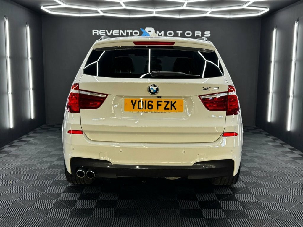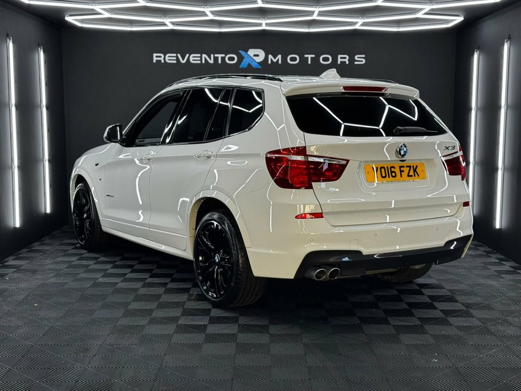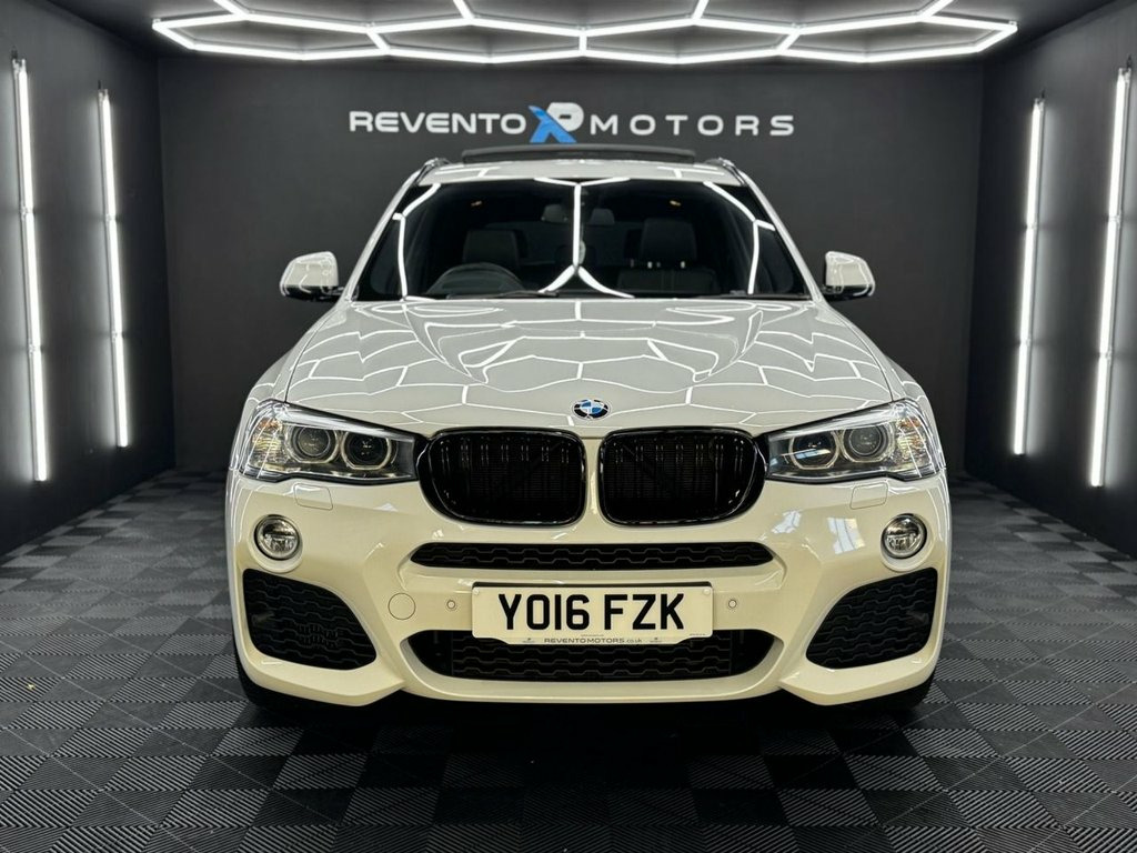 Revento Motors are proud to present this 2016 BMW X3 35D M Sport Automatic, a superb example with one former keepers and a full service history. Finished in Alpine White with Black Leather interior and 20" Powdercoated alloy wheels, and a huge factory options list. What makes this X3 special: • Alpine White Paintwork • Powdercoated 20" Alloy wheels • 3.0 Diesel (Amazing MPG & Great Performance) • Heated Black Leather interior • Harmon Kardon Speakers • Heads Up Display Tech & Comfort: • DAB radio & Bluetooth connectivity • Pro Sat Nav • Panoramic Roof Ready to drive away with our premium handover service, including: • Nationwide delivery • Professional detail valet before collection • HPI clear guarantee • Flexible finance from 9.9% APR • Part exchange welcome • Comes with service history • Minimum 6 Months MOT & Oil Service if due. Want to see more? View our detailed HD video tour on our website, or better yet, book a personal viewing. As an appointment-only dealership, we'll ensure the car is perfectly prepared and waiting for you. Please note: Some vehicles are stored at our secure facility. Give us a quick call on 01752 371465 or WhatsApp 07399 578322 before visiting, and we'll have this car ready for your arrival. Quality comes as standard at Revento Motors - your premium German car specialist in the Southwest. Hand-picked by Revento Motors for its c 12V Power Socket - Front, 19in Alloy Wheels - Light M Double-Spoke, Air Conditioning - Automatic - Dual Zone, Airbags - Driver - Front Passenger - Fro, Alarm System - Thatcham 1 with Remote Co, Ambient Lighting, Anti Roll Bars - Front and Rear, Armrest - Front with Storage Compartment, Armrest - Rear Centre, Automatically Dimming Rear View Mirror, Auxiliary Input Point for Auxiliary Play, BMW ConnectedDrive Online Services, BMW Emergency Call, BMW Mobility System, BMW Navigation System, BMW Professional Radio with Single CD Pl, BMW TeleServices, Bluetooth Hands Free with USB Audio Inte, Brake Force Display, Central Locking - Doors Boot Fuel Cap vi, Child Locking System - Rear Doors, Child Se