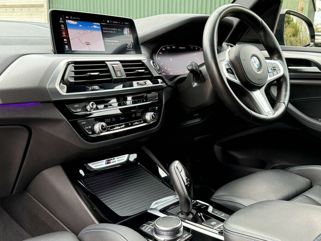 An exceptional BMW X3M presented in superb condition and specified with an outstanding set of high-value factory options. This example features the sought-after M Sport Plus Package (VIN verified), powerful M Sport Brakes, M Sport Differential and M Sport Suspension, delivering the full M-Performance driving experience. Equipped with premium BMW Icon Adaptive LED Headlights, 20 M Light Alloy Wheels – 699M Bicolour, and Acoustic Glazing for enhanced refinement and road presence. The interior stands out with Vernasca Leather in Black with Blue Contrast Stitching (VIN spec), Heated Front Seats, and the full BMW Live Cockpit Professional digital display with a 10.25 touchscreen BMW Professional Navigation system. Highly desirable technology upgrades include Parking Assistant Plus Apple CarPlay, Android Auto, Bluetooth, DAB and connected services. Additional premium features include the Harman Kardon / BMW Advanced Audio System, Sun Protection Glass, Adaptive High-Beam Assistant, Reversing Assist Camera, electric seats with driver memory, and much more. A TRULY IMPRESSIVE X3M — POWERFUL, SHARP, REFINED, WITH A TOP-TIER SPECIFICATION RARELY FOUND ON THE MARKET. HPI CLEAR, TWO KEYS, FULL YEAR MOT ON SALE, FINANCE AVAILABLE, NATIONWIDE DELIVERY OFFERED.