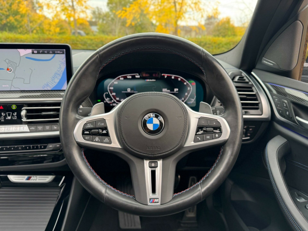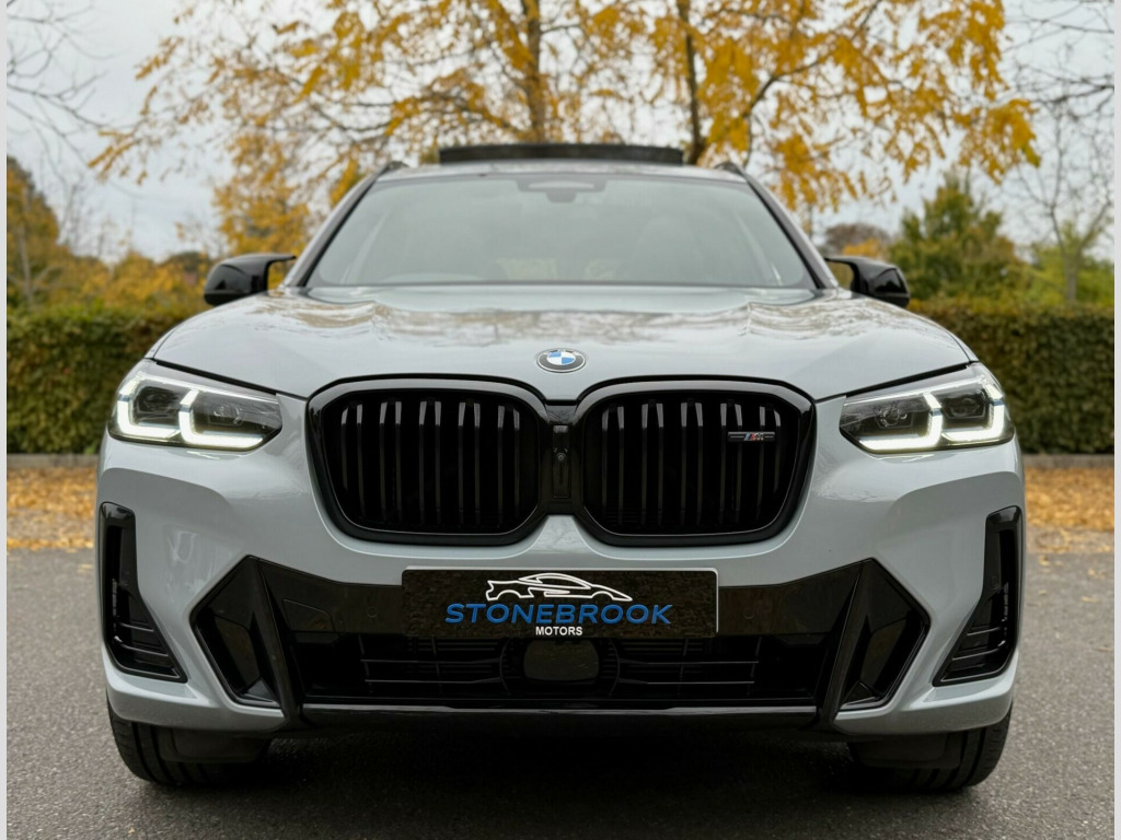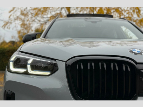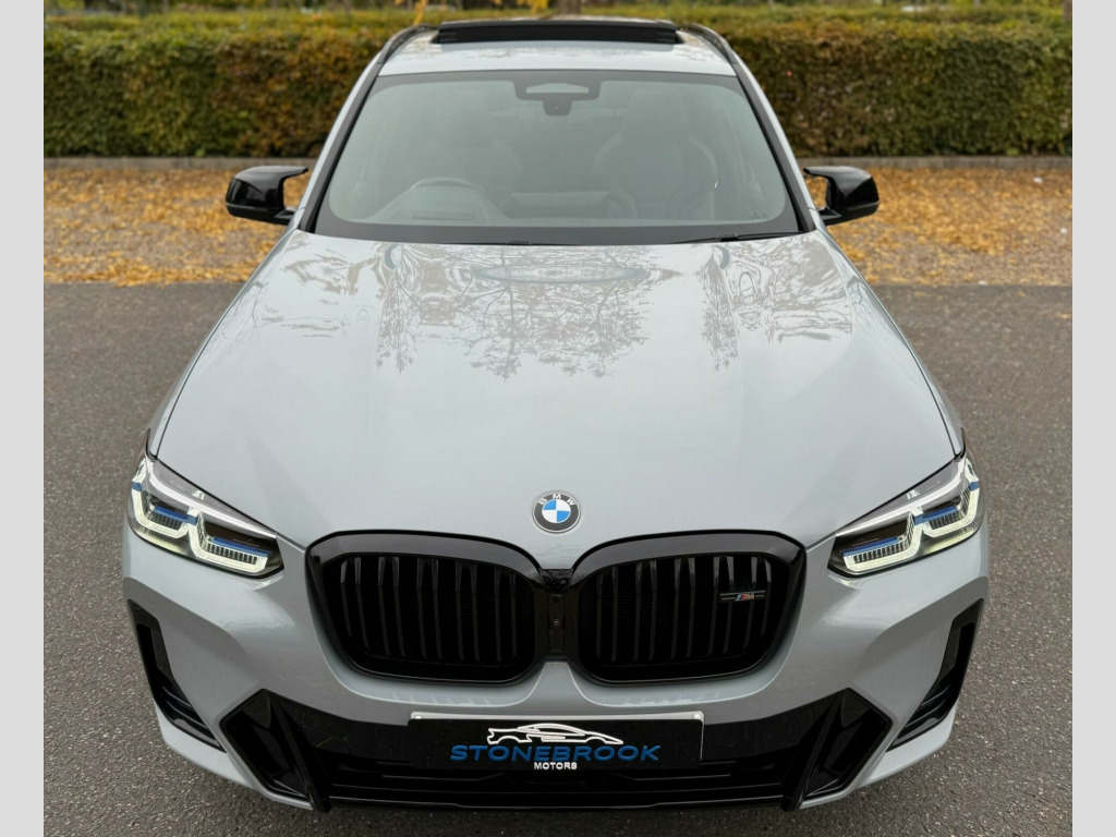 SOLD NOW - SIMILAR COMIMG INBMW X3 3.0 M40i MHT Auto xDrive - 2022 (22)22,000 miles Petrol Automatic £47,189Presented in Brooklyn Grey with Black leather interior, this high-spec BMW X3 M40i stands out with its premium factory options, aggressive styling, and outstanding condition. Backed by a full BMW service history, it also comes fitted with four brand-new BMW-approved tyres, ensuring the vehicle looks and drives at its absolute best.Key Features:•Panoramic Glass Sunroof•360 Surround View Camera •Driving Assistant Professional (Car Steers, Accelerates and Slows down by itself) •BMW M Sport Seats•Head-Up Display (Technology Package)•Harman Kardon Surround Sound System•Heated Front Seats•Wireless Apple CarPlay•Carbon Inlays • Ambient Lighting•Gesture Control•Heated Steering Wheel•Comfort Access •Auto Hold Assist•Electric Front Memory Seats with Lumbar Support•21 in M Light Double Spoke Alloys •Sun Protection Glazing•M Sport Plus Pack•Premium Package•Comfort PackAdditional Details:•ULEZ compliant•Just freshly serviced by BMW•1 Owner •12 months MOT•6 months warranty included (extendable up to 2 years)•Competitive finance options available•Part exchange welcome•Nationwide delivery availableThis is a highly spec'd X3 M40i offering serious presence, performance, and premium features. Don't miss out, contact us today to arrange a viewing or reserve. rman kardon surround audio sound system, parking assistant plus, m sport brakes with red calipers, panoramic glass sunroof, bmw individual lights shadow line - deletion, comfort pack, extended storage, front m sport seats, interior trim - carbon fibre, steering wheel - heated, technology plus pack, vernasca leather - black with blue contrast stitching, front lumbar support, additional storage compartment, driving assistant professional, visibility pack - laserlights, 12v power socket in front centre console, 21in alloy wheels - 718 m double-spoke bi-colour with run-flat tyres, abs - anti lock braking system, acoustic glass, active guard, active protection, air conditioning - automatic with three-zone, airbags - driver and front passenger side, airbags - driver and passenger, alarm system - thatcham 1 with remote control and engine immobiliser, ambient lighting, armrest - front - fixed with storage compartment, armrest - rear centre with two cupholders, attentiveness assistant, automatic powered electric bootlid, automatic windscreen wiper and headlights, automatically dimming rear view mirror, bmw connected package professional, bmw connecteddrive online services, bmw emergency call, bmw individual high-gloss shadowline with extended contents, bmw individual lights - shadowline, bmw live cockpit professional, bmw professional radio with stereo speaker system, bmw teleservices, battery safety cut off, bottle holders integrated into door trim storage compartments - front - up to 1 litre - rear - up to 750ml, brake energy regeneration, brake pad wear indicator - front and rear, bumper system - front and rear, bumpers - body colour, central locking switch for all doors - fuel filler cap - luggage compartment, check control warning system for monitoring of lights and door-luggage compartment open warning, child seat isofix attachment - rear, childproof locking system - rear doors, condition based service, control display - 12.3in colour display, crash sensor, cruise control, cup holders - front - two with removable oddments tray-lid, dab tuner, dsc - dynamic stability control plus, deletion lumbar support-width adjustment passenger side, direction indicator - side repeaters - integrated in exterior mirrors, door handles - body colour, drive performance control with eco pro - comfort and sport modes, driving assistant, dynamic brake lights, eps - electric power steering, electric memory seats, electric windows - front and rear with open-close fingertip control - anti-trap facility and comfort closing function, electro mechanical parking brake, exhaust tailpipes - dual - round - split left and right - with chrome finishers, exterior b pillar - black, exterior trim - high gloss shadowline, first aid kit and warning triangle, folding side mirrors with auto-dimming, front and rear parking sensors, gear knob - leather, grab handles - integrated in roof linings - four, headlights - adaptive led, headlining - m anthracite, heat protection glazing with green tint, hifi loudspeaker audio system, high level third brake light using led technology, high-beam assistant, its head airbags - front and rear, incorrect fuelling protection system, instrument cluster, interior lighting - front centre over interior mirror with soft-light - rear centre and front and rear footwell, interior trim - aluminium rhombicile dark with highlight trim finishers pearl chrome, kidney grille - frame and struts in high-gloss black, led taillights, lights-on warning by audio warning signal when ignition is switched off, luggage compartment - light, luggage compartment storage, m adaptive suspension, m aerodynamic bodystyling, m seat belts, m sport brakes with blue calipers, m sport differential, m sport leather steering wheel, mirror caps - black, model designation, obc - on-board computer, oil sensor for level and grade - warning by check control system, optimum shift indicator, parking assistant, performance control, personal profile, rear seat headrests - three, rear seats - slope adjustable, rear suspension - five-link, remote control including integrated key - 2, reversing assist camera, roof mouldings - body colour, roof rails - high-gloss shadowline, run-flat tyres, seat backrest width adjustment, seat belt security check for driver and front passenger, seats - front heated, sensatec dashboard, shark fin - antenna, side armrests - front and rear integrated into door trim, side impact protection, side sills - glacier silver metallic - matt, split folding rear seat, sport automatic transmission, sport seats - front, start-stop b