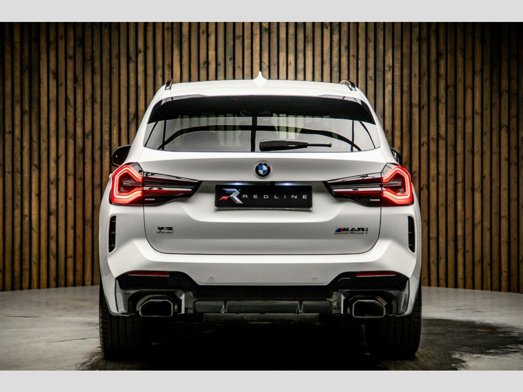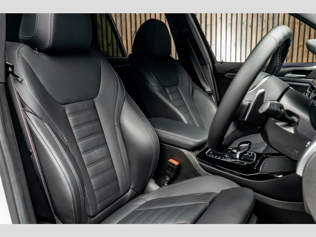 This 2024 BMW X3 M40i is a superb example, having had only one owner since new. This impressive vehicle boasts a powerful 3.0L Petrol Hybrid engine, paired with a responsive Four Wheel Drive system, ensuring excellent performance and control in all conditions. As a Euro 6 compliant model, it meets modern emissions standards. Inside, you'll find sophisticated Carbon Fibre interior trim, a luxurious Panoramic Glass Sunroof that opens for an airy feel, and a premium Harman Kardon Surround Audio Sound System for an immersive listening experience. The Technology Package, including a Head Up Display, enhances convenience and safety, while the Electric Memory Seats allow for personalised driving comfort.The BMW X3 M40i offers a compelling driving experience, highlighted by its rapid acceleration from 0-62mph in just 4.9 seconds, demonstrating its sporty capabilities. This performance, combined with its Euro 6 rating, indicates a more advanced and efficient powertrain compared to many similar vehicles. Furthermore, the X3 provides ample practicality with its large boot space, making it ideal for families and adventurers alike. Its position in a low insurance group also suggests that running costs may be more manageable than one might expect for a vehicle of this calibre, offering a well rounded package of performance, luxury, and economy.. 21in Alloy Wheels - 718 M Double-Spoke Bi-Colour with Run-Flat Tyres, 2x USB Type C in Front Centre Console, 2x USB Type C in Rear Centre Console, Acoustic Glass, Active Guard, Active Guard Plus, Active Protection, Air Conditioning - Automatic with Three-Zone, Airbags - Driver and Front Passenger Side, Airbags - Driver and Passenger, Airbags - Head - Front and Rear, Airbags - Knee for Driver and Front Passenger, Alarm System, Ambient Lighting, Armrest - Centre Console with Storage Compartment, Armrest - Rear Centre with Two Cupholders, Attentiveness Assistant, Automatic Hold Function, Automatic Powered Electric Bootlid, Automatic Start-Stop Button, Automatic Windscreen Wiper and Headlights, BMW Connected Package Professional, BMW ConnectedDrive Online Services, BMW Emergency Call, BMW Individual High-Gloss Shadowline with Extended Contents, BMW Individual Lights - Shadowline, BMW Live Cockpit Professional, BMW TeleServices, BMW iDrive, Brake Energy Regeneration, Brake Pad Wear Indicator, Bumper System, Centre Lock Switch, Closing System with Central Locking, Compartment in Front of Cupholder, Condition Based Service, Crash Sensor, Cruise Control, Cup Holders - Front x2, DAB Tuner, DSC - Dynamic Stability Control Plus, Door Handles - Body Colour, Door Pockets - Front and Rear, Door Sill Strips, Double-Jointed Spring-Strut Front Axle, Driving Assistant, Driving Experience Switch, Dynamic Brake Lights, EPS - Electric Power Steering, Electric Memory Seats, Electric Windows, Electro Mechanical Parking Brake, Electronic Vehicle Immobiliser, Exhaust Tailpipes - Free-Form Chrome Finishers - Left and Right, Exterior Mirrors - Integrated Direction Indicators, Exterior Trim - High Gloss Shadowline, Floor Mats - Velour, Folding Side Mirrors with Auto-Dimming, Follow Me Home Headlight Function, Front and Rear Parking Sensors, Glove Compartment - Lockable, Headlight Beam-Throw Control, Headlights - Adaptive LED, Headlining - M Anthracite, Heat Protection - Sun Protection Glazing, HiFi Loudspeaker Audio System, High Level Third Brake Light Using LED Technology, High-Beam Assistant, Interior Lighting, Interior Trim - Aluminium Rhombicle with Pearl Chrome, Interior and Exterior Mirror Package, Language Version English, Lashing Eyelets in Luggage Compartment, Luggage Compartment - Light, M Adaptive Suspension, M Seat Belts, M Sport Brakes with Blue Calipers, M Sport Differential, M Sport Leather Steering Wheel, Microfilter and Active Carbon Filter, Mirror Caps - Body Colour, Multiple-Control-Arm Rear Axle, Non Smoker Package, Parking Assistant, Performance Control, Power Socket 12v, Rear-View Mirror with Auto-Dimming, Reversing Camera, Reversing Light, Roof Rails - High-Gloss Shadowline, Run-Flat Tyres, Safety Battery Terminal Clamp, Seat Backrest Width Adjustment - Driver, Seats - Front Heated, Sensatec Dashboard, Servotronic, Side Armrests - Front and Rear Integrated into Door Trim, Side Impact Protection, Smartphone Integration, Speed Limiter, Split Folding Rear Seat, Sport Seats - Front, Steering Column with Manual Reach and Rake Adjustment, Steering Wheel Mounted Gearshift Paddles, Storage Tray and Compartment with Lid in Centre Console, Sun Protection Glass, Sun Visors with Illuminated Vanity Mirrors and Ticket Holder, Through-Loading System, Tyre Pressure Sensors, Variable Sport Steering, Warning Triangle, Welcome Light, Widescreen Display, Windscreen Washer Jets - Heated, X3 on Tailgate, Technology Package, Panoramic Glass Sunroof, Harman Kardon Surround Audio Sound System, Interior Trim - Carbon Fibre, Enhanced Bluetooth with Wireless Charging, Vernasca Leather - Black with Grey Stitching. Full service history