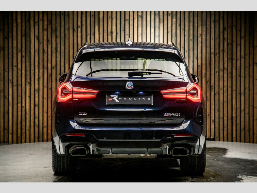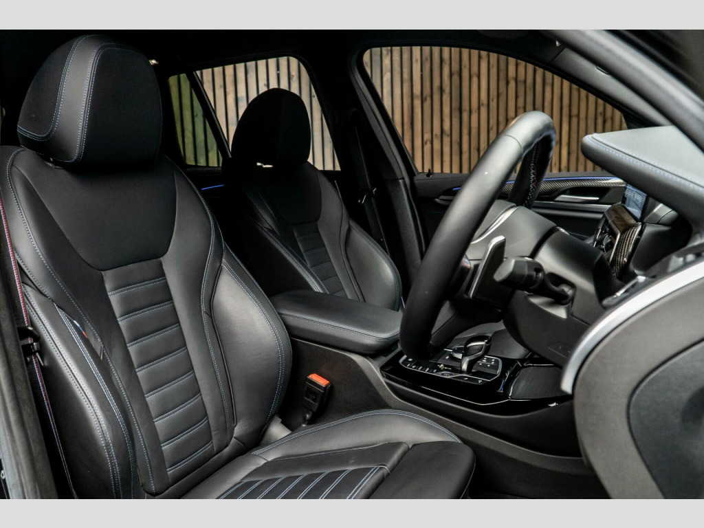 This 2022 BMW X3 M40i presents a compelling blend of performance and practicality, boasting a powerful 3.0L Petrol Hybrid engine and a sophisticated Four Wheel Drive system. As a Euro 6 compliant vehicle, it meets stringent emission standards. Inside, you'll find premium Carbon Fibre interior trim, a Comfort Pack that includes Keyless Entry and a Heated Steering Wheel, and an opening Panoramic Glass Sunroof for an airy cabin feel. This X3 also comes equipped with a Towbar, making it versatile for various needs, and is distinguished by special BMW M 50 Year Badges.The X3 M40i offers an exhilarating driving experience, achieving 0-62mph in a swift 4.9 seconds, demonstrating its superior acceleration compared to many vehicles in its class. Its impressive acceleration is matched by a generous boot space, providing ample room for luggage or shopping, further enhancing its appeal. Additionally, this model benefits from a low insurance group, indicating that running costs could be more economical than for similar vehicles.. 12V Power Socket in Front Centre Console, 21in Alloy Wheels - 718 M Double-Spoke Bi-Colour with Run-Flat Tyres, ABS - Anti Lock Braking System, Acoustic Glass, Active Guard, Active Protection, Air Conditioning - Automatic with Three-Zone, Airbags - Driver and Front Passenger Side, Airbags - Driver and Passenger, Alarm System - Thatcham 1 with Remote Control and Engine Immobiliser, Ambient Lighting, Armrest - Front - Fixed with Storage Compartment, Armrest - Rear Centre with Two Cupholders, Attentiveness Assistant, Automatic Powered Electric Bootlid, Automatic Windscreen Wiper and Headlights, Automatically Dimming Rear View Mirror, BMW Connected Package Professional, BMW ConnectedDrive Online Services, BMW Emergency Call, BMW Individual High-Gloss Shadowline with Extended Contents, BMW Individual Lights - Shadowline, BMW Live Cockpit Professional, BMW Professional Radio with Stereo Speaker System, BMW TeleServices, Battery Safety Cut Off, Bottle Holders Integrated into Door Trim Storage Compartments - Front - up to 1 litre - Rear - Up to 750ml, Brake Energy Regeneration, Brake Pad Wear Indicator - Front and Rear, Bumper System - Front and Rear, Bumpers - Body Colour, Central Locking Switch for All Doors - Fuel Filler Cap - Luggage Compartment, Check Control Warning System for Monitoring of Lights and Door-Luggage Compartment Open Warning, Child Seat ISOFIX Attachment - Rear, Childproof Locking System - Rear Doors, Condition Based Service, Control Display - 12.3in Colour Display, Crash Sensor, Cruise Control, Cup Holders - Front - Two with Removable Oddments Tray-Lid, DAB Tuner, DSC - Dynamic Stability Control Plus, Deletion Lumbar Support-Width Adjustment Passenger Side, Direction Indicator - Side Repeaters - Integrated in Exterior Mirrors, Door Handles - Body Colour, Drive Performance Control with ECO PRO - Comfort and Sport Modes, Driving Assistant, Dynamic Brake Lights, EPS - Electric Power Steering, Electric Memory Seats, Electric Windows - Front and Rear with Open-Close Fingertip Control - Anti-Trap Facility and Comfort Closing Function, Electro Mechanical Parking Brake, Exhaust Tailpipes - Dual - Round - Split Left and Right - with Chrome Finishers, Exterior B Pillar - Black, Exterior Trim - High Gloss Shadowline, First Aid Kit and Warning Triangle, Folding Side Mirrors with Auto-Dimming, Front and Rear Parking Sensors, Gear Knob - Leather, Grab Handles - Integrated in Roof Linings - Four, Headlights - Adaptive LED, Headlining - M Anthracite, Heat Protection Glazing with Green Tint, HiFi Loudspeaker Audio System, High Level Third Brake Light Using LED Technology, High-Beam Assistant, ITS Head Airbags - Front and Rear, Incorrect Fuelling Protection System, Instrument Cluster, Interior Lighting - Front Centre Over Interior Mirror with Soft-Light - Rear Centre and Front and Rear Footwell, Interior Trim - Aluminium Rhombicile Dark with Highlight Trim Finishers Pearl Chrome, Kidney Grille - Frame and Struts in High-gloss Black, LED Taillights, Lights-On Warning by Audio Warning Signal When Ignition is Switched Off, Luggage Compartment - Light, Luggage Compartment Storage, M Adaptive Suspension, M Aerodynamic Bodystyling, M Seat Belts, M Sport Brakes with Blue Calipers, M Sport Differential, M Sport Leather Steering Wheel, Mirror Caps - Black, Model Designation, OBC - On-Board Computer, Oil Sensor For Level and Grade - Warning by Check Control System, Optimum Shift Indicator, Parking Assistant, Performance Control, Personal Profile, Rear Seat Headrests - Three, Rear Seats - Slope Adjustable, Rear Suspension - Five-Link, Remote Control Including Integrated Key - 2, Reversing Assist Camera, Roof Mouldings - Body Colour, Roof Rails - High-Gloss Shadowline, Run-Flat Tyres, Seat Backrest Width Adjustment, Seat Belt Security Check for Driver and Front Passenger, Seats - Front Heated, Sensatec Dashboard, Shark Fin - Antenna, Side Armrests - Front and Rear Integrated into Door Trim, Side Impact Protection, Side Sills - Glacier Silver M.
