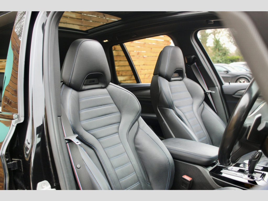 Strictly appointment only, 2025 Autotrader highly rated award winner, Low rate finance available, Nationwide delivery offered. , UKI (Sudbury) Limited are delighted to offer this 2021 (21) BMW X3 M40d for sale presented in Black sapphire metallic. This two owner X3 is in fantastic condition throughout, meticulously cared for and maintained with full BMW main dealer service history. , There is a mega spec on this X3 M40d which consists of - Electric slide/tilt panoramic sunroof, Head up display, Adaptive LED headlights, Automatic high beam assist, Enhanced bluetooth with wireless charging, Harman Kardon loudspeaker system, M Sport plus package, Electric deployable tow bar, 21 718M double spoke alloy wheels, Comfort package, Extended storage, Electric front seats with driver memory, Electric folding door mirrors, Driver and front passenger lumbar support, Heated front seats, Heated steering wheel, Technology package, Black sapphire metallic paint, Vernasca leather - Black with blue stitching, Red painted brake calipers, Privacy glass, Adaptive M chassis, Variable sport steering, Comfort access, Acoustic comfort galzing, Interior mirror with automatic dip, Instrument panel in sensatec, Automatic air conditioning, M sports seats, Connected package professional, High gloss shadow line, M shadow line with extended scope, Ambient lighting, Front and rear parking sensors, Park assist, Reverse camera, Electric tailgate, Satellite navigation, Bluetooth telephone and media, DAB radio, Apple CarPlay, BMW gesture control. , All of our vehicles come with a Motorcheck history report, 3 months/2,500 mile warranty (which ever comes first) and a minimum of 6 months MOT. We also offer extended warranties and ceramic paint protection at an additional cost, please ask our sales team for prices. We also except part exchanges, offer finance and can take payment via bank transfer. We do not accept debit or credit cards. UKI Sudbury Limited charge a £99 admin fee.