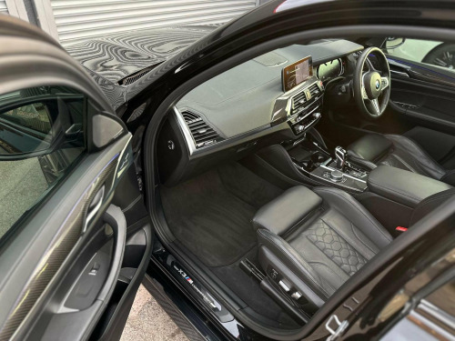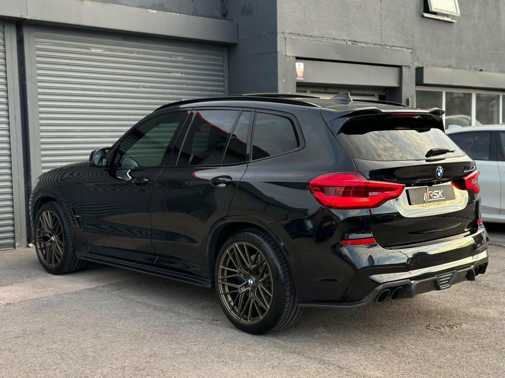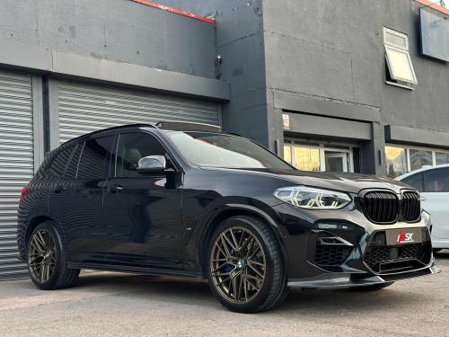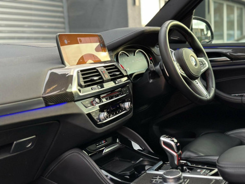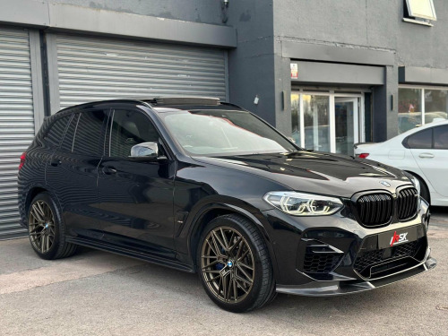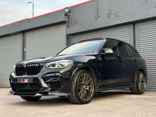 Maintained to the highest standard over the years with Full Service History to show for it along with a £2,500 Carbon Body Kit fitted by EAG Motors. Also fitted with Competition Alloys finished in bronze to give the car that aggresive look.This vehicle has no engine modification but has had an OPF Delete allowing the car to breathe better and sound deeper than standard. This vehicle is not short of optional extras. It has options such as Ultimate Package, Driving Assistant Pack, Tech Pack, Heads Up Display, Gesture Control, Harman Kardon Sound System, Electric Memory Seats, Reverse Camera and much more in the spec list below. , With only 35,500 miles on the clock, this 2019 BMW X3 M offers an appealing combination of low mileage and high performance. This four-wheel drive Competition variant boasts a 3.0L petrol engine and meets Euro 6 emission standards. The vehicle comes with the desirable Ultimate Package, which includes Apple CarPlay, Bluetooth, heated seats, wireless phone charging, and a panoramic sunroof that opens to let the outside in. Further enhancing the driving experience are the inclusion of a panoramic glass sunroof, concierge service, M Carbon Package, and BMW Gesture Control. The X3 M excels with its large boot space, making it a practical choice. The impressive acceleration, reaching 0-62mph in just 4.1 seconds, demonstrates its superior performance capabilities when compared to similar vehicles.
