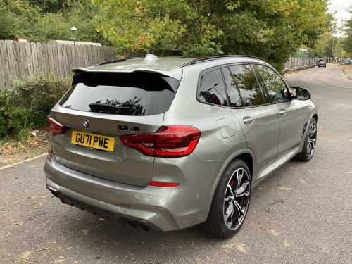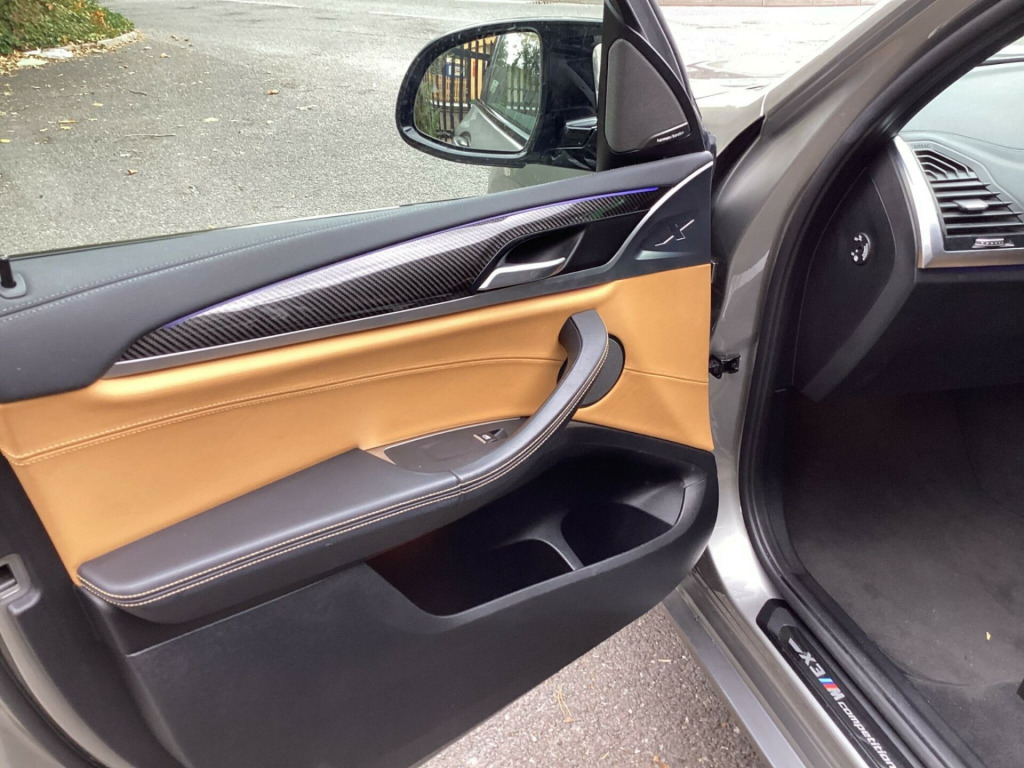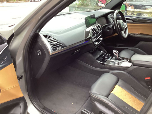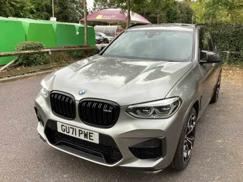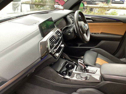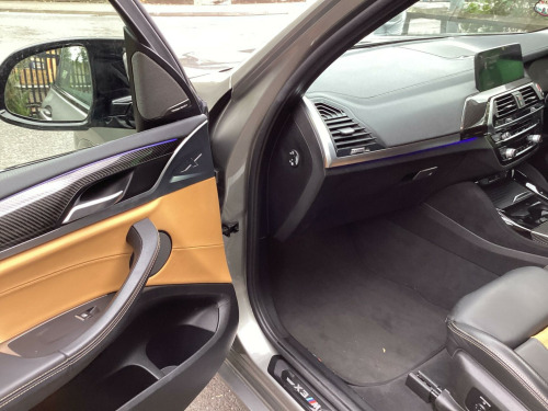 This 2021 BMW X3 M i Competition is a superb example, boasting a full dealership service history and having been owned by just one individual. This Euro 6 compliant model features a powerful 3.0 litre petrol engine paired with a four wheel drive drivetrain, offering impressive performance with a 0-62mph acceleration time of just 4.1 seconds. The spacious interior is enhanced by a full bicolour Merino leather Alcantara upholstery in black and midrand beige, complemented by an M Carbon Package and a panoramic glass sunroof that includes an opening function. For convenience, it is equipped with enhanced Bluetooth telephone preparation featuring wireless charging and Park Distance Control for both the front and rear.This X3 M i Competition stands out with its substantial towing weight of 2400 kg, making it a versatile choice for various needs. The generous boot space further adds to its practicality. A 12 month warranty and a 12 month MOT provided on purchase offer peace of mind, highlighting its excellent condition and readiness for its next owner. These attributes collectively demonstrate why this particular vehicle offers a superior experience compared to other similar models on the market. hanced bluetooth telephone preparation with wireless charging, parking assistant plus, wifi hotspot preparation, donington grey, m carbon package, panoramic glass sunroof, sun protection glass, comfort package, electric seat adjustment with memory and active ventilation, full bicolour merino leather-alcantara - black-midrand beige, interior trim - carbon fibre, seat heating - front and rear, driving assistant plus, 12v power socket in front centre console, 21in alloy wheels - m light v-spoke style 765 m bicolour black with mixed tyres, acoustic glazing, active guard, active protection, adaptive m suspension, air conditioning - automatic, airbags, alarm system - thatcham 1 with remote control and electronic engine immobiliser, ambient lighting, armrest - front - fixed with storage compartment, armrest - rear centre with two cupholders, attentiveness assistant, bmw connected package professional, bmw connecteddrive online services, bmw emergency call, bmw icon adaptive led headlights, bmw live cockpit professional, bmw mobility system, bmw professional navigation with 10.25in touch display, bmw professional radio with single cd player - with mp3 playback compatibility, bmw teleservices, battery safety cut off, bluetooth hands-free facility with usb audio interface and audio streaming, bottle holders integrated into door trim storage compartments - front - up to 1 litre - rear - up to 750ml, brake pad wear indicator - front and rear, bumper system front and rear - replaceable deformation elements for impacts up to 9mph, central locking switch for all doors - fuel filler cap - luggage compartment, check control warning system for monitoring of lights and door-luggage compartment open warning, child proof locking system - rear doors, child seat isofix attachment - rear, condition based service, control display - 10.25in colour display screen, crash sensor, cruise control with brake and speed limiting function, cup holders - front - two, dab tuner, dsc - dynamic stability control plus, digital cockpit, direction indicator - side repeaters - integrated in exterior mirrors, door sill finishers - front - high-gloss black front with x3m competition designation, driving assistant, dynamic brake lights, dynamic safety, eps - electric power steering, electric front seat adjustment with memory, electric windows - front and rear with open-close fingertip control - anti-trap facility and comfort closing function, electro mechanical parking brake, exterior air inlets - mirror caps and air breather in high gloss black, exterior b pillar - black, exterior mirrors - electrically folding with anti dazzle, exterior parts in body colour, exterior trim - high-gloss shadowline, first aid kit and warning triangle, floor mats - velour, front m sport seats, grab handles - integrated in roof linings - four, head-up display, headlining - anthracite, heat protection glazing with green tint, high level third brake light using led technology, high-beam assistant, incorrect fuelling protection system, instrument panel in sensatec, interior lighting - front centre over interior mirror with soft-light - rear centre and front and rear footwell, interior rear-view mirror with automatic anti-dazzle function, interior trim - aluminium carbon trim finishers with pearl chrome highlight, led tailights, lights-on warning by audio warning signal when ignition is switched off, loudspeaker system - harman kardon, luggage compartment - light, luggage compartment storage, lumbar support - driver and front passenger, m competition bodystyling, m compound brakes - perforated, m double slats kidney grille in high gloss black with black slats, m exhaust tailpipes - quad - round - split left and right with high gloss black finisher, m gear knob, m gear selector, m leather steering wheel, m sport brake - red high gloss, m sport differential, m sport exhaust system, obc - on board computer, oil sensor for level and grade - warning by check control system, pdc - park distance control - front and rear, parking assistant, passive protection for pedestrians, performance control, personal profile, rain sensor with automatic headlight activation, rear seat headrests - three, rear-view electrochromatic mirror - automatically dimming, remote control including integrated key - 2, remote control with integrated key with m specific design, reversing assist camera, roof rails - shadowline high-gloss black, seat belt security check for driver and front passenger, seats - front heated, sensatec dashboard, shark fin - antenna, side armrests - front and rear integrated into door trim, side impact protection, start-stop button with comfort go keyless engine start and auto start-stop deactivation button, steering column with manual reach and rake adjustment, steering wheel -