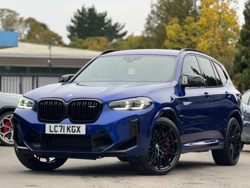Here we have an BMW X3M Competition finished in Marina Bay Blue with 24,255 miles from new, a 12 Month MOT, BMW Service History, 1 Owner From New (VAT QUALIFYING), 2 Keys, 3 Month Warranty and 1 Year AA Breakdown Cover. Being the Competition Model, this car benefits from : Harman Kardon Sound System, Carbon Interior Trims, Heads up Display, High Gloss Red Callipers, Sun Protection Glazing ( Window Tints ), BMW Gesture Control, M Sport Pack, 21" Alloy Wheels, BMW Park Plus Pack ( Reverse Camera + 360 Sensors ) , Heated Memory Electric Leather Seats, Apple Car Play + Android Auto, Satellite Navigation, Auto Lights, Dual Climate Control, Rear privacy Glass and plenty more options. The interior and exterior of the car have been looked after, it starts and drives perfectly with no issues at all. The vehicle is HPI clear and a certificate will be provided upon viewing. The vehicle is also ULEZ Compliant. The car will be sold with a 3 Month Warranty which will cover Engine + Gearbox + Electrical Components . We also offer Part Exchange / Delivery / Buy-Backs, HPI report available on request. Please call us on 07900066267 for further enquiries. =============================================================================== Why not read our AutoTrader reviews to see what our customers think about their experience here and why they choose to buy from us? =============================================================================== Please contact our sales department fo Marina Bay Blue, 12V Power Socket in Front Centre Console, 21in Alloy Wheels - M Double Spoke - Bi-, Acoustic Glazing, Active Guard, Active Protection, Adaptive M Suspension, Air Conditioning - Automatic, Airbags, Alarm System - Thatcham 1 with Remote Co, Ambient Lighting, Armrest - Front - Fixed with Storage Com, Armrest - Rear Centre with Two Cupholder, Attentiveness Assistant, BMW Connected Package Professional, BMW ConnectedDrive Online Services, BMW Emergency Call, BMW Gesture Control, BMW Icon Adaptive LED Headlights, BMW Individual Lights - Shadowline, BMW Live Cockpit Professional, BMW Mobility System, BMW TeleServices, Battery Safety Cut Off, Bottle Holders Integrated into Door Trim