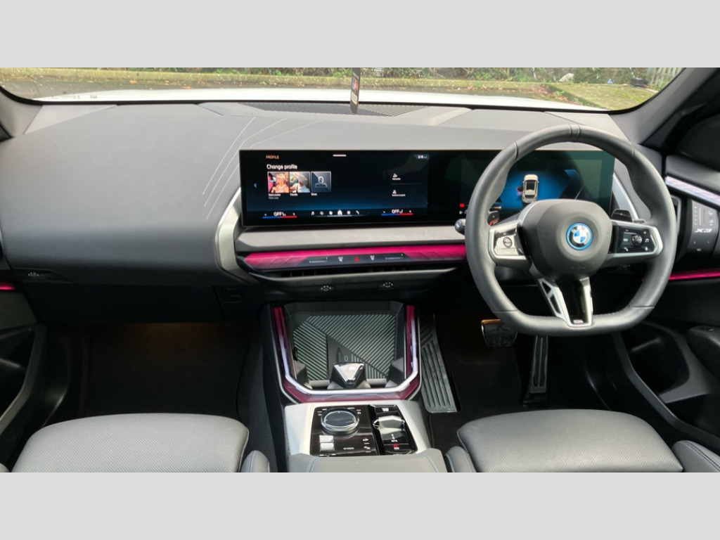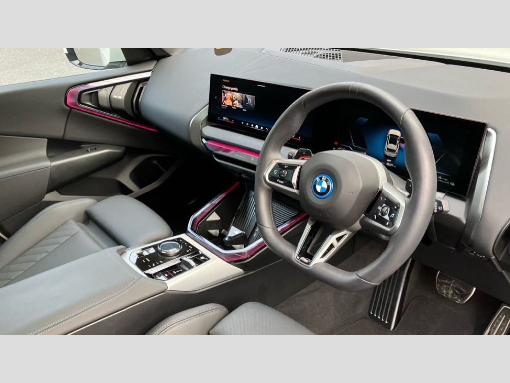 BMW X3 xDrive 30e M Sport 5dr Auto Active guard professional, Attentiveness assist, Automatic operation of tailgate, BMW ConnectedDrive online services, BMW Iconic sounds electric, BMW iDrive, BMW Online services, BMW Teleservices, Brake pad wear indicator, Condition based service, Cruise control with brake function + speed limiter, Drive off assistant, Driving Assistant Plus Preparation, Flat tyre monitor, Language version English, My Mode - Personal, Efficient, Sport, Relax, Expressive, Parking assistant, Reversing assist camera, Servotronic system, Variable sport steering, Dynamic stability control, eDrive exterior sound, Fast charging cable professional mode 3 for public charging, Multiple control arm rear axle, Steptronic transmission with gearshift paddles, Two-joint strut-type front axle with tension strut, DAB tuner, Personal eSim, 4 tailpipe tips, Adaptive LED Headlights, B-pillar trim panel in black high-gloss, BMW badge on front and rear, BMW M-specific front/rear bumpers and side sills, BMW M-specific radiator grille with horizontal bars in Dark Silver and M logo, Daytime running lights, Door handles flush to the surface with lock barrel on driver's side, Dynamic brake lights, Electric adjustable and heated door mirrors, Electric window trap release and convenient opening/closing feature, Headlight beam throw control, Heated rear window, Heated windscreen washer jets, High beam assistant, LED 3rd brake light, LED rear lights, LED tail lights, Locking of the doors, M high-gloss shadowline, M-specific Exterior mirrors, Mirror base and mirror blade in black high-gloss, Mirror triangle in black high-gloss, Rain sensor with automatic headlight activation, Rear side wing doors, Rear wiper, Reversing light, Side window frame in black high-gloss, Windscreen wipers, 12v power socket in front centre console and luggage compartment, 2 x USB Type C ports for charging and data transmission (front centre console) and 2 x USB Type C ports for charging (rear centre console), 3 rear headrests, 3 seat bench in 2nd row, 3 zone automatic air conditioning, 40:20:40 split folding rear seat with loading system, Ambient lighting, Anthracite headlining, Electric adjustable seats with memory function, Floor mats in velour, Footrest and pedals in black plastic, Four grab handles integrated in roof lining, Front armrest with integrated control panel, Front centre console trim in black high-gloss, Front head restraints, Front passenger seat, Front sports seats, Glove compartment, i-Size / ISOFIX attachment points on both outer rear seats, with covers in black, Luggage compartment separating net, M sport leather steering wheel, Multifunction steering wheel, Rear side armrests integrated into door trim, Selector lever with toggle operation, Steering column adjustment, Sun visors with illuminated vanity mirrors, Three upper retaining strap clips integrated into the rear panels of the seat backrests, Through loading system, Two front cupholders and two in the rear center armrest, Wireless charging tray, Connected pro package - X3, Driving assistant package - X3, Interior and exterior mirror package - X3, M Sport pro pack - X3, 3 point seatbelts, Acoustic protection for pedestrians, Airbag deployment is controlled with respect to the intensity and scope, Anti-lock braking system (ABS), Automatic hold function, BMW emergency call, Brake assist, Brake drying, Brake energy regeneration, Braking readiness, Central airbag, Child locks on rear doors, Cornering brake control (CBC), Crash Sensor - activation of central locking release, hazard warning light and interior lighting, Driver and front passenger front and side airbags, Dynamic brake control, Electromechanical parking brake, Front and rear disc brakes, Head airbags, Integrated braking system, Post Crash Collision Warning with braking function, Trailer stability control, Tyre pressure sensor, Warning triangle, Alarm system, Closing system with central locking, Comfort access system, Locking wheel bolts, Start/stop button with keyless motor start with acoustic drive, Tyre repair kit
