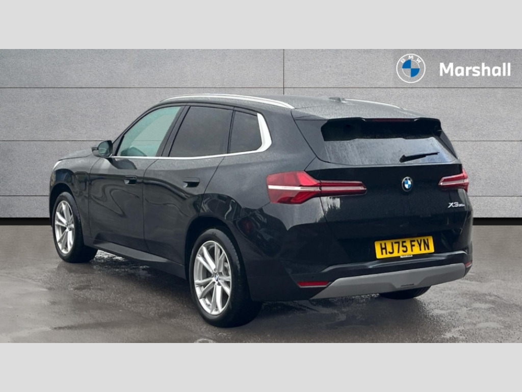 BMW X3 xDrive 30e xLine 5dr Auto Active guard professional, Attentiveness assist, Automatic operation of tailgate, BMW ConnectedDrive online services, BMW Iconic sounds electric, BMW iDrive, BMW Online services, BMW Teleservices, Brake pad wear indicator, Condition based service, Drive off assistant, Flat tyre monitor, Language version English, My Mode - Personal, Efficient, Sport, Relax, Expressive, Servotronic system, Variable sport steering, Dynamic stability control, eDrive exterior sound, Fast charging cable professional mode 3 for public charging, Multiple control arm rear axle, Steptronic transmission with gearshift paddles, Two-joint strut-type front axle with tension strut, DAB tuner, Personal eSim, 4 tailpipe tips, B-pillar trim panel in black high-gloss, BMW badge on front and rear, BMW M-specific front/rear bumpers and side sills, BMW M-specific radiator grille with horizontal bars in Dark Silver and M logo, Daytime running lights, Door handles flush to the surface with lock barrel on driver's side, Dynamic brake lights, Electric adjustable and heated door mirrors, Electric window trap release and convenient opening/closing feature, Headlight beam throw control, Heated rear window, Heated windscreen washer jets, High beam assistant, LED 3rd brake light, LED rear lights, LED tail lights, Locking of the doors, M-specific Exterior mirrors, Mirror base and mirror blade in black high-gloss, Mirror triangle in black high-gloss, Rain sensor with automatic headlight activation, Rear side wing doors, Rear wiper, Reversing light, Side window frame in black high-gloss, Windscreen wipers, 12v power socket in front centre console and luggage compartment, 2 x USB Type C ports for charging and data transmission (front centre console) and 2 x USB Type C ports for charging (rear centre console), 3 rear headrests, 3 seat bench in 2nd row, 3 zone automatic air conditioning, 40:20:40 split folding rear seat with loading system, Ambient lighting, Electric adjustable seats with memory function, Floor mats in velour, Footrest and pedals in black plastic, Four grab handles integrated in roof lining, Front armrest with integrated control panel, Front centre console trim in black high-gloss, Front head restraints, Front passenger seat, Front sports seats, Glove compartment, i-Size / ISOFIX attachment points on both outer rear seats, with covers in black, Luggage compartment separating net, Multifunction steering wheel, Rear side armrests integrated into door trim, Selector lever with toggle operation, Steering column adjustment, Sun visors with illuminated vanity mirrors, Three upper retaining strap clips integrated into the rear panels of the seat backrests, Through loading system, Two front cupholders and two in the rear center armrest, Wireless charging tray, Connected pro package - X3, Driving assistant + pack - X3, Interior and exterior mirror package - X3, 3 point seatbelts, Acoustic protection for pedestrians, Airbag deployment is controlled with respect to the intensity and scope, Anti-lock braking system (ABS), Automatic hold function, BMW emergency call, Brake assist, Brake drying, Brake energy regeneration, Braking readiness, Central airbag, Child locks on rear doors, Cornering brake control (CBC), Crash Sensor - activation of central locking release, hazard warning light and interior lighting, Driver and front passenger front and side airbags, Dynamic brake control, Electromechanical parking brake, Front and rear disc brakes, Head airbags, Integrated braking system, Post Crash Collision Warning with braking function, Trailer stability control, Tyre pressure sensor, Warning triangle, Alarm system, Closing system with central locking, Comfort access system with BMW digital key plus, Locking wheel bolts, Start/stop button with keyless motor start with acoustic drive, Tyre repair kit