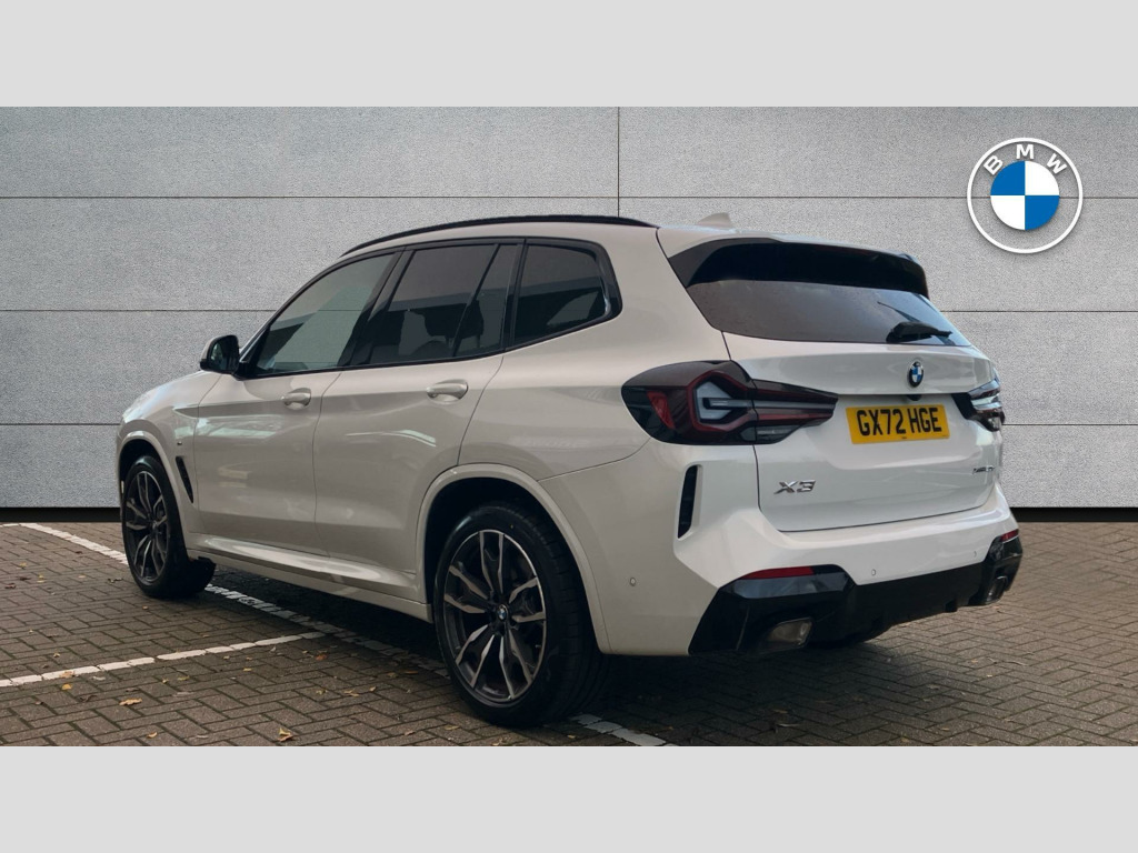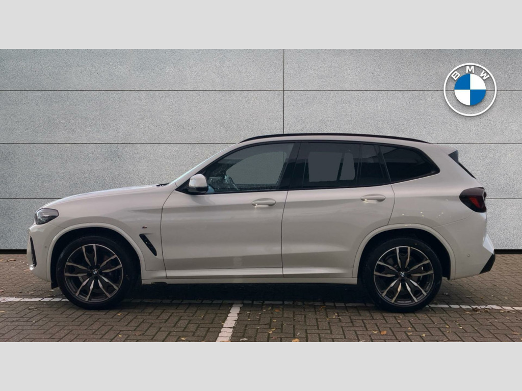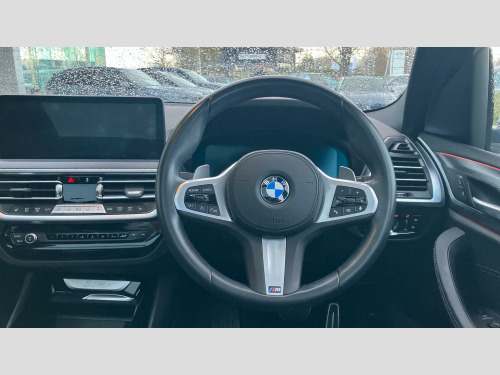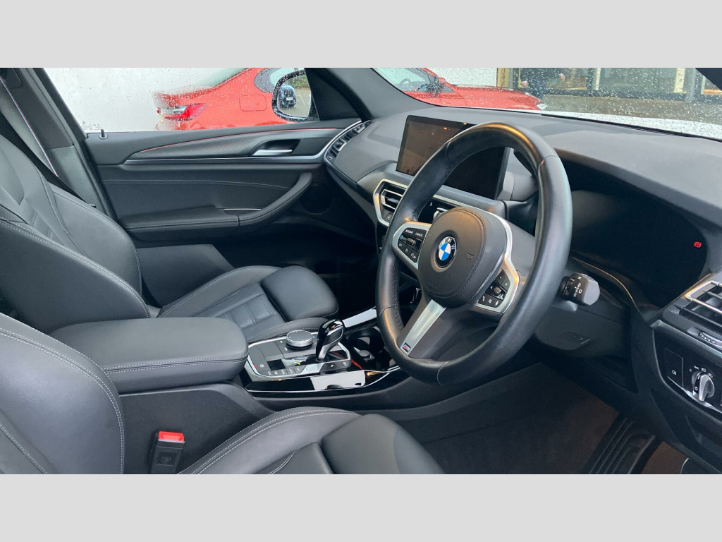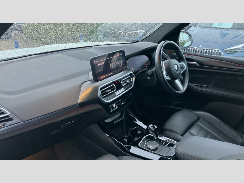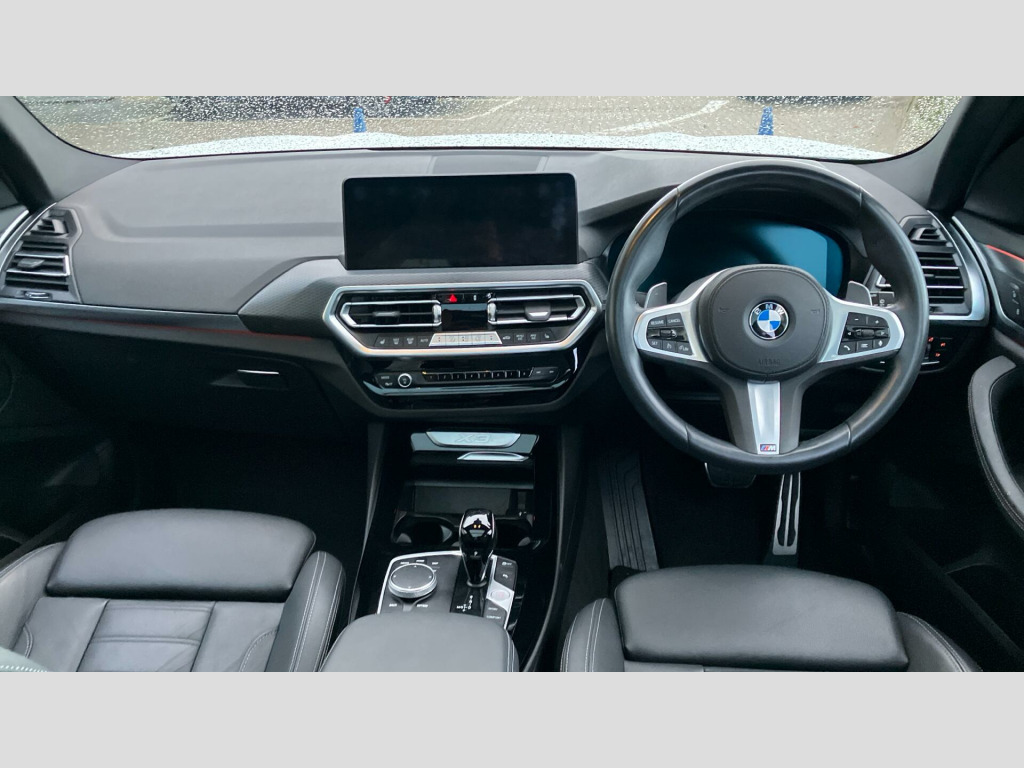 The BMW X3 20d M Sport stands out with its impressive fuel economy of 48 mpg, demonstrating its efficiency compared to similar vehicles. Its low CO2 emissions further highlight its environmentally conscious design. The generous boot space offers practicality for all your needs, making it a versatile choice for families and individuals alike. This vehicle combines sophisticated BMW engineering with a host of premium features, offering a refined and capable driving experience. 20" 787 M Double-spoke Alloy Wheels, M Sport Brakes with Blue Calipers, Tyre Repair Kit, Adaptive Suspension, BMW Individual Lights Shadow Line, M Sport Seat Belts, Panoramic Glass Sunroof, Sun Protection Glass, Active Protection, Deletion of iDrive touch function, Indv. high-gloss shadowline- extended, Special Steering Bluetooth Wifi, M Sport Pro Pack, Mild Hybrid Technology, Auto transmission with gearshift paddles, Performance Control, Variable Sport Steering, Acoustic glass, High-gloss Shadowline Roof Rails, Alarm System, Aluminium Rhombicle with Pearl Chrome, Ambient Lighting, Ext. mirrors- folding with anti-dazzle, Rear-view Mirror with Auto dimming, Sport seats, Driver Seat Backrest Width Adjustment, Heated front seats, High-Beam Assistant, Driving Assistant, Active Guard, Parking Assistant, Automatic Air Conditioning, BMW Icon Adaptive LED Headlights, BMW Emergency Call, BMW TeleServices, BMW Online Services, Connected Package Pro (limited duration), Live Cockpit Professional, DAB Radio, M Sport Exterior Styling, High-gloss Shadowline Exterior Trim, Anthracite Headlining, Active Pedestrian Safety, M Sport Package