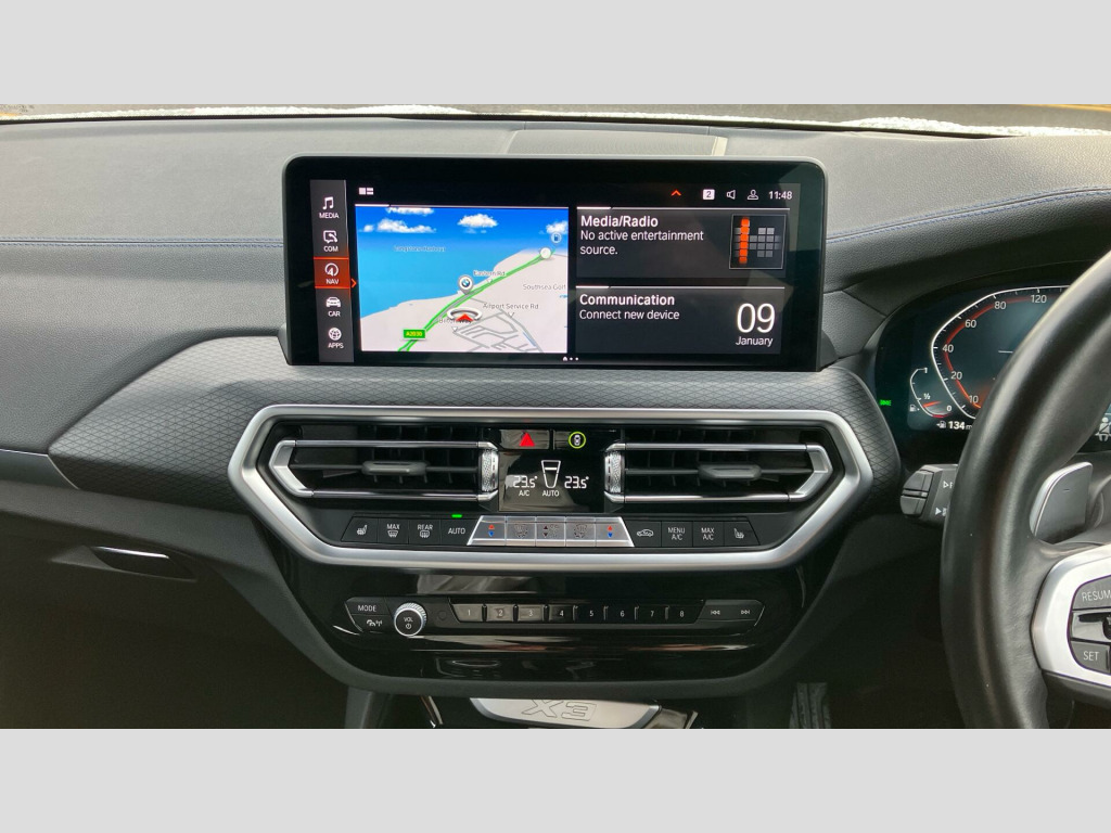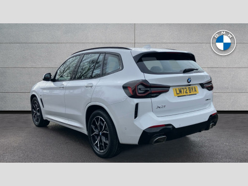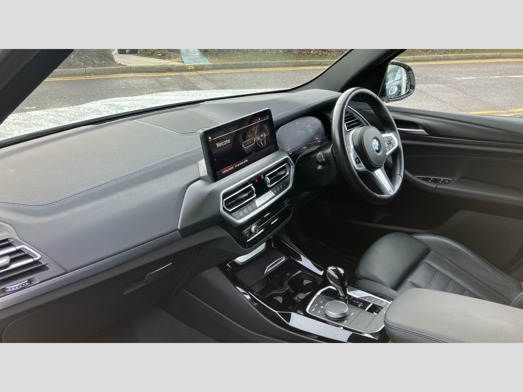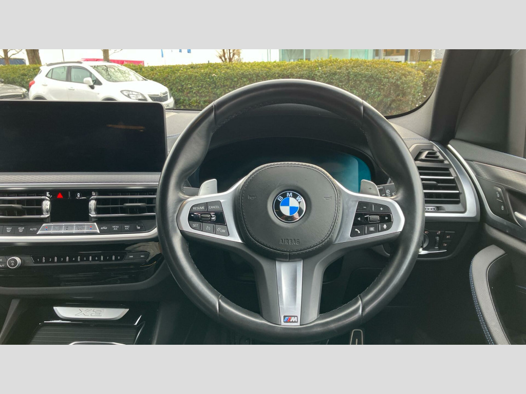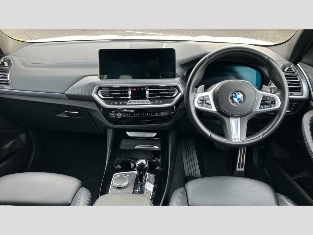This M Sport variant is equipped with a host of desirable features designed to enhance your driving experience. The Parking Assistant Plus, complete with a 360 degree camera and front and rear sensors, makes manoeuvring effortless. Inside, you'll find a premium Sensatec Dashboard and luxurious Vernasca Leather upholstery in Black with striking Blue Contrast Stitching. Comfort is assured with the three zone automatic air conditioning, allowing everyone to set their ideal climate. The generous boot space provides ample room for all your needs, making this X3 a practical and sophisticated choice. Tyre Repair Kit, Sensatec Dashboard, Deletion lumbar support/width adjustment, Parking Assistant Plus, Drive Recorder, Deletion of iDrive touch function, Mild Hybrid Technology, EU6 RDE II exhaust emissions standard, 19" 887 M Y-spoke Midnight Grey Alloy Wh, Auto transmission with gearshift paddles, Performance Control, Variable Sport Steering, Acoustic glass, High-gloss Shadowline Roof Rails, Alarm System, Aluminium Rhombicle with Pearl Chrome, Ambient Lighting, Ext. mirrors- folding with anti-dazzle, Rear-view Mirror with Auto dimming, Sport seats, Backrest width adjustment, Heated front seats, High-Beam Assistant, Driving Assistant, Active Guard, Automatic Air Conditioning, BMW Icon Adaptive LED Headlights, BMW Emergency Call, BMW TeleServices, BMW Online Services, Connected Package Pro (limited duration), Live Cockpit Professional, DAB Radio, M Sport Suspension, M Sport Exterior Styling, High-gloss Shadowline Exterior Trim, Anthracite Headlining, Active Pedestrian Safety, Special Steering Bluetooth Wifi, M Sport Package