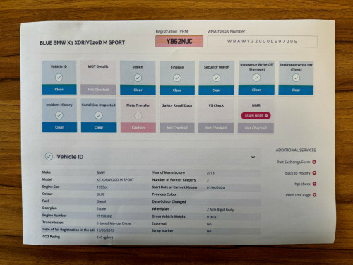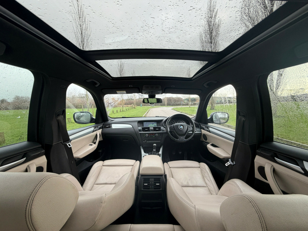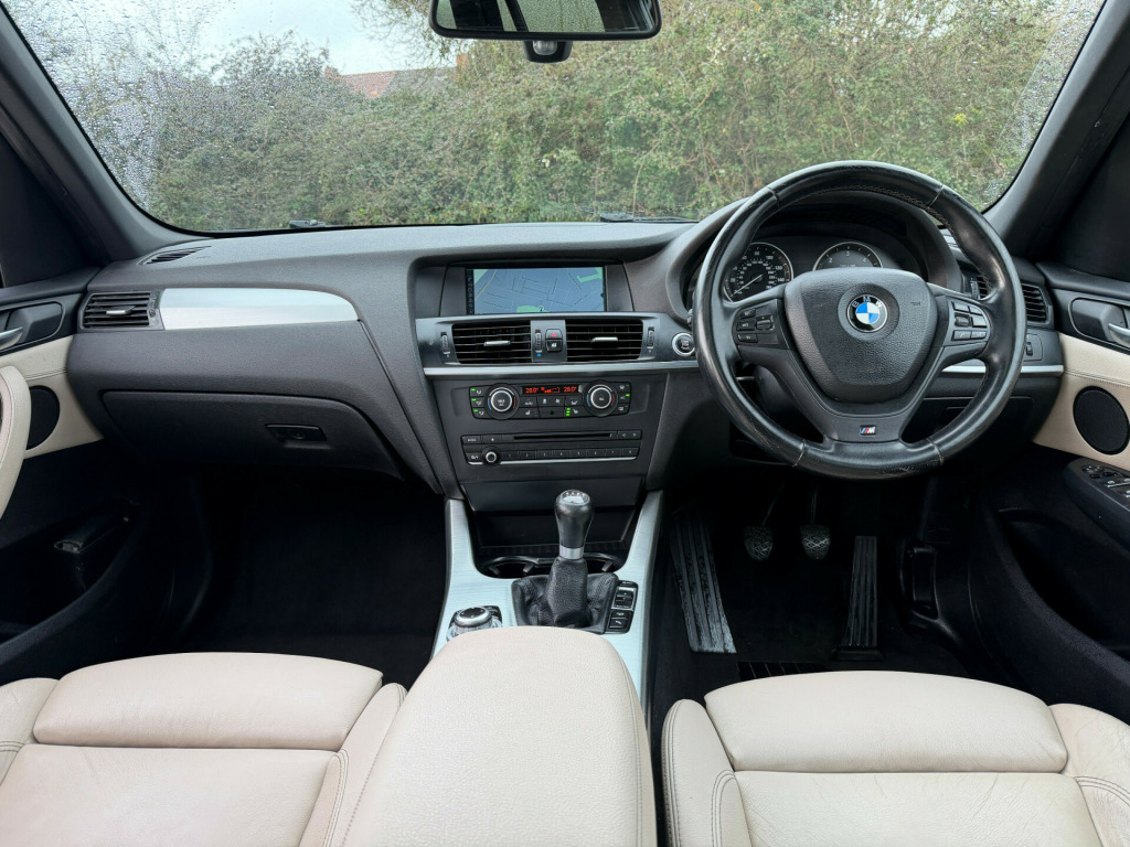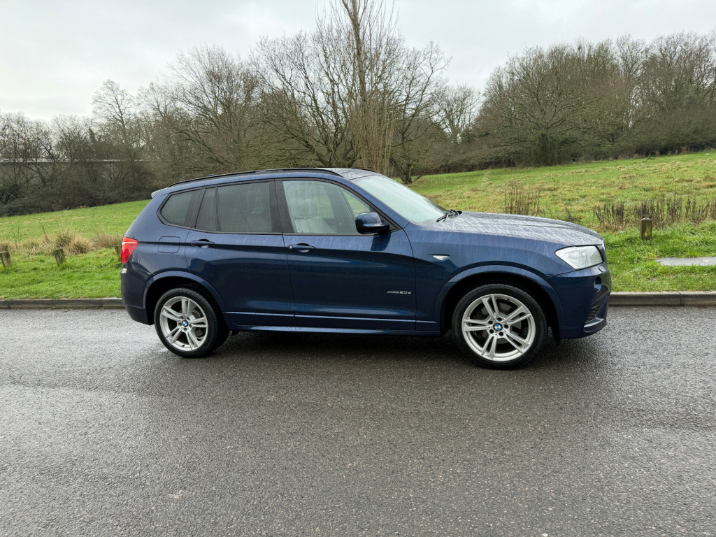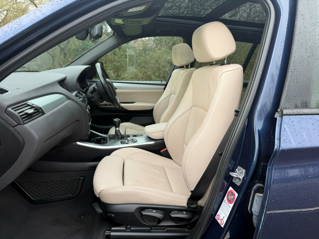 62 Reg - Deep Sea Blue with Full Ivory Leather Trim, This stunning looking X3 M Sport comes with an enormous specification which includes: Full Size Panoramic Glass Sunroof, Factory Pro Widescreen Colour Satellite Navigation, Reversing Camera with Top View, Bluetooth Phone, Bluetooth Audio, Xenon Headlamps, Adaptive Headlights, High-beam Assist, Sports Front Seats, Heated Front Seats, Performance Control, Dual Climate Control, Cruise Control, Trip Computer, CD Player with Fingertip Controls, Power Folding Mirrors, Auto Lights, Auto Dipping Mirror, Performance Control, Leather Steering Wheel, Airbags, ISO-Fix Seating, 19'' Alloy Wheels, Rear Window Tints, Electric Retractable Towbar, Anthracite Headlining, Extended Storage, Front Fogs, comes with a Comprehensive Full Service History (12 services) although 2 services we not stamped so I am going to try and locate these this week, plus it comes with a brand new MOT, really a very nice looking, enormous specification car that drives superbly so any inspection welcome, HPI Clear, Part Exchange up or down welcome. **Debit/Credit Cards Accepted** **Open 6 Days a week** **POOR CREDIT NO PROBLEMS - Finance available (subject to status)** (*Sometimes we may still reserve the right to not offer unaccompanied test drives)