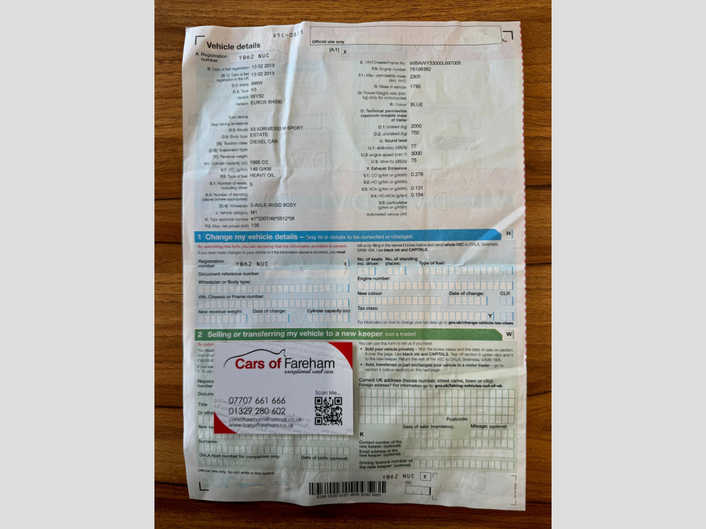 This 2013 BMW X3 X3 2.0 20d BluePerformance M Sport xDrive Euro 6 5dr is currently available for £7,495 in Fareham Hampshire with Diesel engine and Manual gearbox. For more information or to arrange a viewing, click here to send us an email using form below.