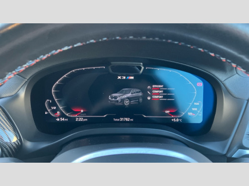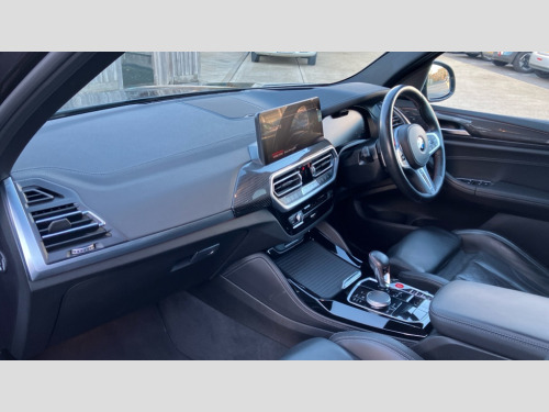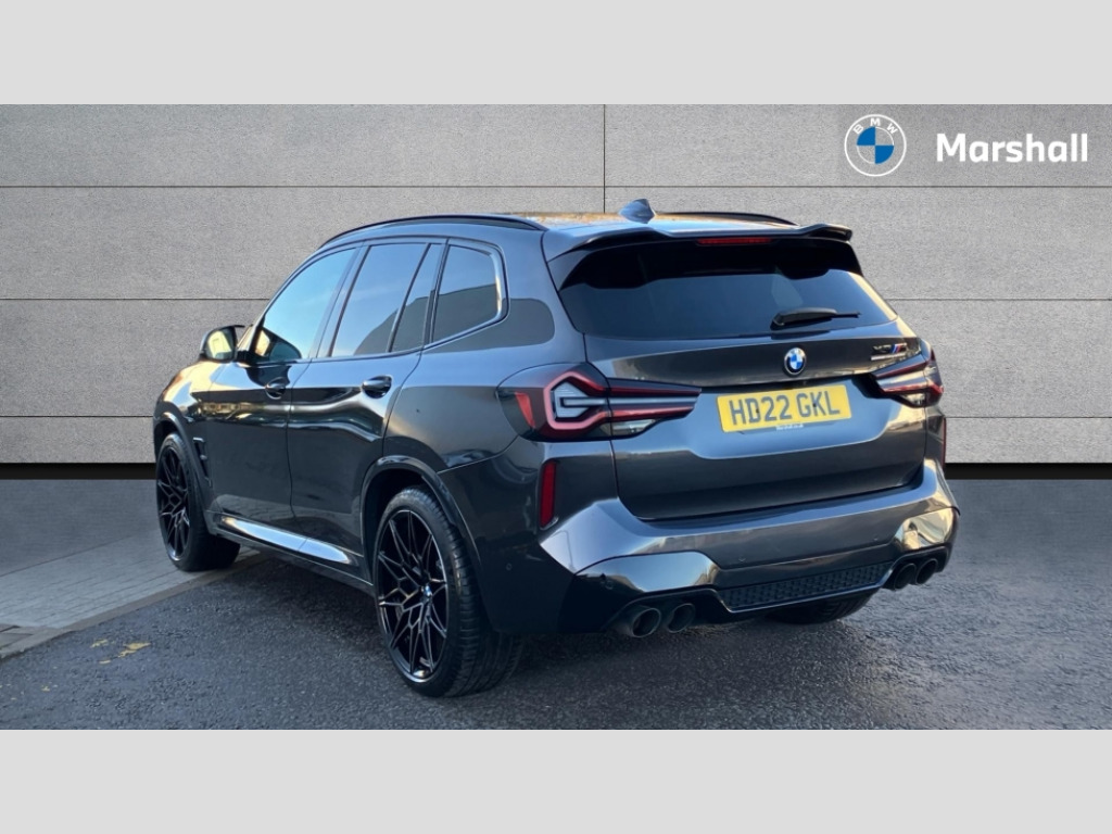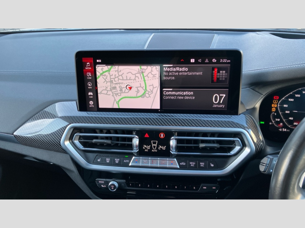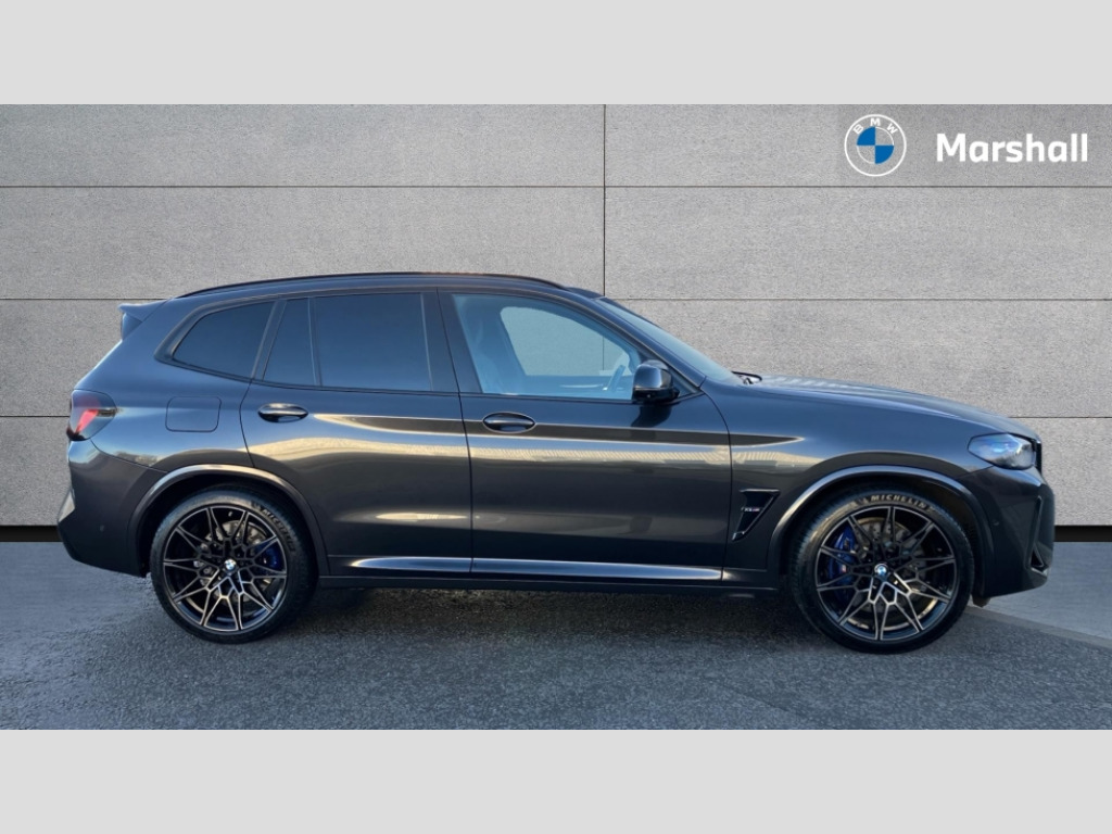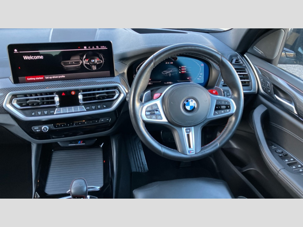 BMW X3 M xDrive X3 M Competition 5dr Step Auto Active Guard, Attentiveness assist, Auto start-stop, Automatic tailgate operation, BMW ConnectedDrive online services, BMW gesture control, BMW Live Cockpit Professional Nav with 12.3" instrument display + 12.3" control display, Intelligent Voice Assist, BMW OS 7, HDD, 2USB, 4G LTE connect, BMW service history, BMW Teleservices, Brake pad wear indicator in front and rear, Check Control warning system for monitoring of lights and door/luggage compartment open warning, Condition based service, Cruise control with brake function + speed limiter, Electronic Power Steering (EPS), Enhanced bluetooth with wireless charging, Front/rear park distance control (PDC), Head up Display, iDrive Controller with 8 favourite buttons, Integrated owner's handbook, Language version English, Lights on warning by audio warning signal when ignition is switched off, M drive buttons, Oil sensor for level and grade, warning by check control system, On board computer - average speed+fuel consumption, service interval, clock/date, odometer/trip meter, outside temperature display and ice warning, Personal Profile - automatic lock when driving away selectable, Run flat indicator, Shifting point display, Variable sport steering, Wifi hotspot preparation, Activation of safety battery terminal clamp, Adaptive M suspension, Double joint spring strut front axle, Driving experience modes - Comfort,ECO PRO,Sport and Sport+ mode, Eight speed M Steptronic sport transmission with drivelogic and gearshift paddle switches on steering wheel, Electronic differential lock, EU6 emissions management, Incorrect fuelling protection, M Sport differential, Performance Control, 2 USB ports for charging in rear of centre console, 2x USB Type C ports in front centre console for charging and data transfer, DAB tuner, Electronic service booklet, Harman Kardon loudspeaker system, Acoustic glazing, Auto dimming with folding wing mirrors, Automatic headlight beam throw control with load dependent regulating reaction, dynamic compensation of braking dive and acceleration squat, Black finish on B pillars, Body colour door handles, Body colour front and rear bumpers, Body colour spoiler, Direction indicator, side repeaters, integrated in exterior mirrors, Dynamic brake lights, Electric front and rear windows with fingertip open/close + anti-trap facility and comfort closing function, Electrically adjustable and heated door mirrors, Follow me home headlight function, Front and rear bumper system with replaceable deformation elements, Green tinted heat protection glazing, Heated rear window, Heated windscreen washer jets, High beam assistant, High gloss black shadow line roof rails, High gloss shadowline exterior trim in decorative moulding side frame/recess cover/guide rail/B, C pillars/mirror frame and triangle with mirror base, High level 3rd brake light incorporating LED Technology, Interior rear view electrochromatic mirror with automatic anti dazzle function, LED tail lights, Lightweight engineering, M competition bodystyling, M door entry sills, M Double slat kidney grilles in High Gloss Black with black slats, M Exhaust tailpipes - Quad, round, split left and right with high gloss black finisher 100mm, M Sport exhaust system, Model inscription logo on right tailgate, Rain sensor including auto headlights activation, Rear side wing doors, Rear wiper, Reversing lights, Shark fin antenna, Sun protection glass, Visible VIN plate, Welcome lighting, Windscreen wipers with adjustable interval, 12V power socket in luggage compartment and front centre console, 3 zone automatic air conditioning, 40/20/40 split folding rear seats with backrest, Anthracite headlining, Battery in luggage compartment, Electric seat adjustment with memory, Floor mats in velour - Front and rear colour co-ordinated with all standard carpet colours and front with M stripes, Foldable boot floor with storage compartment, Four grab handles integrated in roof lining, Four-way electrically adjustable front lumbar support, Front and rear bottle holders integrated into door trim storage compartments, Front and rear side armrests integrated into door trim, Front centre armrest with storage compartment, Front cupholders x 2, Front head restraints, Front M sport seats with electrically adjustable headrests and illuminated M logo in headrests, Glove compartment with illumination, Heated front and rear seats, High gloss black front door sill finishers with X3 M competition designation, Luggage compartment lighting, M Gear knob, M sport leather steering wheel, Microfilter and active carbon filter, Multifunction steering wheel, Parcel shelf removeable and storable under boot floor, Reach and rake adjustable steering column, Rear seat centre armrest with two cupholders, Seat backrest adjustment for rear seat, Single front passenger seat, Steering wheel heating, Storage compartment in rear centre console, front and rear door trims and under luggage compartment, Sunvisors with illuminated vanity mirrors and ticket pocket, Three rear headrests, Through loading system with 40/20/40 split folding rear seat, Toolkit located in luggage compartment, Ambient light pack - X3/X4 M, Connected package professional - X3 M/X4 M, Extended storage pack with Stainless steel door sills- X3 M, Interior and exterior mirror pack - X3/X4 M, Interior lighting pack -X3/X4 M, Active protection, ADB - Automatic Differential Brake, Airbags - Front driver/passenger, front and rear curtain head protection, front side, manual deactivation of front passenger airbag, Anti lock braking system (ABS) with brake assist, Automatic Stability Control (ASC), BMW emergency call, Brake drying, Brake energy regeneration, Braking pre-tensioning, Child proof locking system in rear door, Child seat ISOFIX attachment rear outer seats, Compound structure brake discs, Cornering brake control (CBC), Crash Sensor - activation of airbags, Crash Sensor - activation of central locking release, hazard