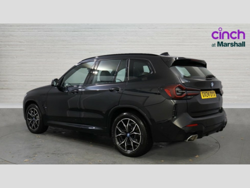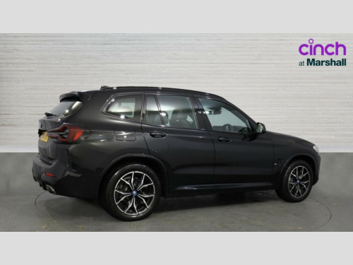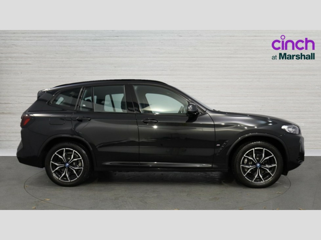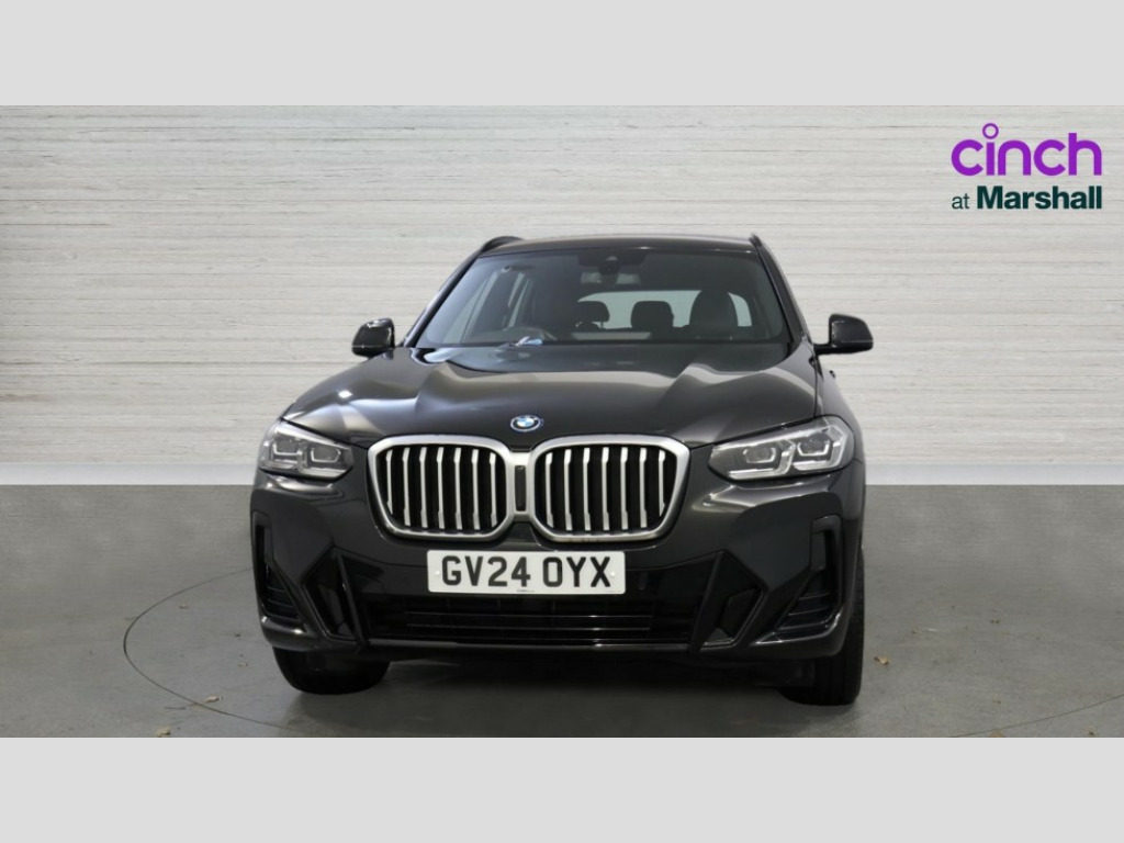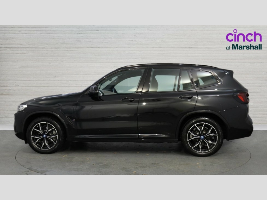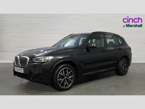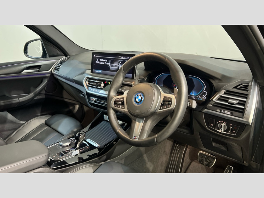 BMW X3 xDrive 30e M Sport 5dr Auto Active Guard, Attentiveness assist, BMW Live Cockpit Professional nav system including 12.3" instrument display + 12.3 high resolution control display, BMW Online services, BMW Teleservices, Brake pad wear indicator in front and rear, Check Control warning system for monitoring of lights and door/luggage compartment open warning, Condition based service - BMW service history, electronic service booklet, integrated owner's handbook, Connected drive services, Electric boot lid, Front/rear Parking distance control, iDrive touch controller with 8 favourite buttons, Instrument cluster with speedometer with mph readout, tachometer, fuel gauge and oil temperature gauge, Lights on warning by audio warning signal when ignition is switched off, Oil sensor for level and grade, warning by check control system, On board computer - average speed+fuel consumption, service interval, clock/date, odometer/trip meter, outside temperature display and ice warning, Optimum shift indicator, Personal Profile - automatic lock when driving away selectable, Run flat indicator, Stop/start system, Variable sports power steering with drive performance control Sport+ mode, eDrive exterior sound, Fast charging cable professional mode 3 for public charging, Incorrect fuelling protection, Multi-link rear suspension, Sport automatic transmission with gearshift paddles, BMW professional radio/CD/MP3, DAB tuner, Acoustic glazing, Automatic windscreen wipers and automatic headlight, Black finish on B pillars, Body colour door handles, Body colour electric adjust heated aspherical door mirrors, Body colour roof mouldings, Body coloured bumpers, Direction indicator, side repeaters, integrated in exterior mirrors, Dynamic brake lights, Exhaust tailpipes - dual, round, split left and right with chrome finisher, Fingertip control / anti-trap function on electric window, Folding wing mirrors with auto dimming, Follow me home headlights, Front and rear bumper system with replaceable deformation elements, Front and rear electric windows, Gloss chrome tailpipes finishers, Green tinted heat insulating glass, Heated windscreen washer jets, High beam assistant, High gloss black shadow line roof rails, High gloss shadowline exterior trim in decorative moulding side frame/recess cover/guide rail/B, C pillars/mirror frame and triangle with mirror base, High level 3rd brake light incorporating LED Technology, Interior rear view electrochromatic mirror with automatic anti dazzle function, LED tail lights, Lightweight engineering, M aerodynamic bodystyling, M Sport entry door sill strips, Model designation, Rain sensor, Rear side wing doors, Rear wing door, Rear wiper, Shark fin antenna, Side exterior M designation badges, Visible VIN plate, Welcome lighting, Windscreen wipers with adjustable interval, 12V power point in luggage area, 12V power socket in front centre console, 2 x USB Type C ports for charging and data transmission (front centre console) and 2 x USB Type C ports for charging (rear centre console), 3 rear headrests, 3 seat bench in 2nd row, 3 zone automatic air conditioning, 4 lashing points to secure luggage, 40:20:40 split folding rear seat with loading system, Ambient lighting, Anthracite headlining, Automatic interior light when door is opened/ignition switched off or via remote key, Floor mats in velour, Foldable storage floor with compartment, Four grab handles integrated in roof lining, Front and rear bottle holders integrated into door trim storage compartments, Front and rear side armrests integrated into door trim, Front centre armrest with storage compartment, Front footwell lights, Front head restraints, Front passenger seat, Front sports seats, Front/rear courtesy lights with soft on/off dimming, Front/rear reading lights, Heated front seats, Isofix rear child seat preparation, Leather gear knob, Lockable glove compartment, Luggage area underfloor compartment, Luggage compartment lighting, M sport leather steering wheel, Multifunction steering wheel, Parcel shelf removeable and storable under boot floor, Reach and rake adjustable steering column, Rear centre armrest with 2 cupholders, Removable / retractable luggage cover, Slope adjustable rear seats, Storage compartment in rear centre console and front/rear door trims, Sun visors with vanity mirrors and ticket pocket, Toolkit located in luggage compartment, Two front cupholders with removable oddments tray/lid, Connected pro pack - X3, ADB - Automatic Differential Brake, Anti-lock braking system (ABS) with brake assist, Automatic Stability Control (ASC), Battery safety cut-off, BMW emergency call, Brake drying, Brake energy regeneration, Braking pre-tensioning, Child locks on rear doors, Cornering brake control (CBC), Crash Sensor - activation of central locking release, hazard warning light and interior lighting, Deactivation of fuel pump in the event of a crash, Driver and front passenger front and side airbags with passenger deactivation and ITS front and rear head airbags, Driver and front passenger knee airbag, DSC+, Dynamic brake control, Dynamic Traction Control - DTC, Electromechanical parking brake, Hill descent control, Hill start assist, Seatbelt security check for front seats, Side impact protection, Three point seatbelts to all seats with front and outer rear pyrotechnic belt tensioners and seat belt force limiters, Two tone horn, Tyre pressure sensor, Ventilated front and rear disc brakes, Warning triangle and first aid kit, Central locking switch for all doors, fuel filler cap and luggage compartment, Electronic engine immobiliser, Locking wheel nuts, Remote control including two integrated key - one button for open/close all lockable content, windows and separate button for open luggage compartment, Remote control Thatcham category 1 alarm, Start/stop button with Comfort Go keyless engine start and auto Start/stop deactivation button, Low rolling resistance tyres
