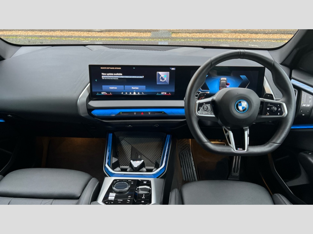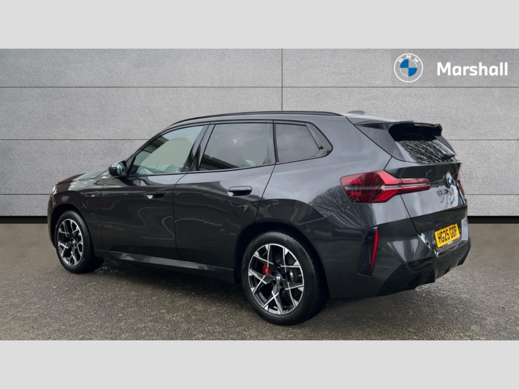 BMW X3 xDrive 30e M Sport 5dr Auto Active Guard, Attentiveness assist, BMW Live Cockpit Professional nav system including 12.3" instrument display + 12.3 high resolution control display, BMW Online services, BMW Teleservices, Brake pad wear indicator in front and rear, Check Control warning system for monitoring of lights and door/luggage compartment open warning, Condition based service - BMW service history, electronic service booklet, integrated owner's handbook, Connected drive services, Electric boot lid, Front/rear Parking distance control, iDrive touch controller with 8 favourite buttons, Instrument cluster with speedometer with mph readout, tachometer, fuel gauge and oil temperature gauge, Lights on warning by audio warning signal when ignition is switched off, Oil sensor for level and grade, warning by check control system, On board computer - average speed+fuel consumption, service interval, clock/date, odometer/trip meter, outside temperature display and ice warning, Optimum shift indicator, Personal Profile - automatic lock when driving away selectable, Run flat indicator, Stop/start system, Variable sports power steering with drive performance control Sport+ mode, Adaptive suspension, eDrive exterior sound, Fast charging cable professional mode 3 for public charging, Incorrect fuelling protection, Multi-link rear suspension, Sport automatic transmission with gearshift paddles, BMW professional radio/CD/MP3, DAB tuner, Acoustic glazing, Automatic windscreen wipers and automatic headlight, Black finish on B pillars, BMW individual high gloss shadow line with extended content, Body colour door handles, Body colour electric adjust heated aspherical door mirrors, Body colour roof mouldings, Body coloured bumpers, Direction indicator, side repeaters, integrated in exterior mirrors, Dynamic brake lights, Exhaust tailpipes - dual, round, split left and right with chrome finisher, Fingertip control / anti-trap function on electric window, Folding wing mirrors with auto dimming, Follow me home headlights, Front and rear bumper system with replaceable deformation elements, Front and rear electric windows, Gloss chrome tailpipes finishers, Green tinted heat insulating glass, Heated windscreen washer jets, High beam assistant, High gloss black shadow line roof rails, High gloss shadowline exterior trim in decorative moulding side frame/recess cover/guide rail/B, C pillars/mirror frame and triangle with mirror base, High level 3rd brake light incorporating LED Technology, Interior rear view electrochromatic mirror with automatic anti dazzle function, LED tail lights, Lightweight engineering, M aerodynamic bodystyling, M Sport entry door sill strips, Model designation, Rain sensor, Rear side wing doors, Rear wing door, Rear wiper, Shark fin antenna, Side exterior M designation badges, Visible VIN plate, Welcome lighting, Windscreen wipers with adjustable interval, 12V power point in luggage area, 12V power socket in front centre console, 2 x USB Type C ports for charging and data transmission (front centre console) and 2 x USB Type C ports for charging (rear centre console), 3 rear headrests, 3 seat bench in 2nd row, 3 zone automatic air conditioning, 4 lashing points to secure luggage, 40:20:40 split folding rear seat with loading system, Ambient lighting, Anthracite headlining, Automatic interior light when door is opened/ignition switched off or via remote key, Floor mats in velour, Foldable storage floor with compartment, Four grab handles integrated in roof lining, Front and rear bottle holders integrated into door trim storage compartments, Front and rear side armrests integrated into door trim, Front centre armrest with storage compartment, Front footwell lights, Front head restraints, Front passenger seat, Front sports seats, Front/rear courtesy lights with soft on/off dimming, Front/rear reading lights, Heated front seats, Isofix rear child seat preparation, Leather gear knob, Lockable glove compartment, Luggage area underfloor compartment, Luggage compartment lighting, M sport leather steering wheel, Multifunction steering wheel, Parcel shelf removeable and storable under boot floor, Reach and rake adjustable steering column, Rear centre armrest with 2 cupholders, Removable / retractable luggage cover, Slope adjustable rear seats, Storage compartment in rear centre console and front/rear door trims, Sun visors with vanity mirrors and ticket pocket, Toolkit located in luggage compartment, Two front cupholders with removable oddments tray/lid, Connected pro pack - X3, Active protection, ADB - Automatic Differential Brake, Anti-lock braking system (ABS) with brake assist, Automatic Stability Control (ASC), Battery safety cut-off, BMW emergency call, Brake drying, Brake energy regeneration, Braking pre-tensioning, Child locks on rear doors, Cornering brake control (CBC), Crash Sensor - activation of central locking release, hazard warning light and interior lighting, Deactivation of fuel pump in the event of a crash, Driver and front passenger front and side airbags with passenger deactivation and ITS front and rear head airbags, Driver and front passenger knee airbag, DSC+, Dynamic brake control, Dynamic Traction Control - DTC, Electromechanical parking brake, Hill descent control, Hill start assist, M sport seatbelt, Seatbelt security check for front seats, Side impact protection, Three point seatbelts to all seats with front and outer rear pyrotechnic belt tensioners and seat belt force limiters, Two tone horn, Tyre pressure sensor, Ventilated front and rear disc brakes, Warning triangle and first aid kit, Central locking switch for all doors, fuel filler cap and luggage compartment, Electronic engine immobiliser, Locking wheel nuts, Remote control including two integrated key - one button for open/close all lockable content, windows and separate button for open luggage compartment, Remote control Thatcham category 1 alarm, Start/stop button with Comfort Go keyless engine start an