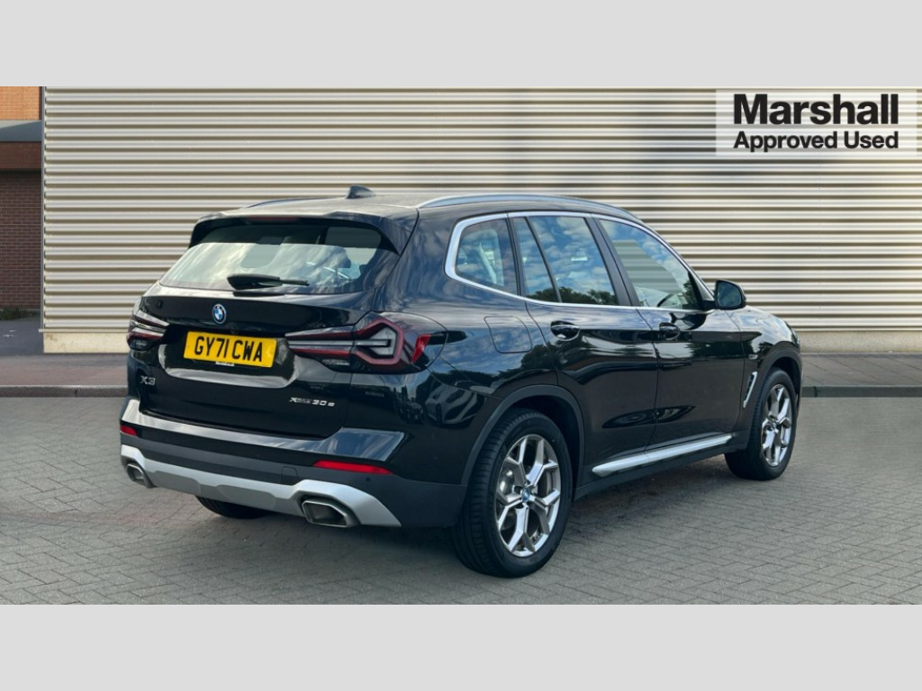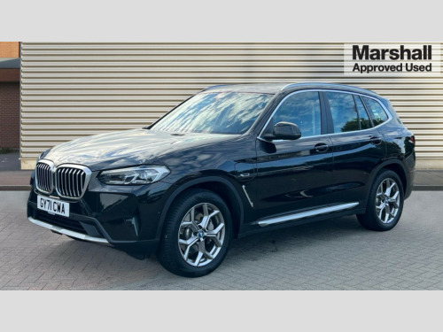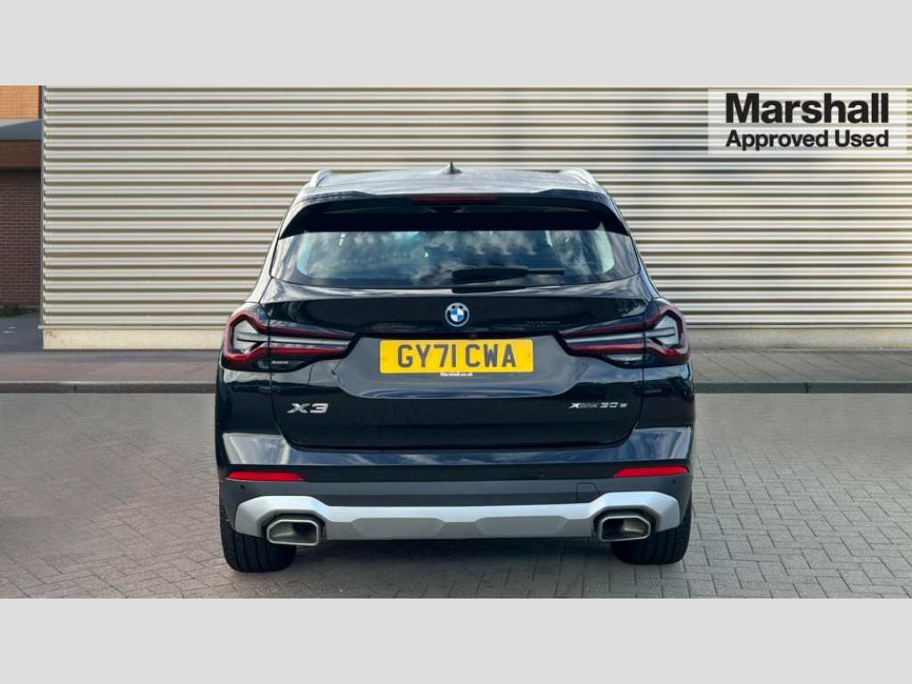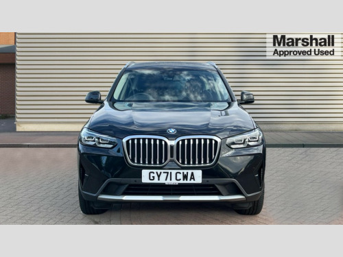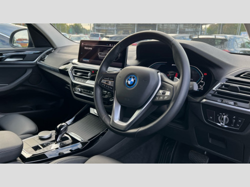 BMW X3 xDrive 30e xLine 5dr Auto Active Guard, Attentiveness assist, BMW Live Cockpit Professional nav system including 12.3" instrument display + 12.3 high resolution control display, BMW Online services, BMW Teleservices, Brake pad wear indicator in front and rear, Check Control warning system for monitoring of lights and door/luggage compartment open warning, Condition based service - BMW service history, electronic service booklet, integrated owner's handbook, Connected drive services, Cruise control with brake function + speed limiter, Electric boot lid, Front/rear Parking distance control, iDrive Controller with 8 favourite buttons, Instrument cluster with speedometer with mph readout, tachometer, fuel gauge and oil temperature gauge, Lights on warning by audio warning signal when ignition is switched off, Oil sensor for level and grade, warning by check control system, On board computer - average speed+fuel consumption, service interval, clock/date, odometer/trip meter, outside temperature display and ice warning, Optimum shift indicator, Personal Profile - automatic lock when driving away selectable, Stop/start system, Variable sports power steering, Charging cable - Mode 2, Drive performance control with ECO PRO comfort + sport mode, eDrive exterior sound, Incorrect fuelling protection, Multi-link rear suspension, Performance Control, Sport automatic transmission with gearshift paddles, BMW professional radio/CD/MP3, DAB tuner, Acoustic glazing, Aluminium exterior trim, Automatic windscreen wipers and automatic headlight, Black finish on B pillars, Body colour door handles, Body colour electric adjust heated aspherical door mirrors, Body colour roof mouldings, Body coloured bumpers, Direction indicator, side repeaters, integrated in exterior mirrors, Dynamic brake lights, Exhaust tailpipes - dual, round, split left and right with chrome finisher, Fingertip control / anti-trap function on electric window, Folding wing mirrors with auto dimming, Follow me home headlights, Front and rear bumper system with replaceable deformation elements, Front and rear electric windows, Glacier silver metallic matt in side sills, Gloss chrome tailpipes finishers, Green tinted heat insulating glass, Heated windscreen washer jets, High beam assistant, High level 3rd brake light incorporating LED Technology, Interior rear view electrochromatic mirror with automatic anti dazzle function, LED tail lights, Lightweight engineering, Matt aluminium roof rails, Model designation, Rear wiper, Shark fin antenna, Visible VIN plate, Welcome lighting, Windscreen wipers with adjustable interval, xLine exterior styling with underbody protection, 12V power socket in front centre console, 3 rear headrests, 3 spoke sports leather multi-function steering wheel, 3 zone automatic air conditioning, 4 lashing points to secure luggage, 40:20:40 split folding rear seat with loading system, Ambient lighting, Automatic interior light when door is opened/ignition switched off or via remote key, Foldable storage floor with compartment, Four grab handles integrated in roof lining, Front and rear bottle holders integrated into door trim storage compartments, Front and rear side armrests integrated into door trim, Front centre armrest with storage compartment, Front door sill finishers with BMW X-line designation, Front footwell lights, Front head restraints, Front sports seats, Front/rear courtesy lights with soft on/off dimming, Front/rear reading lights, Heated front seats, Isofix rear child seat preparation, Leather gear knob, Luggage area underfloor compartment, Luggage compartment lighting, Parcel shelf removeable and storable under boot floor, Reach and rake adjustable steering column, Rear centre armrest with 2 cupholders, Removable / retractable luggage cover, Seat backrest width adjustment, Sensatec perforated upholstery, Slope adjustable rear seats, Storage compartment in rear centre console and front/rear door trims, Sun visors with vanity mirrors and ticket pocket, Toolkit located in luggage compartment, Two front cupholders with removable oddments tray/lid, Connected pro pack - X3, Driving assistant pack - X3, ADB - Automatic Differential Brake, Anti-lock braking system (ABS) with brake assist, Automatic Stability Control (ASC), Battery safety cut-off, BMW emergency call, Brake drying, Brake energy regeneration, Braking pre-tensioning, Child locks on rear doors, Cornering brake control (CBC), Crash Sensor - activation of central locking release, hazard warning light and interior lighting, Deactivation of fuel pump in the event of a crash, Driver and front passenger front and side airbags with passenger deactivation and ITS front and rear head airbags, DSC+, Dynamic brake control, Dynamic Traction Control - DTC, Electromechanical parking brake, Hill descent control, Hill start assist, Seatbelt security check for front seats, Side impact protection, Three point seatbelts to all seats with front and outer rear pyrotechnic belt tensioners and seat belt force limiters, Two tone horn, Tyre pressure sensor, Ventilated front and rear disc brakes, Warning triangle and first aid kit, Central locking switch for all doors, fuel filler cap and luggage compartment, Electronic engine immobiliser, Locking wheel nuts, Remote control including two integrated key - one button for open/close all lockable content, windows and separate button for open luggage compartment, Remote control Thatcham category 1 alarm, Start/stop button with Comfort Go keyless engine start and auto Start/stop deactivation button, Low rolling resistance tyres, Tyre repair kit