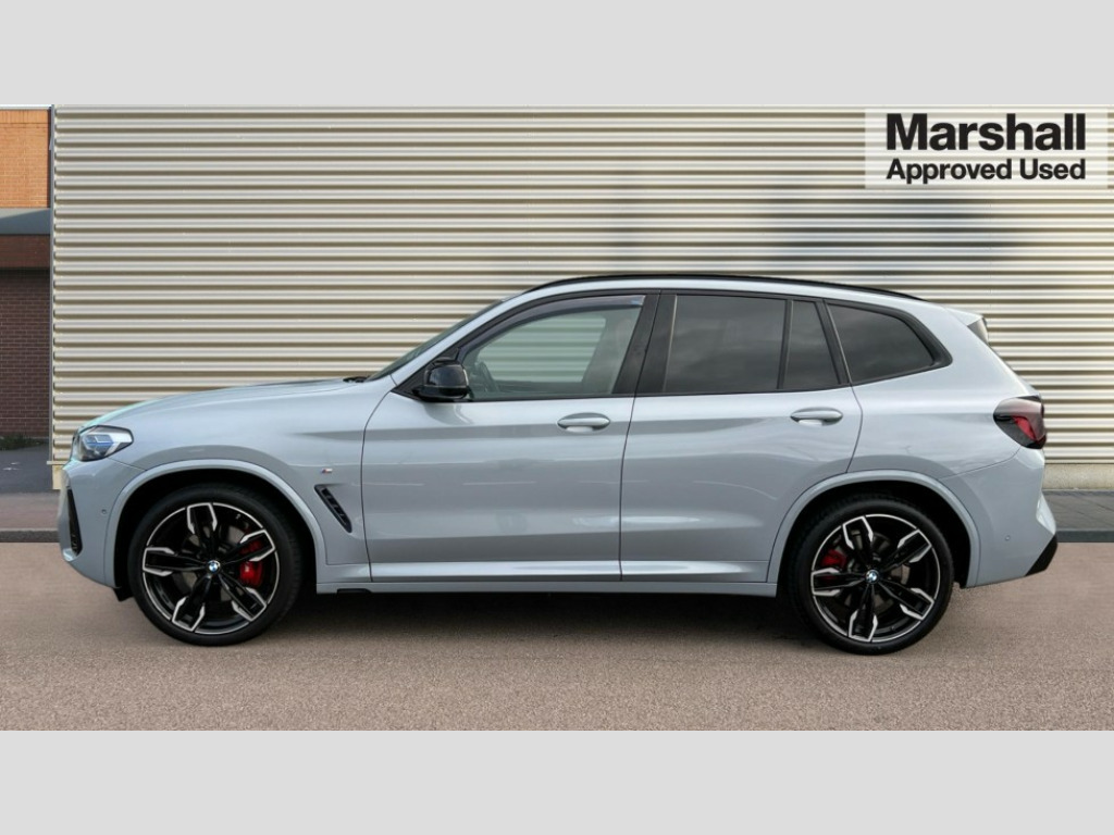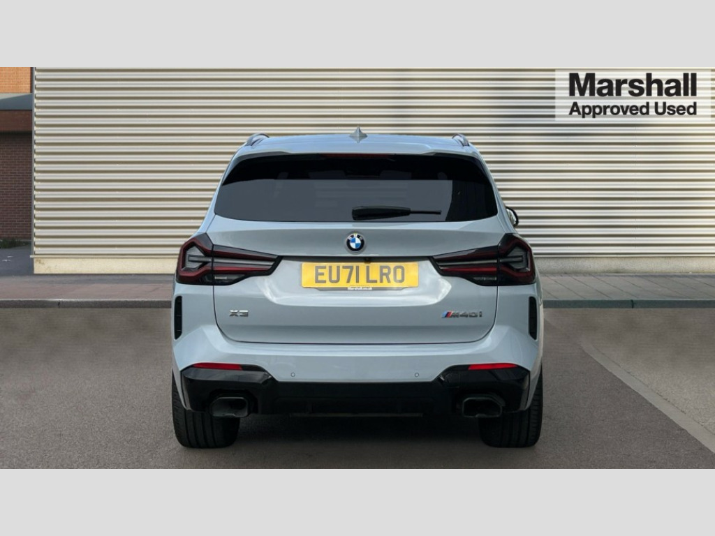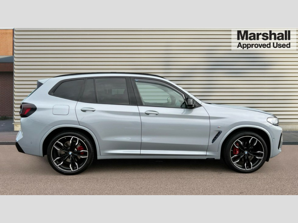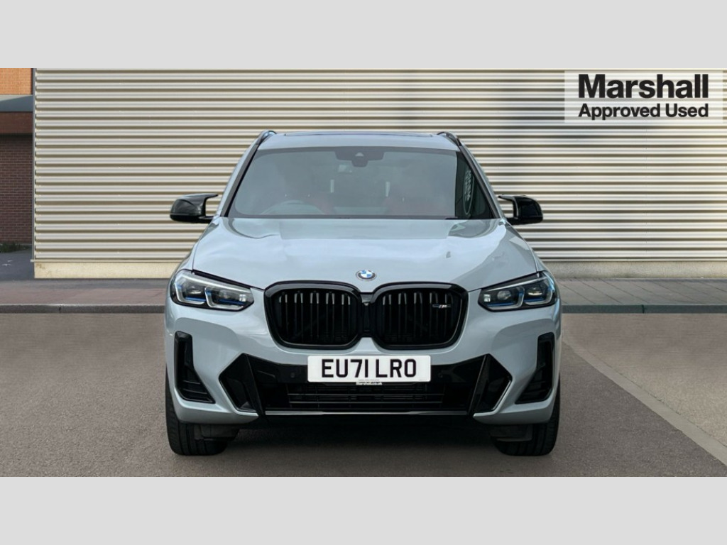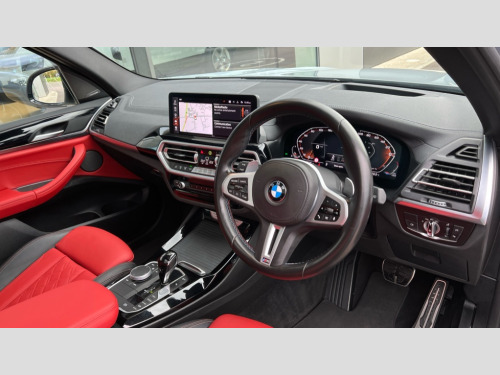 BMW X3 xDrive M40i MHT 5dr Auto Active Guard, Attentiveness assist, BMW Live Cockpit Professional nav system including 12.3" instrument display + 12.3 high resolution control display, BMW Online services, BMW Teleservices, Brake pad wear indicator in front and rear, Check Control warning system for monitoring of lights and door/luggage compartment open warning, Condition based service - BMW service history, electronic service booklet, integrated owner's handbook, Connected drive services, Deletion of driving assistant professional, Electric boot lid, Front/rear Parking distance control, iDrive Controller with 8 favourite buttons, Instrument cluster with speedometer with mph readout, tachometer, fuel gauge and oil temperature gauge, Lights on warning by audio warning signal when ignition is switched off, Oil sensor for level and grade, warning by check control system, On board computer - average speed+fuel consumption, service interval, clock/date, odometer/trip meter, outside temperature display and ice warning, Optimum shift indicator, Personal Profile - automatic lock when driving away selectable, Stop/start system, Variable sports power steering, Drive performance control with ECO PRO comfort + sport mode, Incorrect fuelling protection, M Adaptive suspension, M Sport differential, Multi-link rear suspension, Performance Control, Sport automatic transmission with gearshift paddles, BMW professional radio/CD/MP3, DAB tuner, Acoustic glazing, Automatic windscreen wipers and automatic headlight, Black finish on B pillars, BMW individual high gloss shadow line with extended content, Body colour door handles, Body colour roof mouldings, Body coloured bumpers, Direction indicator, side repeaters, integrated in exterior mirrors, Dynamic brake lights, Electric adjust heated aspherical door mirrors, Exhaust tailpipes - dual, round, split left and right with chrome finisher, Fingertip control / anti-trap function on electric window, Folding wing mirrors with auto dimming, Follow me home headlights, Front and rear bumper system with replaceable deformation elements, Front and rear electric windows, Green tinted heat insulating glass, Heated windscreen washer jets, High beam assistant, High gloss black shadow line roof rails, High gloss shadowline exterior trim in decorative moulding side frame/recess cover/guide rail/B, C pillars/mirror frame and triangle with mirror base, High level 3rd brake light incorporating LED Technology, Interior rear view electrochromatic mirror with automatic anti dazzle function, Kidney frame and struts painted in high gloss black, LED tail lights, Lightweight engineering, M aerodynamic bodystyling, M black mirror caps, Model designation, Rear wiper, Shark fin antenna, Side exterior M designation badges, Sun protection glass, Visible VIN plate, Welcome lighting, Windscreen wipers with adjustable interval, 12V power socket in front centre console, 3 rear headrests, 3 zone automatic air conditioning, 4 lashing points to secure luggage, 40:20:40 split folding rear seat with loading system, Ambient lighting, Anthracite headlining, Automatic interior light when door is opened/ignition switched off or via remote key, Electric adjustable seats with memory function, Foldable storage floor with compartment, Four grab handles integrated in roof lining, Front and rear bottle holders integrated into door trim storage compartments, Front and rear side armrests integrated into door trim, Front centre armrest with storage compartment, Front footwell lights, Front head restraints, Front/rear courtesy lights with soft on/off dimming, Front/rear reading lights, Heated front seats, Isofix rear child seat preparation, Leather gear knob, Luggage area underfloor compartment, Luggage compartment lighting, M sport leather steering wheel, Multifunction steering wheel, Parcel shelf removeable and storable under boot floor, Reach and rake adjustable steering column, Rear centre armrest with 2 cupholders, Removable / retractable luggage cover, Slope adjustable rear seats, Storage compartment in rear centre console and front/rear door trims, Sun visors with vanity mirrors and ticket pocket, Toolkit located in luggage compartment, Two front cupholders with removable oddments tray/lid, Vernasca leather upholstery, Connected pro pack - X3, Active protection, ADB - Automatic Differential Brake, Anti-lock braking system (ABS) with brake assist, Automatic Stability Control (ASC), Battery safety cut-off, BMW emergency call, Brake drying, Brake energy regeneration, Braking pre-tensioning, Child locks on rear doors, Cornering brake control (CBC), Crash Sensor - activation of central locking release, hazard warning light and interior lighting, Deactivation of fuel pump in the event of a crash, Driver and front passenger front and side airbags with passenger deactivation and ITS front and rear head airbags, DSC+, Dynamic brake control, Dynamic Traction Control - DTC, Electromechanical parking brake, Hill descent control, Hill start assist, M sport seatbelt, Seatbelt security check for front seats, Side impact protection, Three point seatbelts to all seats with front and outer rear pyrotechnic belt tensioners and seat belt force limiters, Two tone horn, Tyre pressure sensor, Ventilated front and rear disc brakes, Warning triangle and first aid kit, Central locking switch for all doors, fuel filler cap and luggage compartment, Electronic engine immobiliser, Locking wheel nuts, Remote control including two integrated key - one button for open/close all lockable content, windows and separate button for open luggage compartment, Remote control Thatcham category 1 alarm, Start/stop button with Comfort Go keyless engine start and auto Start/stop deactivation button, Sensatec dashboard, Low rolling resistance tyres