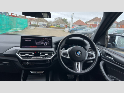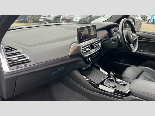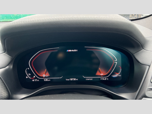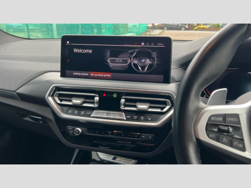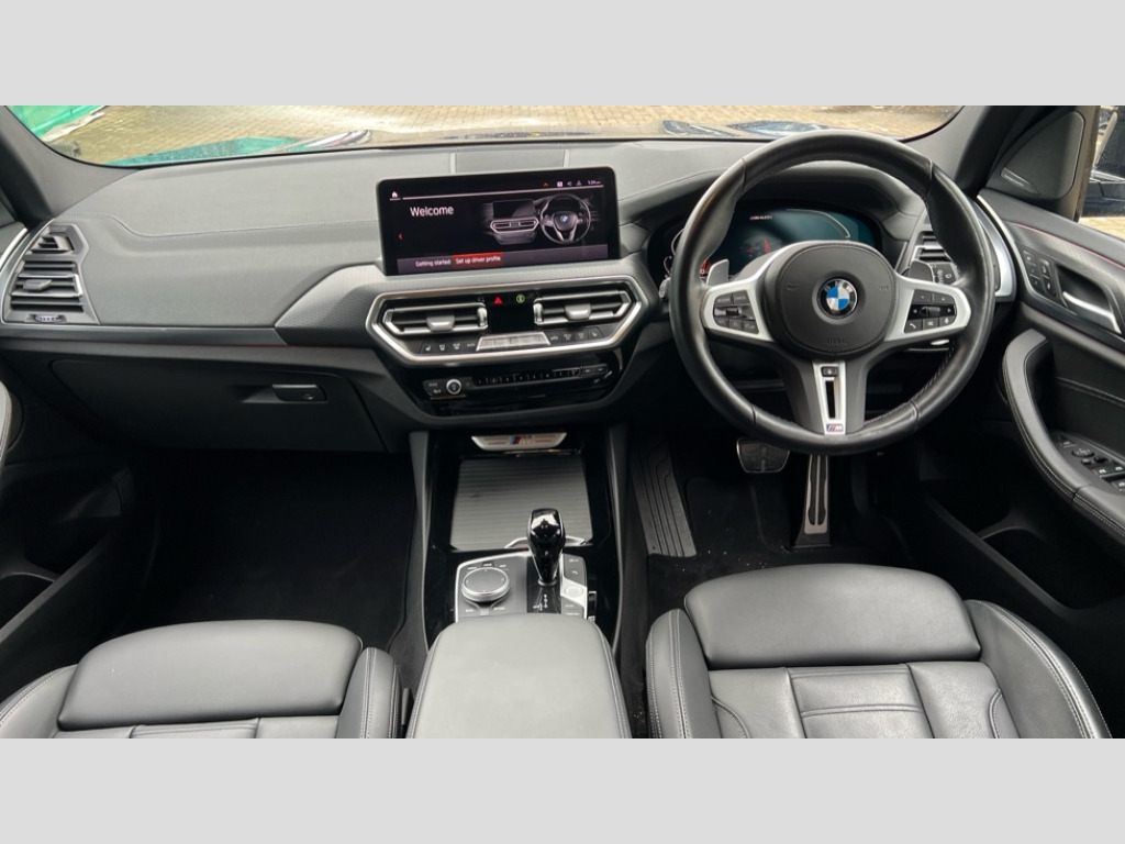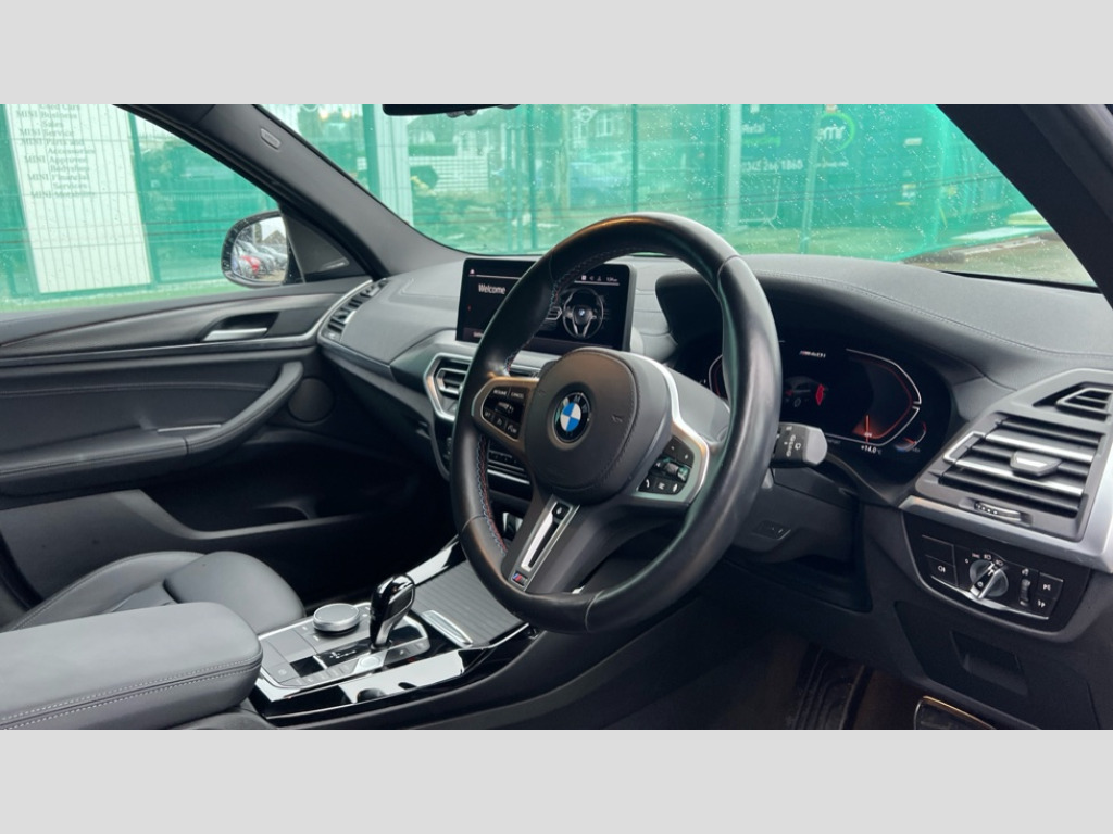 BMW X3 xDrive M40i MHT 5dr Auto Active Guard, Attentiveness assist, BMW Live Cockpit Professional nav system including 12.3" instrument display + 12.3 high resolution control display, BMW Online services, BMW Teleservices, Brake pad wear indicator in front and rear, Check Control warning system for monitoring of lights and door/luggage compartment open warning, Condition based service - BMW service history, electronic service booklet, integrated owner's handbook, Connected drive services, Deletion of driving assistant professional, Electric boot lid, Front/rear Parking distance control, iDrive touch controller with 8 favourite buttons, Instrument cluster with speedometer with mph readout, tachometer, fuel gauge and oil temperature gauge, Lights on warning by audio warning signal when ignition is switched off, Oil sensor for level and grade, warning by check control system, On board computer - average speed+fuel consumption, service interval, clock/date, odometer/trip meter, outside temperature display and ice warning, Optimum shift indicator, Personal Profile - automatic lock when driving away selectable, Run flat indicator, Stop/start system, Variable sports power steering with drive performance control Sport+ mode, Incorrect fuelling protection, M Adaptive suspension, M Sport differential, Multi-link rear suspension, Performance Control, Sport automatic transmission with gearshift paddles, BMW professional radio/CD/MP3, DAB tuner, Acoustic glazing, Automatic windscreen wipers and automatic headlight, Black finish on B pillars, BMW individual high gloss shadow line with extended content, Body colour door handles, Body colour roof mouldings, Body coloured bumpers, Direction indicator, side repeaters, integrated in exterior mirrors, Dynamic brake lights, Electric adjust heated aspherical door mirrors, Exhaust tailpipes - dual, round, split left and right with chrome finisher, Fingertip control / anti-trap function on electric window, Folding wing mirrors with auto dimming, Follow me home headlights, Front and rear bumper system with replaceable deformation elements, Front and rear electric windows, Green tinted heat insulating glass, Heated windscreen washer jets, High beam assistant, High gloss black shadow line roof rails, High gloss shadowline exterior trim in decorative moulding side frame/recess cover/guide rail/B, C pillars/mirror frame and triangle with mirror base, High level 3rd brake light incorporating LED Technology, Interior rear view electrochromatic mirror with automatic anti dazzle function, Kidney frame and struts painted in high gloss black, LED tail lights, Lightweight engineering, M aerodynamic bodystyling, M black mirror caps, M Sport entry door sill strips, Model designation, Rain sensor, Rear side wing doors, Rear wing door, Rear wiper, Shark fin antenna, Side exterior M designation badges, Sun protection glass, Visible VIN plate, Welcome lighting, Windscreen wipers with adjustable interval, 12V power point in luggage area, 12V power socket in front centre console, 3 rear headrests, 3 seat bench in 2nd row, 3 zone automatic air conditioning, 4 lashing points to secure luggage, 40:20:40 split folding rear seat with loading system, Ambient lighting, Anthracite headlining, Automatic interior light when door is opened/ignition switched off or via remote key, Electric adjustable seats with memory function, Floor mats in velour, Foldable storage floor with compartment, Four grab handles integrated in roof lining, Front and rear bottle holders integrated into door trim storage compartments, Front and rear side armrests integrated into door trim, Front centre armrest with storage compartment, Front footwell lights, Front head restraints, Front passenger seat, Front/rear courtesy lights with soft on/off dimming, Front/rear reading lights, Heated front seats, Isofix rear child seat preparation, Leather gear knob, Luggage area underfloor compartment, Luggage compartment lighting, M sport leather steering wheel, Multifunction steering wheel, Parcel shelf removeable and storable under boot floor, Reach and rake adjustable steering column, Rear centre armrest with 2 cupholders, Removable / retractable luggage cover, Slope adjustable rear seats, Storage compartment in rear centre console and front/rear door trims, Sun visors with vanity mirrors and ticket pocket, Toolkit located in luggage compartment, Two front cupholders with removable oddments tray/lid, Vernasca leather upholstery, Connected pro pack - X3, Active protection, ADB - Automatic Differential Brake, Anti-lock braking system (ABS) with brake assist, Automatic Stability Control (ASC), Battery safety cut-off, BMW emergency call, Brake drying, Brake energy regeneration, Braking pre-tensioning, Child locks on rear doors, Cornering brake control (CBC), Crash Sensor - activation of central locking release, hazard warning light and interior lighting, Deactivation of fuel pump in the event of a crash, Driver and front passenger front and side airbags with passenger deactivation and ITS front and rear head airbags, Driver and front passenger knee airbag, DSC+, Dynamic brake control, Dynamic Traction Control - DTC, Electromechanical parking brake, Hill descent control, Hill start assist, M sport seatbelt, Seatbelt security check for front seats, Side impact protection, Three point seatbelts to all seats with front and outer rear pyrotechnic belt tensioners and seat belt force limiters, Two tone horn, Tyre pressure sensor, Ventilated front and rear disc brakes, Warning triangle and first aid kit, Central locking switch for all doors, fuel filler cap and luggage compartment, Electronic engine immobiliser, Locking wheel nuts, Remote control including two integrated key - one button for open/close all lockable content, windows and separate button for open luggage compartment, Remote control Thatcham category 1 alarm, Start/stop button with Comfort Go keyless engine start and auto Start/stop deactivation button, Sensatec dashboard, 