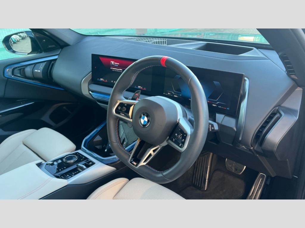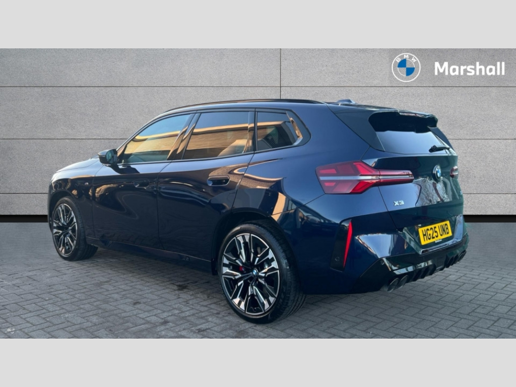 BMW X3 xDrive M50 5dr Auto Active guard professional, Attentiveness assist, Automatic operation of tailgate, BMW ConnectedDrive online services, BMW iDrive, BMW Live cockpit plus, BMW Online services, BMW Teleservices, Brake pad wear indicator, Condition based service, Cruise control with brake function + speed limiter, Drive off assistant, Driving Assistant Plus Preparation, Flat tyre monitor, Language version English, My Mode - Personal, Efficient, Sport, Relax, Expressive, Reversing assist camera, Servotronic system, Variable sport steering, Dynamic stability control, Multiple control arm rear axle, Steptronic transmission with gearshift paddles, Two-joint strut-type front axle with tension strut, DAB tuner, Personal eSim, 4 tailpipe tips, Adaptive LED Headlights, B-pillar trim panel in black high-gloss, BMW badge on front and rear, BMW M-specific front/rear bumpers and side sills, BMW M-specific radiator grille with horizontal bars in Dark Silver and M logo, Body colour mirror caps, Daytime running lights, Door handles flush to the surface with lock barrel on driver's side, Dynamic brake lights, Electric adjustable and heated door mirrors, Electric window trap release and convenient opening/closing feature, Headlight beam throw control, Heated rear window, Heated windscreen washer jets, High beam assistant, LED 3rd brake light, LED rear lights, LED tail lights, LED turning indicators, Locking of the doors, M-specific Exterior mirrors, Mirror base and mirror blade in satinised aluminium, Mirror triangle in black high-gloss, Model inscription on right tailgate, Rain sensor with automatic headlight activation, Rear side wing doors, Rear wiper, Reversing light, Side window frame in black high-gloss, Sun protection glass, Windscreen wipers, 12v power socket in front centre console and luggage compartment, 2 x USB Type C ports for charging and data transmission (front centre console) and 2 x USB Type C ports for charging (rear centre console), 3 rear headrests, 3 seat bench in 2nd row, 3 zone automatic air conditioning, 40:20:40 split folding rear seat with loading system, Ambient lighting, Anthracite headlining, Electric adjustable seats with memory function, Floor mats in velour, Footrest and pedals in black plastic, Four grab handles integrated in roof lining, Front armrest with integrated control panel, Front centre console trim in black high-gloss, Front head restraints, Front passenger seat, Front sports seats, Glove compartment, i-Size / ISOFIX attachment points on both outer rear seats, with covers in black, Interior door handles in dark chrome, Luggage compartment separating net, M sport leather steering wheel, Multifunction steering wheel, Rear side armrests integrated into door trim, Selector lever with toggle operation, Steering column adjustment, Sun visors with illuminated vanity mirrors, Three upper retaining strap clips integrated into the rear panels of the seat backrests, Through loading system, Two front cupholders and two in the rear center armrest, Wireless charging tray, BMW Iconic Glow exterior package - X3, Connected pro package - X3, Interior and exterior mirror package - X3, M Sport pro pack - X3, 3 point seatbelts, Airbag deployment is controlled with respect to the intensity and scope, Anti-lock braking system (ABS), Automatic hold function, BMW emergency call, Brake assist, Brake drying, Brake energy regeneration, Braking readiness, Central airbag, Child locks on rear doors, Cornering brake control (CBC), Crash Sensor - activation of central locking release, hazard warning light and interior lighting, Driver and front passenger front and side airbags, Dynamic brake control, Electromechanical parking brake, Front and rear disc brakes, Head airbags, Integrated braking system, M sport seatbelt, Post Crash Collision Warning with braking function, Trailer stability control, Tyre pressure sensor, Warning triangle, Alarm system, Closing system with central locking, Comfort access system with BMW digital key plus, Locking wheel bolts, Start/stop button with keyless motor start with acoustic drive, Tyre repair kit plus