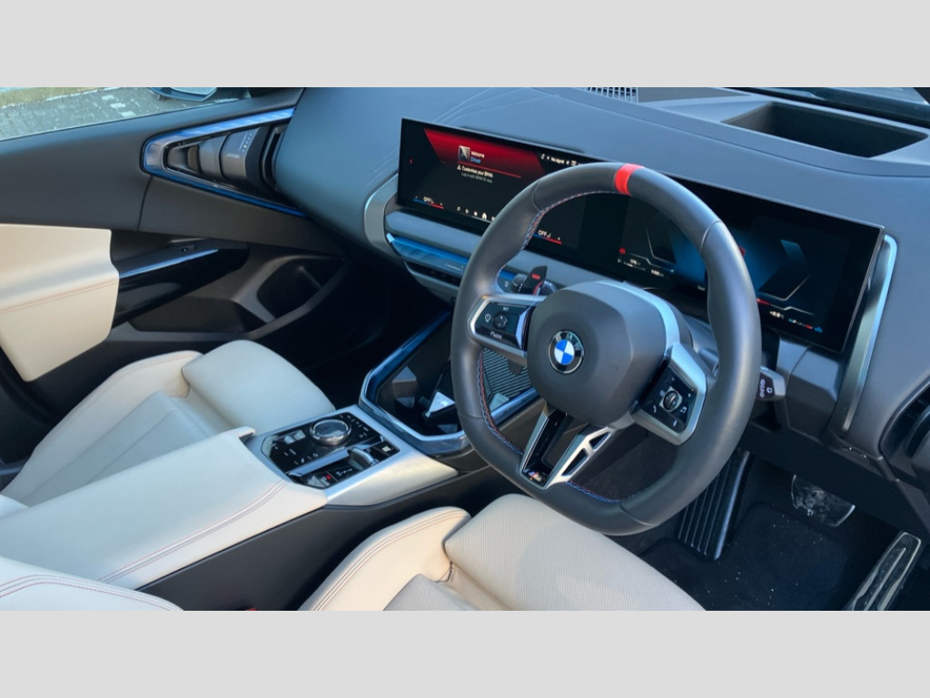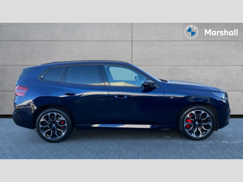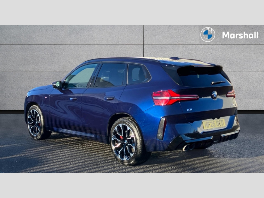 BMW X3 xDrive M50 5dr Auto Active guard professional, Attentiveness assist, Automatic operation of tailgate, BMW ConnectedDrive online services, BMW iDrive, BMW Live cockpit plus, BMW Online services, BMW Teleservices, Brake pad wear indicator, Condition based service, Cruise control with brake function + speed limiter, Drive off assistant, Driving Assistant Plus Preparation, Flat tyre monitor, Language version English, My Mode - Personal, Efficient, Sport, Relax, Expressive, Reversing assist camera, Servotronic system, Variable sport steering, Dynamic stability control, Multiple control arm rear axle, Steptronic transmission with gearshift paddles, Two-joint strut-type front axle with tension strut, DAB tuner, Personal eSim, 4 tailpipe tips, Adaptive LED Headlights, B-pillar trim panel in black high-gloss, BMW badge on front and rear, BMW M-specific front/rear bumpers and side sills, BMW M-specific radiator grille with horizontal bars in Dark Silver and M logo, Body colour mirror caps, Daytime running lights, Door handles flush to the surface with lock barrel on driver's side, Dynamic brake lights, Electric adjustable and heated door mirrors, Electric window trap release and convenient opening/closing feature, Headlight beam throw control, Heated rear window, Heated windscreen washer jets, High beam assistant, LED 3rd brake light, LED rear lights, LED tail lights, LED turning indicators, Locking of the doors, M-specific Exterior mirrors, Mirror base and mirror blade in satinised aluminium, Mirror triangle in black high-gloss, Model inscription on right tailgate, Rain sensor with automatic headlight activation, Rear side wing doors, Rear wiper, Reversing light, Side window frame in black high-gloss, Sun protection glass, Windscreen wipers, 12v power socket in front centre console and luggage compartment, 2 x USB Type C ports for charging and data transmission (front centre console) and 2 x USB Type C ports for charging (rear centre console), 3 rear headrests, 3 seat bench in 2nd row, 3 zone automatic air conditioning, 40:20:40 split folding rear seat with loading system, Ambient lighting, Anthracite headlining, Electric adjustable seats with memory function, Floor mats in velour, Footrest and pedals in black plastic, Four grab handles integrated in roof lining, Front armrest with integrated control panel, Front centre console trim in black high-gloss, Front head restraints, Front passenger seat, Front sports seats, Glove compartment, i-Size / ISOFIX attachment points on both outer rear seats, with covers in black, Interior door handles in dark chrome, Luggage compartment separating net, M sport leather steering wheel, Multifunction steering wheel, Rear side armrests integrated into door trim, Selector lever with toggle operation, Steering column adjustment, Sun visors with illuminated vanity mirrors, Three upper retaining strap clips integrated into the rear panels of the seat backrests, Through loading system, Two front cupholders and two in the rear center armrest, Wireless charging tray, BMW Iconic Glow exterior package - X3, Connected pro package - X3, Interior and exterior mirror package - X3, M Sport pro pack - X3, 3 point seatbelts, Airbag deployment is controlled with respect to the intensity and scope, Anti-lock braking system (ABS), Automatic hold function, BMW emergency call, Brake assist, Brake drying, Brake energy regeneration, Braking readiness, Central airbag, Child locks on rear doors, Cornering brake control (CBC), Crash Sensor - activation of central locking release, hazard warning light and interior lighting, Driver and front passenger front and side airbags, Dynamic brake control, Electromechanical parking brake, Front and rear disc brakes, Head airbags, Integrated braking system, M sport seatbelt, Post Crash Collision Warning with braking function, Trailer stability control, Tyre pressure sensor, Warning triangle, Alarm system, Closing system with central locking, Comfort access system with BMW digital key plus, Locking wheel bolts, Start/stop button with keyless motor start with acoustic drive, Tyre repair kit plus