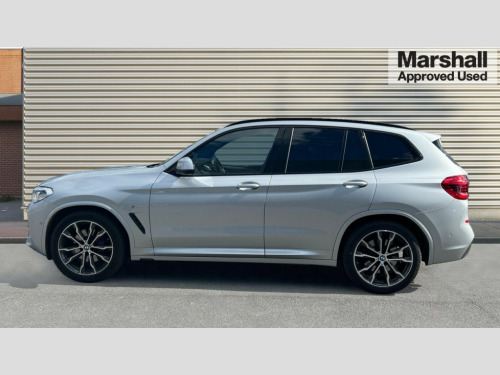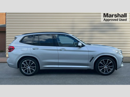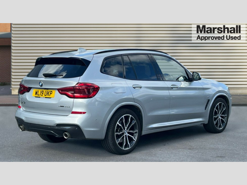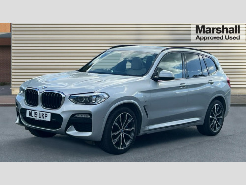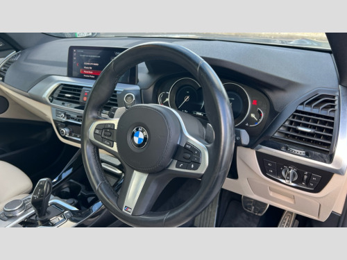 BMW X3 xDrive20d M Sport 5dr Step Auto Active Guard incl speed limiting and lane departure functions with auto steering, and front collision warning with brake intervention, Attentiveness assist, Automatic tailgate operation, BMW Live Cockpit Professional sat nav system including 10.25" high resolution display and Intelligent Voice Assistant, BMW Online services, BMW Teleservices, Brake pad wear indicator in front and rear, Check Control warning system for monitoring of lights and door/luggage compartment open warning, Control display - 6.5" colour display screen, Electric Power Steering (EPS) with Servotronic, Front/rear Parking distance control, iDrive Controller with 8 favourite buttons, Lights on warning by audio warning signal when ignition is switched off, Navigation system - BMW Professional multimedia with Hard disc drive (HDD) and 10.25" touch display, Oil sensor for level and grade, warning by check control system, On board computer - average speed+fuel consumption, service interval, clock/date, odometer/trip meter, outside temperature display and ice warning, Optimum shift indicator, Personal Profile - automatic lock when driving away selectable, Real time traffic information, Semi digital instrument cluster, Stop/start system, Automatic transmission with gearshift paddles, Diesel particulate filter, Incorrect fuelling protection, Larger capacity fuel tank, Multi-link rear suspension, Performance Control, Auxiliary socket for external MP3 player, BMW professional radio/CD/MP3, DAB Digital radio, Acoustic glazing, Black finish on B pillars, Body colour door handles, Body colour electric adjust heated aspherical door mirrors, Body colour roof mouldings, Body coloured bumpers, Chrome kidney grille with high gloss black vertical slats, Direction indicator, side repeaters, integrated in exterior mirrors, Dual chrome exhaust, Dynamic brake lights, Exterior mirrors - electrically folding with anti-dazzle, Fingertip control / anti-trap function on electric window, Follow me home headlights, Front and rear bumper system with replaceable deformation elements, Front and rear electric windows, Green tinted heat insulating glass, Heated windscreen washer jets, Height adjustable headlamps, High gloss black door sill finishers, High gloss black shadow line roof rails, High gloss shadowline exterior trim in decorative moulding side frame/recess cover/guide rail/B, C pillars/mirror frame and triangle with mirror base, High level 3rd brake light incorporating LED Technology, Interior rear view electrochromatic mirror with automatic anti dazzle function, LED front fog lights, LED tail lights, Lightweight engineering, M aerodynamic bodystyling, Model designation, Rain sensor including auto headlights activation, Rear wiper, Shark fin antenna, Visible VIN plate, Welcome lighting, Windscreen wipers with adjustable interval, 12V socket in centre console and luggage area, 3 rear headrests, 3 zone automatic air conditioning, 4 lashing points to secure luggage, Ambient lighting, Anthracite headlining, Anthracite Velour floor mats, Driver/passenger sunvisors with ticket holders + illuminated vanity mirrors, Foldable boot floor with storage compartment, Four grab handles integrated in roof lining, Front and rear bottle holders integrated into door trim storage compartments, Front and rear side armrests integrated into door trim, Front centre armrest with storage compartment, Front footwell lights, Front sports seats, Front/rear courtesy lights with soft on/off dimming, Front/rear reading lights, Height adjustable front/rear head restraints, Isofix rear child seat preparation, Leather gear knob, Luggage area underfloor compartment, Luggage compartment lighting, M Sport multifunction leather steering wheel, Parcel shelf removeable and storable under boot floor, Reach and rake adjustable steering column, Rear centre armrest with 2 cupholders, Rear seat centre armrest with two cupholders, Removable / retractable luggage cover, Slope adjustable rear seats, Storage compartment in rear centre console and front/rear door trims, Through loading system with 40/20/40 split folding rear seat, Toolkit located in luggage compartment, Two front cupholders with removable oddments tray/lid, Vernasca leather upholstery, Connected pack professional - X3, ABS/EBD, ADB - Automatic Differential Brake, Automatic Stability Control (ASC), Battery safety cut-off, BMW emergency call, Brake assist, Brake assist function, Brake drying, Brake energy regeneration, Braking pre-tensioning, Child locks on rear doors, Cornering brake control (CBC), Crash Sensor - activation of central locking release, hazard warning light and interior lighting, Deactivation of fuel pump in the event of a crash, Driver and front passenger front and side airbags with passenger deactivation and ITS front and rear head airbags, DSC+, Dynamic brake control, Dynamic Traction Control - DTC, Electromechanical parking brake, Front seat belts warning, Hill descent control, Hill start assist, Seatbelt security check for front seats, Side impact protection, Three point seatbelts to all seats with front and outer rear pyrotechnic belt tensioners and seat belt force limiters, Two tone horn, Tyre pressure monitoring system, Ventilated front and rear disc brakes, Warning triangle and first aid kit, Central locking switch for all doors, fuel filler cap and luggage compartment, Electronic engine immobiliser, Locking wheel nuts, Remote control including two integrated key - one button for open/close all lockable content, windows and separate button for open luggage compartment, Remote control Thatcham category 1 alarm, Start/stop button with Comfort Go keyless engine start and auto Start/stop deactivation button, Low rolling resistance tyres