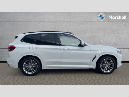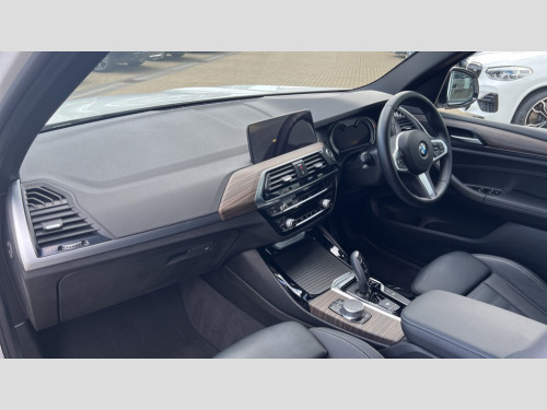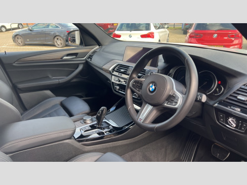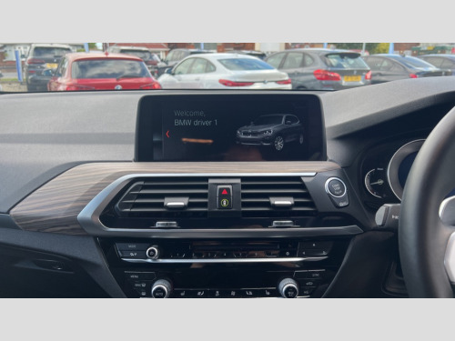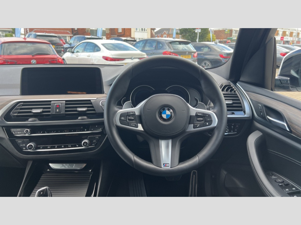 BMW X3 xDrive20d M Sport 5dr Step Auto Acoustic ice warning, Active Guard incl speed limiting and lane departure functions with auto steering, and front collision warning with brake intervention, Attentiveness assist, Automatic tailgate operation, BMW Online services, BMW remote services, BMW Teleservices, Brake pad wear indicator in front and rear, Check Control warning system for monitoring of lights and door/luggage compartment open warning, Digital clock with date indicator, Digital odometer/trip meter, Door/boot open warning light, Exterior temperature gauge, Front/rear Parking distance control, Fuel gauge, iDrive Controller and Display w/6.5" monitor, Lights on warning, Navigation system - BMW Professional multimedia, Oil sensor for level and grade, Oil temperature gauge, On board computer, Optimum shift indicator, Personal Profile, Real time traffic information, Service interval indicator, Speedometer, Stop/start system, Tachometer, Diesel particulate filter, Drive Performance Control, Incorrect fuelling protection, Larger capacity fuel tank, Multi-link rear suspension, Performance Control, Auxiliary socket for external MP3 player, BMW professional radio/CD/MP3, DAB Digital radio, Auto dimming rear view mirror, Black finish on B pillars, Body colour door handles, Body colour electric adjust heated aspherical door mirrors, Body colour roof mouldings, Body coloured bumpers, Chrome kidney grille with high gloss black vertical slats, Direction indicator, side repeaters, integrated in exterior mirrors, Dual chrome exhaust, Dynamic brake lights, Fingertip control / anti-trap function on electric window, Follow me home headlights, Front and rear bumper system with replaceable deformation elements, Front and rear electric windows, Green tinted heat insulating glass, Heated windscreen washer jets, Height adjustable headlamps, High gloss black door sill finishers, High level 3rd brake light incorporating LED Technology, LED daytime running lights, LED front fog lights, LED Indicators, LED tail lights, Low and high beam headlights in Bi-LED, M aerodynamic bodystyling, Rain sensor including auto headlights activation, Rear wiper, Shark fin antenna, Visible VIN plate, Welcome lighting, Windscreen wipers with adjustable interval, 12V socket in centre console and luggage area, 3 rear headrests, 3 zone climate control, 4 grab handles, 4 lashing points to secure luggage, Ambient lighting, Anthracite headlining, Anthracite Velour floor mats, Centre console storage tray, Driver/passenger sunvisors with ticket holders + illuminated vanity mirrors, Foldable boot floor with storage compartment, Front and rear door armrests, Front centre armrest with storage compartment, Front cupholders x 2, Front door pocket bottle holders, Front footwell lights, Front/rear courtesy lights with soft on/off dimming, Front/rear reading lights, Gearshift paddles, Heated front seats, Height adjustable front/rear head restraints, Illuminated glovebox with lock, Isofix rear child seat preparation, Leather gear knob, Luggage area underfloor compartment, Luggage compartment lighting, M Sport multifunction leather steering wheel, Rake/reach adjustable steering wheel, Rear centre armrest with 2 cupholders + storage, Rear door pockets with bottle holders, Removable / retractable luggage cover, Removable rear parcel shelf, Slope adjustable rear seats, Through loading system with 40/20/40 split folding rear seat, Toolkit located in luggage compartment, Vernasca leather upholstery, 3 rear 3 point seatbelts, ABS/EBD, ADB - Automatic Differential Brake, Automatic Stability Control (ASC), Battery safety cut-off, BMW emergency call, Brake drying, Brake energy regeneration, Braking pre-tensioning, Child locks on rear doors, Cornering brake control (CBC), Crash Sensor - activates hazard/interior lighting + unlocks doors, Deactivation of fuel pump in the event of a crash, Driver and front passenger front and side airbags with passenger deactivation and ITS front and rear head airbags, DSC+, Dynamic brake control, Dynamic Traction Control - DTC, Electromechanical parking brake, Front and rear pre-tensioning and force limiting seatbelts, Front seat belts warning, Front seatbelt force limiters, Hill descent control, Hill start assist, Pyrotechnically pre-tensioned front seatbelts, Pyrotechnically pre-tensioned rear seatbelts, Seatbelt security check for front seats, Side impact protection, Two tone horn, Tyre pressure monitoring system, Ventilated front and rear disc brakes, Warning triangle and first aid kit, Central locking switch for all doors, fuel filler cap and luggage compartment, Electronic engine immobiliser, Locking wheel nuts, Remote control including integrated key, Remote control Thatcham category 1 alarm, Start/stop button with Comfort Go keyless engine start and auto Start/stop deactivation button, Low rolling resistance tyres