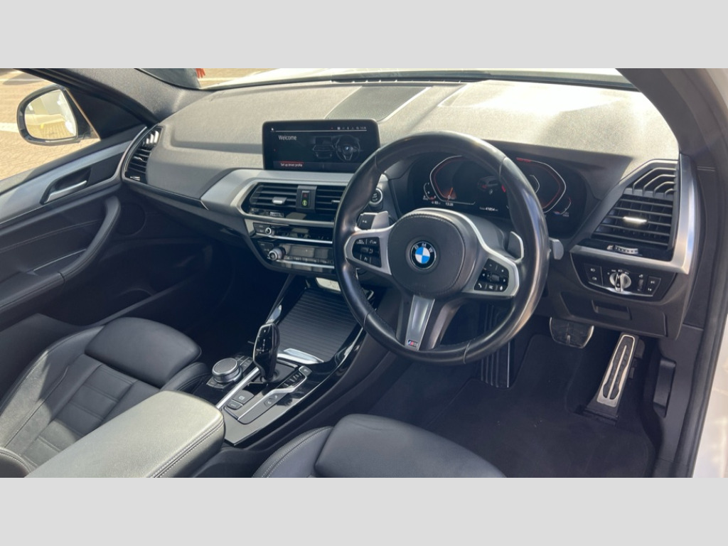 As part of the Marshall Approved Used programme, this vehicle has undergone a multi-point workshop inspection by our fully trained technicians, along with HPI and mileage verification. A minimum 6-month MOT certificate is also supplied. Attentiveness assist, Automatic tailgate operation, Bluetooth hands free telephone connection with USB audio interface + audio streaming, BMW Live Cockpit Professional sat nav system including 10.25" high resolution display and Intelligent Voice Assistant, BMW Online services, BMW Teleservices, Brake pad wear indicator in front and rear, Check Control warning system for monitoring of lights and door/luggage compartment open warning, Control display - 6.5" colour display screen, Electric Power Steering (EPS) with Servotronic, iDrive Controller with 8 favourite buttons, Lights on warning by audio warning signal when ignition is switched off, Navigation system - BMW Professional multimedia with Hard disc drive (HDD) and 10.25" touch display, Oil sensor for level and grade, warning by check control system, On board computer - average speed+fuel consumption, service interval, clock/date, odometer/trip meter, outside temperature display and ice warning, Optimum shift indicator, Personal Profile - automatic lock when driving away selectable, Semi digital instrument cluster, Stop/start system, Automatic transmission with gearshift paddles, Diesel particulate filter, Drive performance control with ECO PRO comfort + sport mode, Incorrect fuelling protection, Larger capacity fuel tank, M sport suspension, Multi-link rear suspension, Performance Control, 6 speakers, Auxiliary socket for external MP3 player, BMW professional radio/CD/MP3, DAB Digital radio, Acoustic glazing, Black finish on B pillars, Body colour door handles, Body colour electric adjust heated aspherical door mirrors, Body colour roof mouldings, Body coloured bumpers, Chrome kidney grille with high gloss black vertical slats, Direction indicator, side repeaters, integrated in exterior mirrors, Dual chrome exhaust, Dynamic brake lights, Exterior mirrors - electrically folding with anti-dazzle, Fingertip control / anti-trap function on electric window, Follow me home headlights, Front and rear bumper system with replaceable deformation elements, Front and rear electric windows, Green tinted heat insulating glass, Heated windscreen washer jets, Height adjustable headlamps, High gloss black door sill finishers, High gloss black shadow line roof rails, High gloss shadowline exterior trim in decorative moulding side frame/recess cover/guide rail/B, C pillars/mirror frame and triangle with mirror base, High level 3rd brake light incorporating LED Technology, Interior rear view electrochromatic mirror with automatic anti dazzle function, LED front fog lights, LED tail lights, Lightweight engineering, M aerodynamic bodystyling, Model designation, Rain sensor including auto headlights activation, Rear wiper, Shark fin antenna, Side exterior M designation badges, Visible VIN plate, Welcome lighting, Windscreen wipers with adjustable interval, 12V socket in centre console and luggage area, 3 rear headrests, 3 zone automatic air conditioning, 4 lashing points to secure luggage, Ambient lighting, Anthracite headlining, Anthracite Velour floor mats, Door sill finishers with BMW Individual designation, Driver/passenger sunvisors with ticket holders + illuminated vanity mirrors, Foldable boot floor with storage compartment, Four grab handles integrated in roof lining, Front and rear bottle holders integrated into door trim storage compartments, Front and rear side armrests integrated into door trim, Front centre armrest with storage compartment, Front footwell lights, Front sports seats, Front/rear courtesy lights with soft on/off dimming, Front/rear reading lights, Height adjustable front/rear head restraints, Illuminated glovebox with lock, Isofix rear child seat preparation, Leather gear knob, Luggage area underfloor compartment, Luggage compartment lighting, M sport leather steering wheel, Parcel shelf removeable and storable under boot floor, Reach and rake adjustable steering column, Rear centre armrest with 2 cupholders, Removable / retractable luggage cover, Slope adjustable rear seats, Storage compartment in rear centre console and front/rear door trims, Through loading system with 40/20/40 split folding rear seat, Toolkit located in luggage compartment, Two front cupholders with removable oddments tray/lid, Vernasca leather upholstery, Connected pack professional - X3, ABS/EBD, ADB - Automatic Differential Brake, Automatic Stability Control (ASC), Battery safety cut-off, BMW emergency call, Brake assist, Brake drying, Brake energy regeneration, Braking pre-tensioning, Child locks on rear doors, Cornering brake control (CBC), Crash Sensor - activation of central locking release, hazard warning light and interior lighting, Deactivation of fuel pump in the event of a crash, Driver and front passenger front and side airbags with passenger deactivation and ITS front and rear head airbags, DSC+, Dynamic brake control, Dynamic Traction Control - DTC, Electromechanical parking brake, Front seat belts warning, Hill descent control, Hill start assist, Seatbelt security check for front seats, Side impact protection, Three point seatbelts to all seats with front and outer rear pyrotechnic belt tensioners and seat belt force limiters, Two tone horn, Tyre pressure monitoring system, Ventilated front and rear disc brakes, Warning triangle and first aid kit, Central locking switch for all doors, fuel filler cap and luggage compartment, Electronic engine immobiliser, Locking wheel nuts, Remote control including two integrated key - one button for open/close all lockable content, windows and separate button for open luggage compartment, Remote control Thatcham category 1 alarm, Start/stop button with Comfort Go keyless engine start and auto Start/stop deactivation button, Low rolling resistance tyres