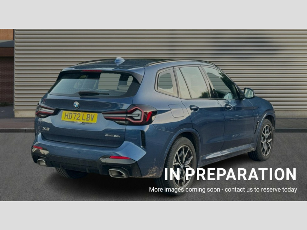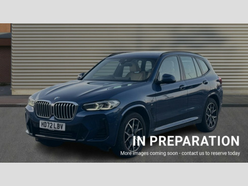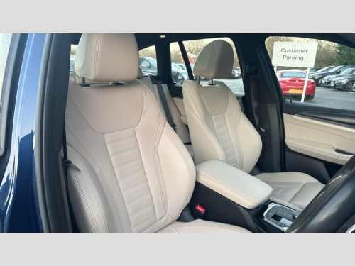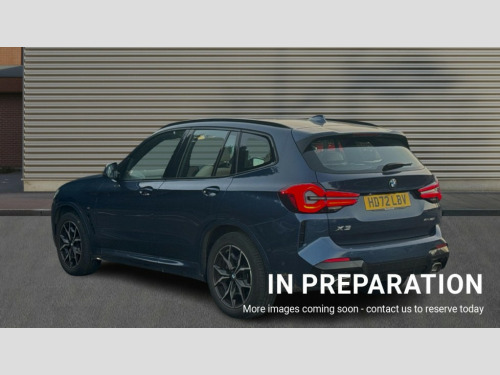 BMW X3 xDrive20i MHT M Sport 5dr Step Auto Active Guard incl speed limiting and lane departure functions with auto steering, and front collision warning with brake intervention, Attentiveness assist, Automatic tailgate operation, BMW Live Cockpit Professional sat nav system including 10.25" high resolution display and Intelligent Voice Assistant, BMW Online services, BMW Teleservices, Brake pad wear indicator in front and rear, Check Control warning system for monitoring of lights and door/luggage compartment open warning, Control display - 6.5" colour display screen, Electric Power Steering (EPS) with Servotronic, iDrive Controller with 8 favourite buttons, Lights on warning by audio warning signal when ignition is switched off, Navigation system - BMW Professional multimedia with Hard disc drive (HDD) and 10.25" touch display, Oil sensor for level and grade, warning by check control system, On board computer - average speed+fuel consumption, service interval, clock/date, odometer/trip meter, outside temperature display and ice warning, Optimum shift indicator, Personal Profile - automatic lock when driving away selectable, Real time traffic information, Semi digital instrument cluster, Stop/start system, Automatic transmission with gearshift paddles, Incorrect fuelling protection, M sport suspension, Multi-link rear suspension, Performance Control, Auxiliary socket for external MP3 player, BMW professional radio/CD/MP3, DAB Digital radio, Acoustic glazing, Black finish on B pillars, Body colour door handles, Body colour electric adjust heated aspherical door mirrors, Body colour roof mouldings, Body coloured bumpers, Chrome kidney grille with high gloss black vertical slats, Direction indicator, side repeaters, integrated in exterior mirrors, Dual chrome exhaust, Dynamic brake lights, Exterior mirrors - electrically folding with anti-dazzle, Fingertip control / anti-trap function on electric window, Follow me home headlights, Front and rear bumper system with replaceable deformation elements, Front and rear electric windows, Green tinted heat insulating glass, Heated windscreen washer jets, Height adjustable headlamps, High gloss black door sill finishers, High gloss black shadow line roof rails, High gloss shadowline exterior trim in decorative moulding side frame/recess cover/guide rail/B, C pillars/mirror frame and triangle with mirror base, High level 3rd brake light incorporating LED Technology, Interior rear view electrochromatic mirror with automatic anti dazzle function, LED front fog lights, LED tail lights, Lightweight engineering, M aerodynamic bodystyling, Model designation, Rain sensor including auto headlights activation, Rear wiper, Shark fin antenna, Trim designation deletion on side, Visible VIN plate, Welcome lighting, Windscreen wipers with adjustable interval, 12V socket in centre console and luggage area, 3 rear headrests, 3 zone automatic air conditioning, 4 lashing points to secure luggage, Ambient lighting, Anthracite headlining, Anthracite Velour floor mats, Driver/passenger sunvisors with ticket holders + illuminated vanity mirrors, Foldable boot floor with storage compartment, Four grab handles integrated in roof lining, Front and rear bottle holders integrated into door trim storage compartments, Front and rear side armrests integrated into door trim, Front centre armrest with storage compartment, Front footwell lights, Front sports seats, Front/rear courtesy lights with soft on/off dimming, Front/rear reading lights, Height adjustable front/rear head restraints, Isofix rear child seat preparation, Leather gear knob, Luggage area underfloor compartment, Luggage compartment lighting, M leather steering wheel, Parcel shelf removeable and storable under boot floor, Reach and rake adjustable steering column, Rear centre armrest with 2 cupholders, Removable / retractable luggage cover, Slope adjustable rear seats, Storage compartment in rear centre console and front/rear door trims, Through loading system with 40/20/40 split folding rear seat, Toolkit located in luggage compartment, Two front cupholders with removable oddments tray/lid, Vernasca leather upholstery, Connected pack professional - X3, ABS/EBD, ADB - Automatic Differential Brake, Automatic Stability Control (ASC), Battery safety cut-off, BMW emergency call, Brake assist, Brake drying, Brake energy regeneration, Braking pre-tensioning, Child locks on rear doors, Cornering brake control (CBC), Crash Sensor - activation of central locking release, hazard warning light and interior lighting, Deactivation of fuel pump in the event of a crash, Driver and front passenger front and side airbags with passenger deactivation and ITS front and rear head airbags, DSC+, Dynamic brake control, Dynamic Traction Control - DTC, Electromechanical parking brake, Front seat belts warning, Hill descent control, Hill start assist, Seatbelt security check for front seats, Side impact protection, Three point seatbelts to all seats with front and outer rear pyrotechnic belt tensioners and seat belt force limiters, Two tone horn, Tyre pressure monitoring system, Ventilated front and rear disc brakes, Warning triangle and first aid kit, Central locking switch for all doors, fuel filler cap and luggage compartment, Electronic engine immobiliser, Locking wheel nuts, Remote control including two integrated key - one button for open/close all lockable content, windows and separate button for open luggage compartment, Remote control Thatcham category 1 alarm, Start/stop button with Comfort Go keyless engine start and auto Start/stop deactivation button, Low rolling resistance tyres
