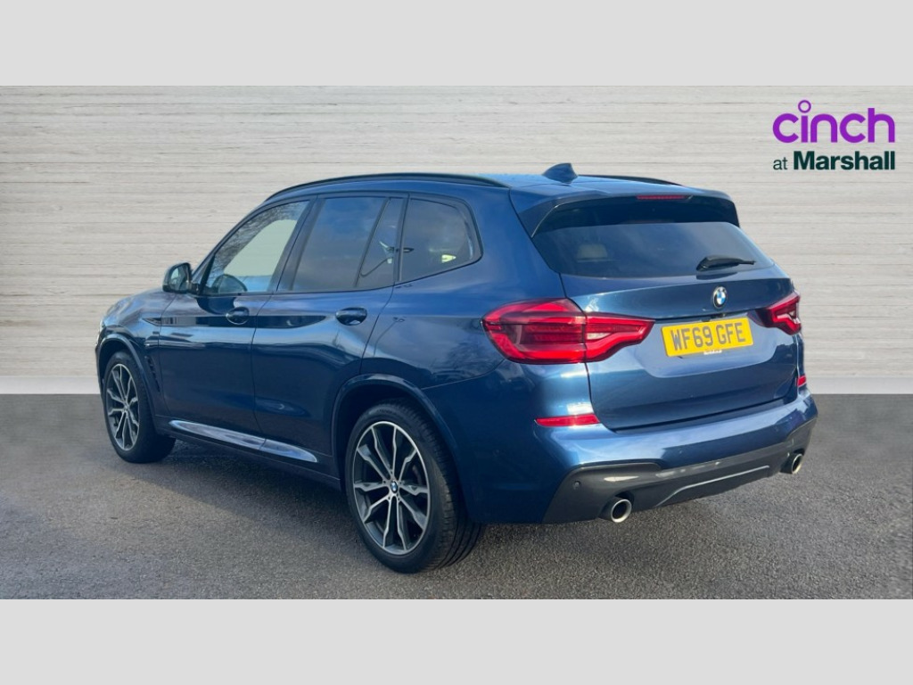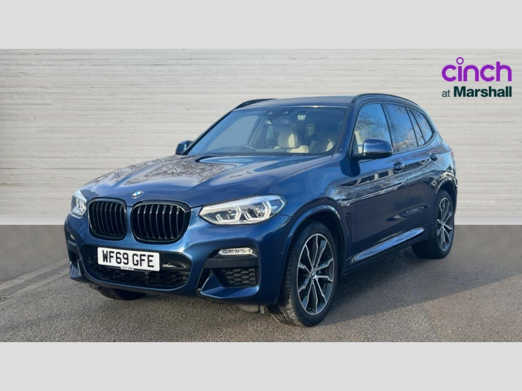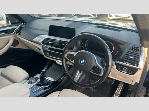 BMW X3 xDrive20i M Sport 5dr Step Auto Active Guard incl speed limiting and lane departure functions with auto steering, and front collision warning with brake intervention, Attentiveness assist, Automatic tailgate operation, BMW Live Cockpit Professional sat nav system including 10.25" high resolution display and Intelligent Voice Assistant, BMW Online services, BMW Teleservices, Brake pad wear indicator in front and rear, Check Control warning system for monitoring of lights and door/luggage compartment open warning, Control display - 6.5" colour display screen, Electric Power Steering (EPS) with Servotronic, Front/rear Parking distance control, iDrive Controller with 8 favourite buttons, Lights on warning by audio warning signal when ignition is switched off, Navigation system - BMW Professional multimedia with Hard disc drive (HDD) and 10.25" touch display, Oil sensor for level and grade, warning by check control system, On board computer - average speed+fuel consumption, service interval, clock/date, odometer/trip meter, outside temperature display and ice warning, Optimum shift indicator, Personal Profile - automatic lock when driving away selectable, Real time traffic information, Semi digital instrument cluster, Stop/start system, Automatic transmission with gearshift paddles, Incorrect fuelling protection, Multi-link rear suspension, Performance Control, Auxiliary socket for external MP3 player, BMW professional radio/CD/MP3, DAB Digital radio, Acoustic glazing, Black finish on B pillars, Body colour door handles, Body colour electric adjust heated aspherical door mirrors, Body colour roof mouldings, Body coloured bumpers, Chrome kidney grille with high gloss black vertical slats, Direction indicator, side repeaters, integrated in exterior mirrors, Dual chrome exhaust, Dynamic brake lights, Exterior mirrors - electrically folding with anti-dazzle, Fingertip control / anti-trap function on electric window, Follow me home headlights, Front and rear bumper system with replaceable deformation elements, Front and rear electric windows, Green tinted heat insulating glass, Heated windscreen washer jets, Height adjustable headlamps, High gloss black door sill finishers, High gloss black shadow line roof rails, High gloss shadowline exterior trim in decorative moulding side frame/recess cover/guide rail/B, C pillars/mirror frame and triangle with mirror base, High level 3rd brake light incorporating LED Technology, Interior rear view electrochromatic mirror with automatic anti dazzle function, LED front fog lights, LED tail lights, Lightweight engineering, M aerodynamic bodystyling, Model designation, Rain sensor including auto headlights activation, Rear wiper, Shark fin antenna, Visible VIN plate, Welcome lighting, Windscreen wipers with adjustable interval, 12V socket in centre console and luggage area, 3 rear headrests, 3 zone automatic air conditioning, 4 lashing points to secure luggage, Ambient lighting, Anthracite headlining, Anthracite Velour floor mats, Driver/passenger sunvisors with ticket holders + illuminated vanity mirrors, Foldable boot floor with storage compartment, Four grab handles integrated in roof lining, Front and rear bottle holders integrated into door trim storage compartments, Front and rear side armrests integrated into door trim, Front centre armrest with storage compartment, Front footwell lights, Front sports seats, Front/rear courtesy lights with soft on/off dimming, Front/rear reading lights, Height adjustable front/rear head restraints, Isofix rear child seat preparation, Leather gear knob, Luggage area underfloor compartment, Luggage compartment lighting, M Sport multifunction leather steering wheel, Parcel shelf removeable and storable under boot floor, Reach and rake adjustable steering column, Rear centre armrest with 2 cupholders, Rear seat centre armrest with two cupholders, Removable / retractable luggage cover, Slope adjustable rear seats, Storage compartment in rear centre console and front/rear door trims, Through loading system with 40/20/40 split folding rear seat, Toolkit located in luggage compartment, Two front cupholders with removable oddments tray/lid, Vernasca leather upholstery, Connected pack professional - X3, ABS/EBD, ADB - Automatic Differential Brake, Automatic Stability Control (ASC), Battery safety cut-off, BMW emergency call, Brake assist, Brake assist function, Brake drying, Brake energy regeneration, Braking pre-tensioning, Child locks on rear doors, Cornering brake control (CBC), Crash Sensor - activation of central locking release, hazard warning light and interior lighting, Deactivation of fuel pump in the event of a crash, Driver and front passenger front and side airbags with passenger deactivation and ITS front and rear head airbags, DSC+, Dynamic brake control, Dynamic Traction Control - DTC, Electromechanical parking brake, Front seat belts warning, Hill descent control, Hill start assist, Seatbelt security check for front seats, Side impact protection, Three point seatbelts to all seats with front and outer rear pyrotechnic belt tensioners and seat belt force limiters, Two tone horn, Tyre pressure monitoring system, Ventilated front and rear disc brakes, Warning triangle and first aid kit, Central locking switch for all doors, fuel filler cap and luggage compartment, Electronic engine immobiliser, Locking wheel nuts, Remote control including two integrated key - one button for open/close all lockable content, windows and separate button for open luggage compartment, Remote control Thatcham category 1 alarm, Start/stop button with Comfort Go keyless engine start and auto Start/stop deactivation button, Low rolling resistance tyres