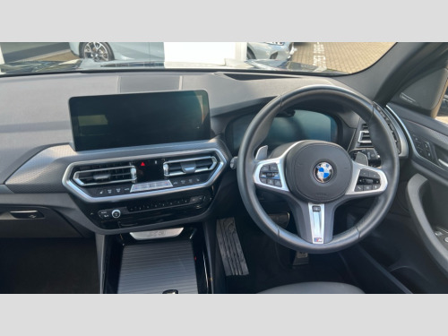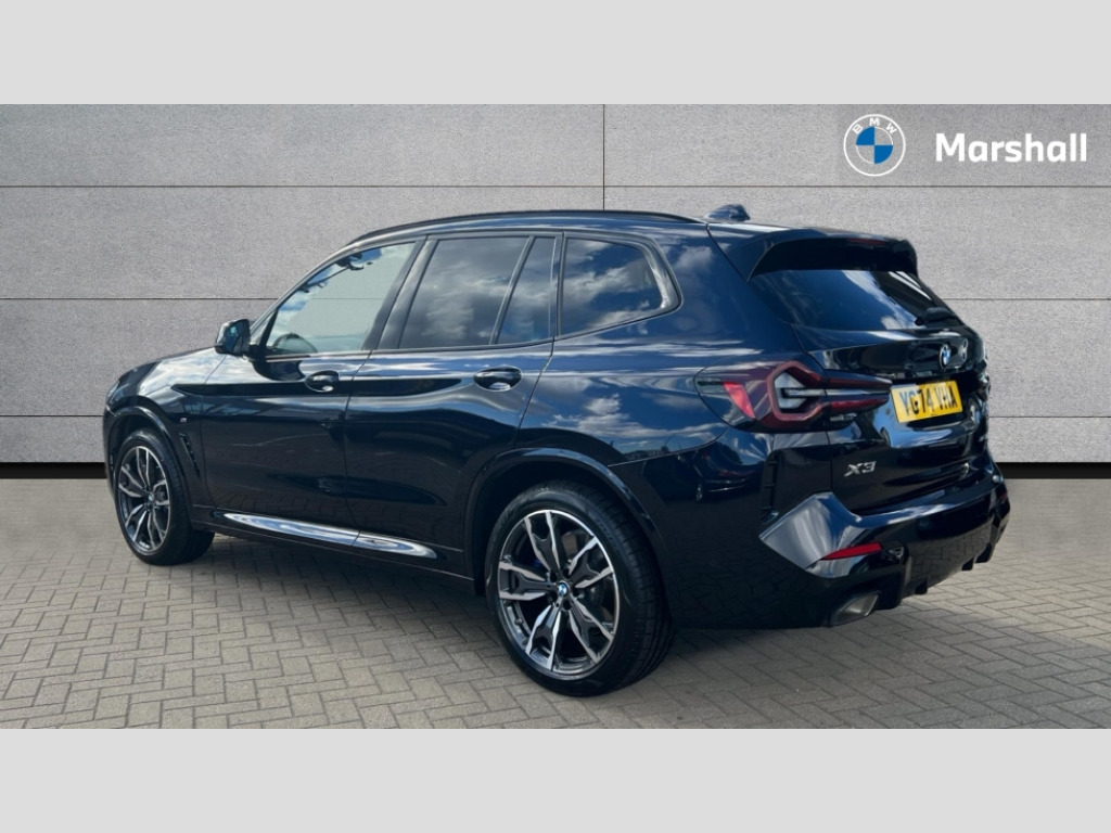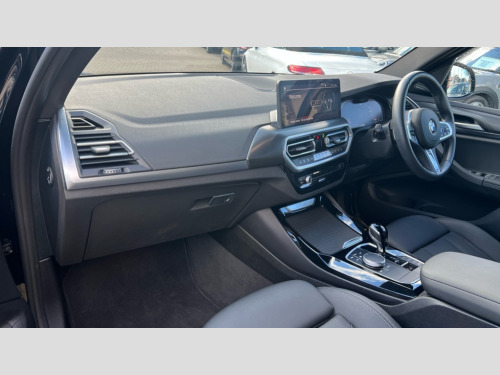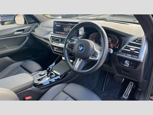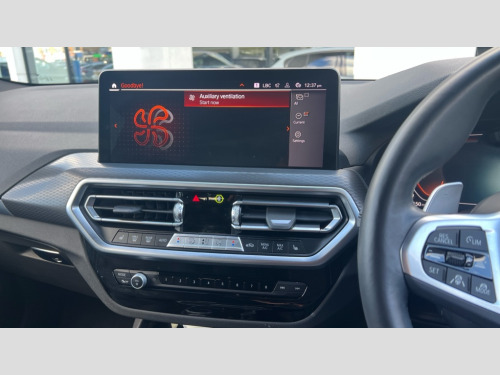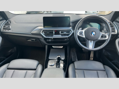BMW X3 xDrive20i MHT M Sport 5dr Step Auto Active Guard, Attentiveness assist, BMW Live Cockpit Professional nav system including 12.3" instrument display + 12.3 high resolution control display, BMW Online services, BMW Teleservices, Brake pad wear indicator in front and rear, Check Control warning system for monitoring of lights and door/luggage compartment open warning, Condition based service - BMW service history, electronic service booklet, integrated owner's handbook, Connected drive services, Electric boot lid, Front/rear Parking distance control, iDrive touch controller with 8 favourite buttons, Instrument cluster with speedometer with mph readout, tachometer, fuel gauge and oil temperature gauge, Lights on warning by audio warning signal when ignition is switched off, Oil sensor for level and grade, warning by check control system, On board computer - average speed+fuel consumption, service interval, clock/date, odometer/trip meter, outside temperature display and ice warning, Optimum shift indicator, Personal Profile - automatic lock when driving away selectable, Run flat indicator, Stop/start system, Variable sports power steering with drive performance control Sport+ mode, Adaptive suspension, Automatic transmission with gearshift paddles, Incorrect fuelling protection, Multi-link rear suspension, BMW professional radio/CD/MP3, DAB tuner, Acoustic glazing, Automatic windscreen wipers and automatic headlight, Black finish on B pillars, BMW individual high gloss shadow line with extended content, Body colour door handles, Body colour electric adjust heated aspherical door mirrors, Body colour roof mouldings, Body coloured bumpers, Direction indicator, side repeaters, integrated in exterior mirrors, Dynamic brake lights, Exhaust tailpipes - dual, round, split left and right with chrome finisher, Fingertip control / anti-trap function on electric window, Folding wing mirrors with auto dimming, Follow me home headlights, Front and rear bumper system with replaceable deformation elements, Front and rear electric windows, Gloss chrome tailpipes finishers, Green tinted heat insulating glass, Heated windscreen washer jets, High beam assistant, High gloss black shadow line roof rails, High gloss shadowline exterior trim in decorative moulding side frame/recess cover/guide rail/B, C pillars/mirror frame and triangle with mirror base, High level 3rd brake light incorporating LED Technology, Interior rear view electrochromatic mirror with automatic anti dazzle function, LED tail lights, Lightweight engineering, M aerodynamic bodystyling, M Sport entry door sill strips, Model designation, Rain sensor, Rear side wing doors, Rear wing door, Rear wiper, Shark fin antenna, Side exterior M designation badges, Visible VIN plate, Welcome lighting, Windscreen wipers with adjustable interval, 12V power point in luggage area, 12V power socket in front centre console, 2 x USB Type C ports for charging and data transmission (front centre console) and 2 x USB Type C ports for charging (rear centre console), 3 rear headrests, 3 seat bench in 2nd row, 3 zone automatic air conditioning, 4 lashing points to secure luggage, 40:20:40 split folding rear seat with loading system, Ambient lighting, Anthracite headlining, Automatic interior light when door is opened/ignition switched off or via remote key, Floor mats in velour, Foldable storage floor with compartment, Four grab handles integrated in roof lining, Front and rear bottle holders integrated into door trim storage compartments, Front and rear side armrests integrated into door trim, Front centre armrest with storage compartment, Front footwell lights, Front head restraints, Front passenger seat, Front sports seats, Front/rear courtesy lights with soft on/off dimming, Front/rear reading lights, Heated front seats, Isofix rear child seat preparation, Leather gear knob, Lockable glove compartment, Luggage area underfloor compartment, Luggage compartment lighting, M sport leather steering wheel, Multifunction steering wheel, Parcel shelf removeable and storable under boot floor, Reach and rake adjustable steering column, Rear centre armrest with 2 cupholders, Removable / retractable luggage cover, Slope adjustable rear seats, Storage compartment in rear centre console and front/rear door trims, Sun visors with vanity mirrors and ticket pocket, Toolkit located in luggage compartment, Two front cupholders with removable oddments tray/lid, Connected pro pack - X3, Active protection, ADB - Automatic Differential Brake, Anti-lock braking system (ABS) with brake assist, Automatic Stability Control (ASC), Battery safety cut-off, BMW emergency call, Brake drying, Brake energy regeneration, Braking pre-tensioning, Child locks on rear doors, Cornering brake control (CBC), Crash Sensor - activation of central locking release, hazard warning light and interior lighting, Deactivation of fuel pump in the event of a crash, Driver and front passenger front and side airbags with passenger deactivation and ITS front and rear head airbags, Driver and front passenger knee airbag, DSC+, Dynamic brake control, Dynamic Traction Control - DTC, Electromechanical parking brake, Hill descent control, Hill start assist, M sport seatbelt, Seatbelt security check for front seats, Side impact protection, Three point seatbelts to all seats with front and outer rear pyrotechnic belt tensioners and seat belt force limiters, Two tone horn, Tyre pressure sensor, Ventilated front and rear disc brakes, Warning triangle and first aid kit, Central locking switch for all doors, fuel filler cap and luggage compartment, Electronic engine immobiliser, Locking wheel nuts, Remote control including two integrated key - one button for open/close all lockable content, windows and separate button for open luggage compartment, Remote control Thatcham category 1 alarm, Start/stop button with Comfort Go keyless engine start and auto Start/stop deactivation button, Low rolling resistance tyres