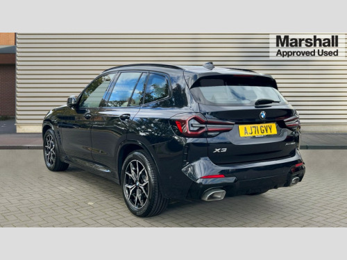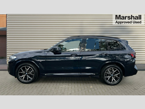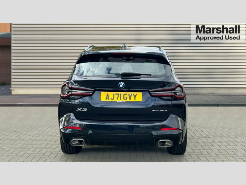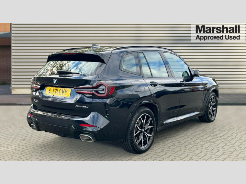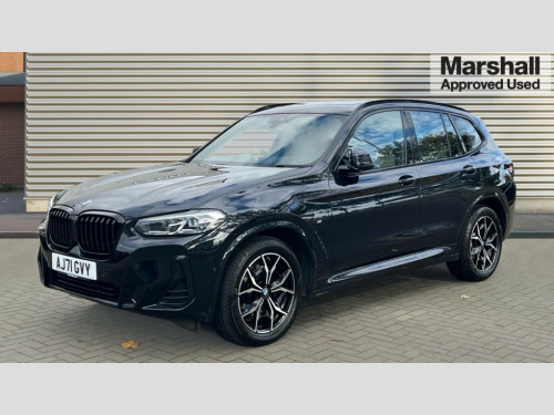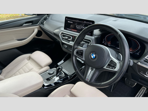 BMW X3 xDrive30d MHT M Sport 5dr Auto Active Guard, Attentiveness assist, BMW Live Cockpit Professional nav system including 12.3" instrument display + 12.3 high resolution control display, BMW Online services, BMW Teleservices, Brake pad wear indicator in front and rear, Check Control warning system for monitoring of lights and door/luggage compartment open warning, Condition based service - BMW service history, electronic service booklet, integrated owner's handbook, Connected drive services, Cruise control with brake function + speed limiter, Electric boot lid, Front/rear Parking distance control, iDrive Controller with 8 favourite buttons, Instrument cluster with speedometer with mph readout, tachometer, fuel gauge and oil temperature gauge, Lights on warning by audio warning signal when ignition is switched off, Oil sensor for level and grade, warning by check control system, On board computer - average speed+fuel consumption, service interval, clock/date, odometer/trip meter, outside temperature display and ice warning, Optimum shift indicator, Personal Profile - automatic lock when driving away selectable, Stop/start system, Variable sports power steering, Diesel particulate filter, Drive performance control with ECO PRO comfort + sport mode, Incorrect fuelling protection, Larger capacity fuel tank, M sport suspension, Multi-link rear suspension, Performance Control, Sport automatic transmission with gearshift paddles, BMW professional radio/CD/MP3, DAB tuner, Acoustic glazing, Automatic windscreen wipers and automatic headlight, Black finish on B pillars, Body colour door handles, Body colour electric adjust heated aspherical door mirrors, Body colour roof mouldings, Body coloured bumpers, Direction indicator, side repeaters, integrated in exterior mirrors, Dynamic brake lights, Exhaust tailpipes - dual, round, split left and right with chrome finisher, Fingertip control / anti-trap function on electric window, Folding wing mirrors with auto dimming, Follow me home headlights, Front and rear bumper system with replaceable deformation elements, Front and rear electric windows, Gloss chrome tailpipes finishers, Green tinted heat insulating glass, Heated windscreen washer jets, High beam assistant, High gloss black shadow line roof rails, High gloss shadowline exterior trim in decorative moulding side frame/recess cover/guide rail/B, C pillars/mirror frame and triangle with mirror base, High level 3rd brake light incorporating LED Technology, Interior rear view electrochromatic mirror with automatic anti dazzle function, LED tail lights, Lightweight engineering, M aerodynamic bodystyling, Model designation, Rear side wing doors, Rear wing door, Rear wiper, Shark fin antenna, Side exterior M designation badges, Visible VIN plate, Welcome lighting, Windscreen wipers with adjustable interval, 12V power socket in front centre console, 3 rear headrests, 3 zone automatic air conditioning, 4 lashing points to secure luggage, 40:20:40 split folding rear seat with loading system, 5 seats, Ambient lighting, Anthracite headlining, Automatic interior light when door is opened/ignition switched off or via remote key, Foldable storage floor with compartment, Four grab handles integrated in roof lining, Front and rear bottle holders integrated into door trim storage compartments, Front and rear side armrests integrated into door trim, Front centre armrest with storage compartment, Front footwell lights, Front head restraints, Front sports seats, Front/rear courtesy lights with soft on/off dimming, Front/rear reading lights, Heated front seats, Isofix rear child seat preparation, Leather gear knob, Luggage area underfloor compartment, Luggage compartment lighting, M sport leather steering wheel, Multifunction steering wheel, Parcel shelf removeable and storable under boot floor, Reach and rake adjustable steering column, Rear centre armrest with 2 cupholders, Removable / retractable luggage cover, Seat backrest width adjustment, Slope adjustable rear seats, Storage compartment in rear centre console and front/rear door trims, Sun visors with vanity mirrors and ticket pocket, Toolkit located in luggage compartment, Two front cupholders with removable oddments tray/lid, Vernasca leather upholstery, Connected pro pack - X3, Driving assistant pack - X3, ADB - Automatic Differential Brake, Anti-lock braking system (ABS) with brake assist, Automatic Stability Control (ASC), Battery safety cut-off, BMW emergency call, Brake drying, Brake energy regeneration, Braking pre-tensioning, Child locks on rear doors, Cornering brake control (CBC), Crash Sensor - activation of central locking release, hazard warning light and interior lighting, Deactivation of fuel pump in the event of a crash, Driver and front passenger front and side airbags with passenger deactivation and ITS front and rear head airbags, DSC+, Dynamic brake control, Dynamic Traction Control - DTC, Electromechanical parking brake, Hill descent control, Hill start assist, Seatbelt security check for front seats, Side impact protection, Three point seatbelts to all seats with front and outer rear pyrotechnic belt tensioners and seat belt force limiters, Two tone horn, Tyre pressure sensor, Ventilated front and rear disc brakes, Warning triangle and first aid kit, Central locking switch for all doors, fuel filler cap and luggage compartment, Electronic engine immobiliser, Locking wheel nuts, Remote control including two integrated key - one button for open/close all lockable content, windows and separate button for open luggage compartment, Remote control Thatcham category 1 alarm, Start/stop button with Comfort Go keyless engine start and auto Start/stop deactivation button, Low rolling resistance tyres