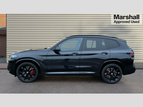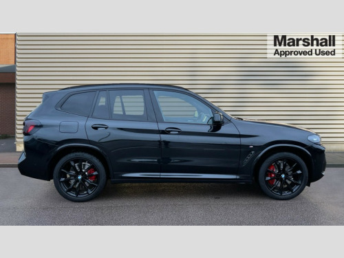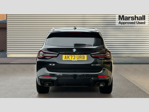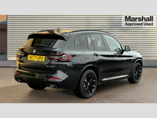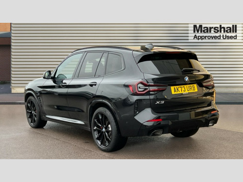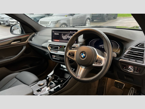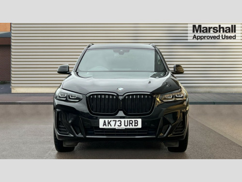 BMW X3 xDrive30d MHT M Sport 5dr Auto Active Guard, Attentiveness assist, BMW Live Cockpit Professional nav system including 12.3" instrument display + 12.3 high resolution control display, BMW Online services, BMW Teleservices, Brake pad wear indicator in front and rear, Check Control warning system for monitoring of lights and door/luggage compartment open warning, Condition based service - BMW service history, electronic service booklet, integrated owner's handbook, Connected drive services, Electric boot lid, Front/rear Parking distance control, iDrive touch controller with 8 favourite buttons, Instrument cluster with speedometer with mph readout, tachometer, fuel gauge and oil temperature gauge, Lights on warning by audio warning signal when ignition is switched off, Oil sensor for level and grade, warning by check control system, On board computer - average speed+fuel consumption, service interval, clock/date, odometer/trip meter, outside temperature display and ice warning, Optimum shift indicator, Personal Profile - automatic lock when driving away selectable, Run flat indicator, Stop/start system, Variable sports power steering with drive performance control Sport+ mode, Diesel particulate filter, Incorrect fuelling protection, Larger capacity fuel tank, M sport suspension, Multi-link rear suspension, Sport automatic transmission with gearshift paddles, BMW professional radio/CD/MP3, DAB tuner, Acoustic glazing, Automatic windscreen wipers and automatic headlight, Black finish on B pillars, Body colour door handles, Body colour electric adjust heated aspherical door mirrors, Body colour roof mouldings, Body coloured bumpers, Direction indicator, side repeaters, integrated in exterior mirrors, Dynamic brake lights, Exhaust tailpipes - dual, round, split left and right with chrome finisher, Fingertip control / anti-trap function on electric window, Folding wing mirrors with auto dimming, Follow me home headlights, Front and rear bumper system with replaceable deformation elements, Front and rear electric windows, Gloss chrome tailpipes finishers, Green tinted heat insulating glass, Heated windscreen washer jets, High beam assistant, High gloss black shadow line roof rails, High gloss shadowline exterior trim in decorative moulding side frame/recess cover/guide rail/B, C pillars/mirror frame and triangle with mirror base, High level 3rd brake light incorporating LED Technology, Interior rear view electrochromatic mirror with automatic anti dazzle function, LED tail lights, Lightweight engineering, M aerodynamic bodystyling, M Sport entry door sill strips, Model designation, Rain sensor, Rear side wing doors, Rear wing door, Rear wiper, Shark fin antenna, Side exterior M designation badges, Visible VIN plate, Welcome lighting, Windscreen wipers with adjustable interval, 12V power point in luggage area, 12V power socket in front centre console, 2 x USB Type C ports for charging and data transmission (front centre console) and 2 x USB Type C ports for charging (rear centre console), 3 rear headrests, 3 seat bench in 2nd row, 3 zone automatic air conditioning, 4 lashing points to secure luggage, 40:20:40 split folding rear seat with loading system, Ambient lighting, Anthracite headlining, Automatic interior light when door is opened/ignition switched off or via remote key, Floor mats in velour, Foldable storage floor with compartment, Four grab handles integrated in roof lining, Front and rear bottle holders integrated into door trim storage compartments, Front and rear side armrests integrated into door trim, Front centre armrest with storage compartment, Front footwell lights, Front head restraints, Front passenger seat, Front sports seats, Front/rear courtesy lights with soft on/off dimming, Front/rear reading lights, Heated front seats, Isofix rear child seat preparation, Leather gear knob, Lockable glove compartment, Luggage area underfloor compartment, Luggage compartment lighting, M sport leather steering wheel, Multifunction steering wheel, Parcel shelf removeable and storable under boot floor, Reach and rake adjustable steering column, Rear centre armrest with 2 cupholders, Removable / retractable luggage cover, Slope adjustable rear seats, Storage compartment in rear centre console and front/rear door trims, Sun visors with vanity mirrors and ticket pocket, Toolkit located in luggage compartment, Two front cupholders with removable oddments tray/lid, Connected pro pack - X3, ADB - Automatic Differential Brake, Anti-lock braking system (ABS) with brake assist, Automatic Stability Control (ASC), Battery safety cut-off, BMW emergency call, Brake drying, Brake energy regeneration, Braking pre-tensioning, Child locks on rear doors, Cornering brake control (CBC), Crash Sensor - activation of central locking release, hazard warning light and interior lighting, Deactivation of fuel pump in the event of a crash, Driver and front passenger front and side airbags with passenger deactivation and ITS front and rear head airbags, Driver and front passenger knee airbag, DSC+, Dynamic brake control, Dynamic Traction Control - DTC, Electromechanical parking brake, Hill descent control, Hill start assist, Seatbelt security check for front seats, Side impact protection, Three point seatbelts to all seats with front and outer rear pyrotechnic belt tensioners and seat belt force limiters, Two tone horn, Tyre pressure sensor, Ventilated front and rear disc brakes, Warning triangle and first aid kit, Central locking switch for all doors, fuel filler cap and luggage compartment, Electronic engine immobiliser, Locking wheel nuts, Remote control including two integrated key - one button for open/close all lockable content, windows and separate button for open luggage compartment, Remote control Thatcham category 1 alarm, Start/stop button with Comfort Go keyless engine start and auto Start/stop deactivation button, Low rolling resistance tyres