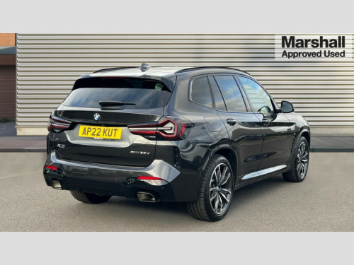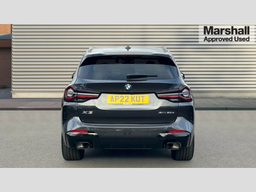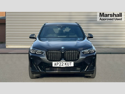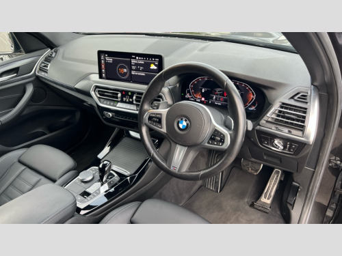 BMW X3 xDrive30d MHT M Sport 5dr Auto Active Guard, Attentiveness assist, BMW Live Cockpit Professional nav system including 12.3" instrument display + 12.3 high resolution control display, BMW Online services, BMW Teleservices, Brake pad wear indicator in front and rear, Check Control warning system for monitoring of lights and door/luggage compartment open warning, Condition based service - BMW service history, electronic service booklet, integrated owner's handbook, Connected drive services, Cruise control with brake function + speed limiter, Electric boot lid, Front/rear Parking distance control, iDrive Controller with 8 favourite buttons, Instrument cluster with speedometer with mph readout, tachometer, fuel gauge and oil temperature gauge, Lights on warning by audio warning signal when ignition is switched off, Oil sensor for level and grade, warning by check control system, On board computer - average speed+fuel consumption, service interval, clock/date, odometer/trip meter, outside temperature display and ice warning, Optimum shift indicator, Personal Profile - automatic lock when driving away selectable, Run flat indicator, Stop/start system, Variable sports power steering with drive performance control Sport+ mode, Diesel particulate filter, Incorrect fuelling protection, Larger capacity fuel tank, M sport suspension, Multi-link rear suspension, Performance Control, Sport automatic transmission with gearshift paddles, BMW professional radio/CD/MP3, DAB tuner, Acoustic glazing, Automatic windscreen wipers and automatic headlight, Black finish on B pillars, Body colour door handles, Body colour electric adjust heated aspherical door mirrors, Body colour roof mouldings, Body coloured bumpers, Direction indicator, side repeaters, integrated in exterior mirrors, Dynamic brake lights, Exhaust tailpipes - dual, round, split left and right with chrome finisher, Fingertip control / anti-trap function on electric window, Folding wing mirrors with auto dimming, Follow me home headlights, Front and rear bumper system with replaceable deformation elements, Front and rear electric windows, Gloss chrome tailpipes finishers, Green tinted heat insulating glass, Heated windscreen washer jets, High beam assistant, High gloss black shadow line roof rails, High gloss shadowline exterior trim in decorative moulding side frame/recess cover/guide rail/B, C pillars/mirror frame and triangle with mirror base, High level 3rd brake light incorporating LED Technology, Interior rear view electrochromatic mirror with automatic anti dazzle function, LED tail lights, Lightweight engineering, M aerodynamic bodystyling, M Sport entry door sill strips, Model designation, Rear side wing doors, Rear wing door, Rear wiper, Shark fin antenna, Side exterior M designation badges, Visible VIN plate, Welcome lighting, Windscreen wipers with adjustable interval, 12V power socket in front centre console, 3 rear headrests, 3 seat bench in 2nd row, 3 zone automatic air conditioning, 4 lashing points to secure luggage, 40:20:40 split folding rear seat with loading system, Ambient lighting, Anthracite headlining, Automatic interior light when door is opened/ignition switched off or via remote key, Driver seat backrest width adjustment, Floor mats in velour, Foldable storage floor with compartment, Four grab handles integrated in roof lining, Front and rear bottle holders integrated into door trim storage compartments, Front and rear side armrests integrated into door trim, Front centre armrest with storage compartment, Front footwell lights, Front head restraints, Front passenger seat, Front sports seats, Front/rear courtesy lights with soft on/off dimming, Front/rear reading lights, Heated front seats, Isofix rear child seat preparation, Leather gear knob, Luggage area underfloor compartment, Luggage compartment lighting, M sport leather steering wheel, Multifunction steering wheel, Parcel shelf removeable and storable under boot floor, Reach and rake adjustable steering column, Rear centre armrest with 2 cupholders, Removable / retractable luggage cover, Slope adjustable rear seats, Storage compartment in rear centre console and front/rear door trims, Sun visors with vanity mirrors and ticket pocket, Toolkit located in luggage compartment, Two front cupholders with removable oddments tray/lid, Vernasca leather upholstery, Connected pro pack - X3, Driving assistant pack - X3, ADB - Automatic Differential Brake, Anti-lock braking system (ABS) with brake assist, Automatic Stability Control (ASC), Battery safety cut-off, BMW emergency call, Brake drying, Brake energy regeneration, Braking pre-tensioning, Child locks on rear doors, Cornering brake control (CBC), Crash Sensor - activation of central locking release, hazard warning light and interior lighting, Deactivation of fuel pump in the event of a crash, Driver and front passenger front and side airbags with passenger deactivation and ITS front and rear head airbags, DSC+, Dynamic brake control, Dynamic Traction Control - DTC, Electromechanical parking brake, Hill descent control, Hill start assist, Seatbelt security check for front seats, Side impact protection, Three point seatbelts to all seats with front and outer rear pyrotechnic belt tensioners and seat belt force limiters, Two tone horn, Tyre pressure sensor, Ventilated front and rear disc brakes, Warning triangle and first aid kit, Central locking switch for all doors, fuel filler cap and luggage compartment, Electronic engine immobiliser, Locking wheel nuts, Remote control including two integrated key - one button for open/close all lockable content, windows and separate button for open luggage compartment, Remote control Thatcham category 1 alarm, Start/stop button with Comfort Go keyless engine start and auto Start/stop deactivation button, Low rolling resistance tyres
