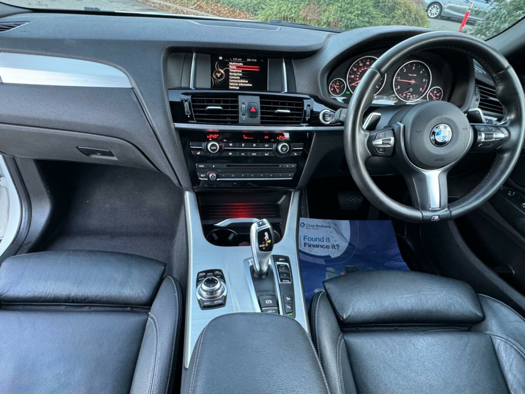 Mot till:19/01/2026 full mot given to new owner, This 2017 BMW X4 20d M Sport presents a compelling proposition with its remarkably low mileage for its age, having covered just 63,941 miles. This four wheel drive diesel model, adhering to Euro 6 emissions standards, boasts a clear vehicle history check, offering peace of mind. The M Sport trim enhances its appeal, featuring Xenon headlights with a follow me home function, and automatic activation thanks to the rain sensor. Inside, you'll find enhanced Bluetooth telephone preparation with a USB audio interface and voice control, alongside front seat heating for added comfort. The BMW X4 20d M Sport offers a blend of performance and practicality, with a respectable 0-62mph acceleration time of 8.0 seconds. Its fuel economy is a notable highlight, achieving an impressive 54 miles per gallon, which is better than many similar vehicles. Furthermore, this model benefits from low CO2 emissions and generous boot space, making it a versatile choice for both daily commutes and longer journeys.led white side lights, cruise control , stop start air-conditioning automatic headlights front and rear fog light, multimedia connectivity aux USB Bluetooth, rear parking sensors, stock code:142017, 110gbp doc fees applies, low finance rates available on our newer cars in house. Specification information is supplied by CAP,HPI and may vary to the actual car. DEAR FINANCE CUSTOMERS Our finance companies we use for you are FREE YES FREE for you to arrange via Cg Motorland's website.. we will then attach a £210 for an Rac warranty with it which can be also extended if required. IF you decide to arranged OUTSIDE of our website finance company. It is compulsory to pay there charges what ever they will charge you/usplus ours standard £320 which as part of a package BUT WE will ALSO give you as a bonus an Rac warranty with it which can be also extended if required. hanced bluetooth telephone preparation with usb audio interface and voice control, nevada leather - black, extended storage, 19in alloy wheels - light m double-spoke style 622m, air conditioning - automatic - dual zone, airbags, alarm system - thatcham 1 with remote control and engine immobiliser, ambient lighting, anti roll bars - front and rear, armrest - front with storage compartment, armrest - rear, automatically dimming rear view mirror, auxiliary input point for auxiliary playing devices, b pillar - black mat, bmw connecteddrive online services, bmw emergency call, bmw navigation system, bmw professional radio with single cd player - with mp3 playback compatibility, bmw teleservices, bluetooth hands free with usb audio interface, brake force display, central locking for doors boot and fuel flap activated via remote key or cabin switch, child locking system - rear doors, child seat isofix attachment - rear, courtesy lights - front and rear with soft on-off dimming, cruise control with brake function, cup holders - centre console with roll cover, dab digital radio, dsc - dynamic stability control with extended contents, deformation zones - front and rear, door handles - body colour, door sill finishers - m designation, drive performance control with eco pro - comfort and sport modes, electric windows - front and rear with open-close fingertip control - anti-trap facility and comfort closing function, electro mechanical parking brake, embellishers for instrument panel - black high-gloss, exhaust tailpipe - single oval with chrome finisher, exterior mirrors in body colour, exterior trim - high-gloss shadowline, first aid kit and warning triangle, floor mats - velour, footwell lights - front, glove compartment - illuminated, grab handles with coat hooks - rear, hdc - hill descent control, head restraints - front and rear, headlights - height adjustment, headlights - washer system, headlining - anthracite, heated windscreen washer jets, high level third brake light, incorrect fuelling protection system, indicator lenses - clear, instrument binnacle with speedometer - tachometer - fuel level and consumption, interior trim - brushed aluminium, kidney grille - chrome with black vertical slats, led fog lights - front, loudspeaker system with six speakers, luggage compartment - illuminated with four lashing eyes in boot floor, luggage compartment - removable cover, m aerodynamic bodystyling, m leather steering wheel with gearshift paddles, m sport package, model designation, obc - on-board computer, pdc - park distance control - front and rear, performance control, power sockets - 12v in front centre console and 12v in luggage compartment, rain sensor with automatic headlight activation, reading lights - front and rear, real time traffic information, rear fog light, run flat tyres, seat belts - front inertia reel with pyrotechnical belt latch tensioner and belt force limiter, seat belts - rear - three with inertia reel, seat heating - front, seats - front sports, seats - manual adjustment for height - fore and aft position - recline angle and headrest, servotronic steering, side impact protection, split folding rear seat - 40-20-40, start-stop button with keyless operation, steering column with manual reach and rake adjustment, steering wheel - gearshift paddles, storage pockets in both front doors, storage trays in centre console, sun visors with illuminated vanity mirrors and ticket pocket, suspension - sport, tpms - tyre pressure monitoring system, tailgate operation - automatic, through-loading system, two tone horn, variable sport steering, wheels - locking wheel nuts, xenon headlights, xenon headlights with follow-me-home function, idrive controller on centre console with 6.5in colour display, xdrive status display