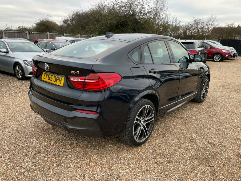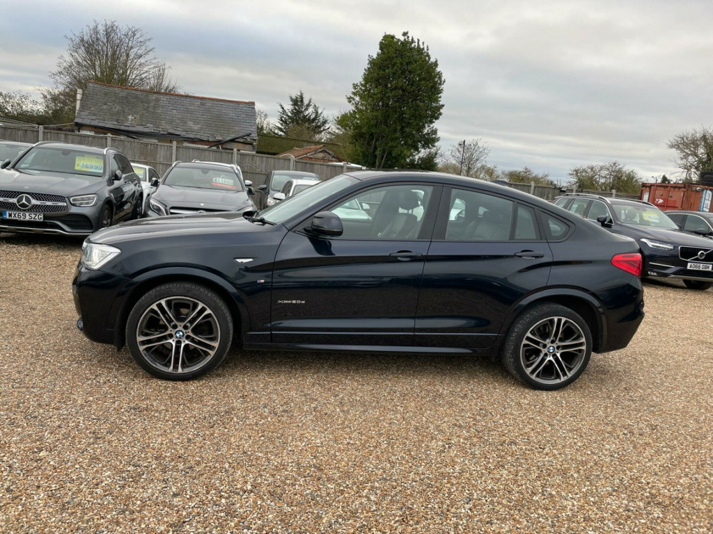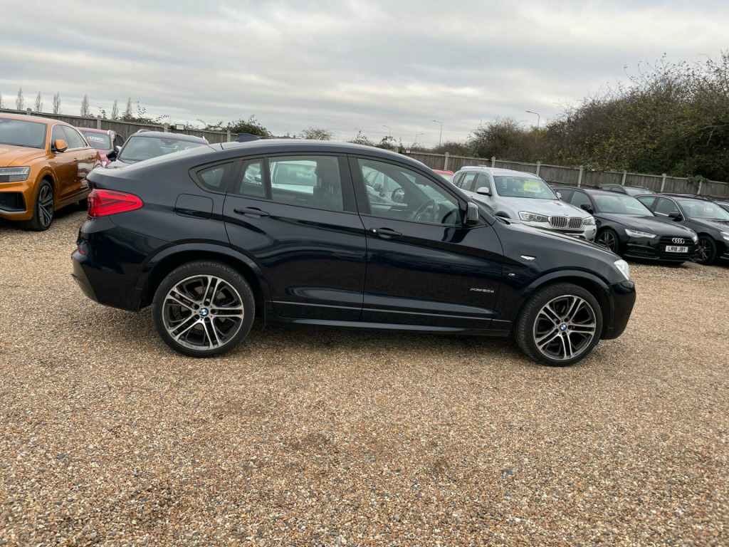 FREE 12 MONTHS AA BREAKDOWN COVER, ZERO DEPOSIT FINANCE AVAIL, Hpi clear, Just been serviced, 2 Former keepers, all previous Mot's avail. We are located in CANVEY ISLAND, ESSEX SS8 0QDThis 2015 BMW X4 20d M Sport offers a compelling blend of style and performance, boasting a Euro 6 compliant 2.0L diesel engine and a sophisticated four wheel drive system. As an M Sport model, it comes equipped with the desirable M Sport trim, enhancing its sporty appeal. Inside, you'll find comfort and convenience with heated front seats, automatic two zone climate control, and enhanced Bluetooth telephone preparation featuring a USB audio interface and voice control. Parking is made easier with front and rear Park Distance Control, while Xenon headlights provide excellent visibility.The BMW X4 20d M Sport delivers an impressive 0-62mph acceleration time of just 8.0 seconds, demonstrating its dynamic capabilities. This performance is matched by a remarkable fuel economy of 54 mpg, indicating efficiency that surpasses many similar vehicles. Furthermore, the X4 provides generous boot space, making it a practical choice for everyday use and longer journeys alike.. 12V Power Socket - Centre Console, 19in Alloy Wheels - Light M Double-Spoke Style 622M, 40-20-40 Split Folding Rear Seats, ABS - Anti Lock Braking System, ASC - Automatic Stability Control, Additional Detachable Cupholder, Air Conditioning - Automatic with Two-Zone Control, Airbags - Curtain Head Protection system, Airbags - Driver, Airbags - Front Side, Airbags - Passenger, Airbags - Passenger Deactivation, Alarm System Thatcham 1 with Remote Control, Ambient Interior Lighting, Anti Roll Bars - Front and Rear, Armrest - Front with Storage Compartment, Armrest - Rear Centre, Automatically Dimming Rear View Mirror, Auxiliary Input, BMW Emergency Call, BMW Individual Reading Lights - Rear, BMW Professional Radio - Single CD and MP3, BMW TeleServices, Bluetooth Hands Free with USB Audio Interface, Brake Drying, Brake Fade Compensation, Brake Force Display, Brake Pre-Tensioning, CBC - Cornering Brake Control, Central Locking - Remote, Child Proof Locking System - Rear Doors, Child Seat ISOFIX Attachment - Rear x2, Crash Sensor - Activating Central Locking-Hazard Warning Lights-Fuel Cut Off, Cruise Control with Brake Function, DAB Digital Radio, DBC - Dynamic Brake Control, DSC - Dynamic Stability Control - Stabilises the Vehicle in Extreme Situations - Controls Traction, DTC - Dynamic Traction Control, Daytime Running Lights, Door Handles - Body Colour, Door Mirrors - Body Coloured, Door Mirrors - Electric and Heated and Aspheric, Door Sill Finishers - M Designation, Drive Performance Control with ECO PRO - Comfort and Sport Modes, EBD - Electronic Brake-Force Distribution, Electric Windows - Front and Rear with Open-Close Fingertip Control, Electro Mechanical Parking Brake, Embellishers for Instrument Panel - Black High-Gloss, Engine Immobiliser, Exterior Trim - High-Gloss Shadowline, First Aid Kit, Floor Mats - Velour, Follow Me Home Headlight Function, Footwell Lights - Front, Glove Compartment - Illuminated, Grab Handles with Coat Hooks, HDC - Hill Descent Control, Head Restraints - Front and Rear, Headlights - Automatic Activation, Headlights - Height Adjustment, Headlights - Washer System, Headlining - Anthracite, Heated Windscreen Washer Jets, High Level Third Brake Light, Hill Start Assist, Incorrect Fuelling Protection System, Interior Trim - Brushed Aluminium, Keyless Start, Kidney Grille - Chrome with Black Vertical Slats, LED Fog Lights - Front, Lashing Eyes in Luggage Compartment x4, Locking Wheel Bolts, Luggage Compartment - Removable Cover, M Aerodynamic Bodystyling, M Sport Package, Media Package - BMW Business, Multifunction Controls for Steering Wheel, Navigation System - BMW Business Advanced, OBC - On-Board Computer, Optimum Shift Indicator, PDC - Park Distance Control - Front, PDC - Park Distance Control - Rear, Performance Control, Power Socket - 12V in Luggage Compartment, Rain Sensor, Reading Lights - Front and Rear, Run Flat Tyres, Seats - Front - Manual Height Adjustment, Seats - Front Heated, Side Impact Protection, Speakers x6, Sport Seats - Front, Steering Column with Manual Reach and Rake Adjustment, Steering Wheel - Gearshift Paddles, Steering Wheel - Leather - M Sport, Storage Compartment - Front Door Pockets, Storage Compartment - Trays in Centre Console, Sun Visors with Illuminated Vanity Mirrors and Ticket Holder, Suspension - Sport, TPMS - Tyre Pressure Monitoring System, Tailgate Operation - Powered, USB Audio Interface, Variable Sport Steering, Voice Control - Phone, Warning Triangle, Xenon Headlights, iDrive Controller on Centre Console with 6.5in Colour Display, 20in Alloy Wheels - Light M Double-Spoke Style 310M, Media Package - BMW Professional, Enhanced Bluetooth Telephone Preparation with USB Audio Interface and Voice Control, Reversing Assist Camera, Nevada Leather - Black with Black Interior. Part service history