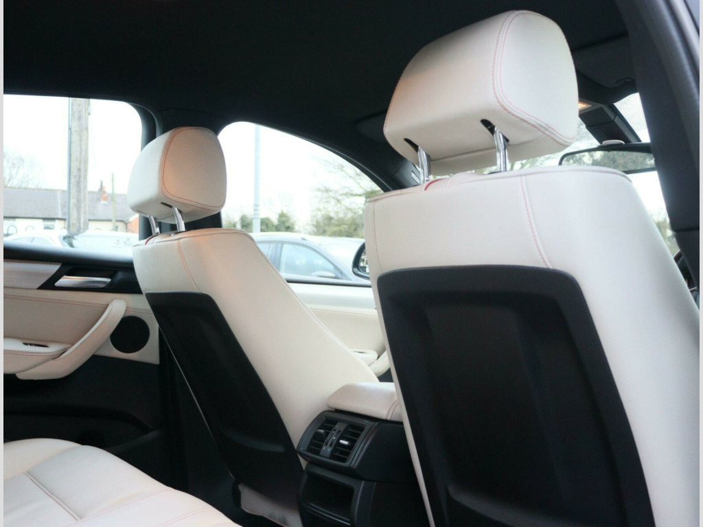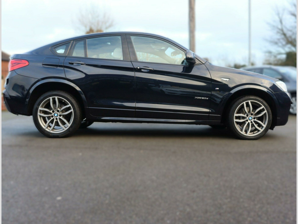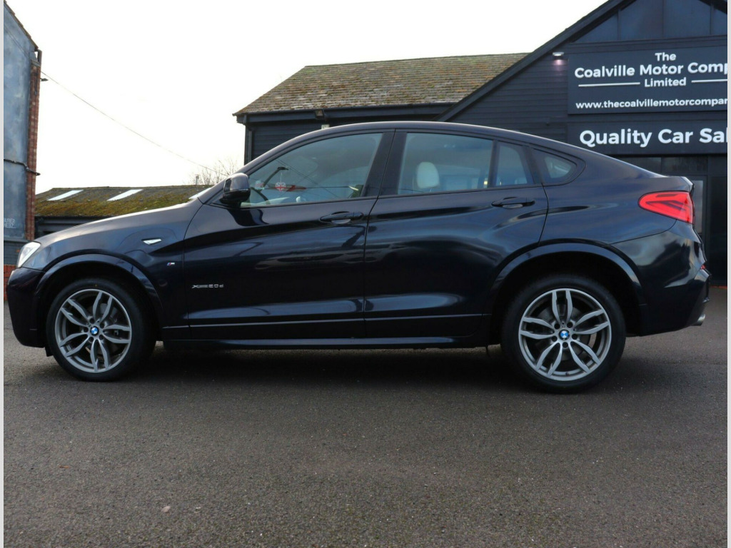 This 2015 BMW X4 20d M Sport offers a compelling blend of style and performance, boasting a Euro 6 compliant 2.0L diesel engine and a sophisticated four wheel drive system. As an M Sport model, it comes equipped with the distinctive M Sport trim, enhancing its sporty appeal. Notable features include Xenon headlights with automatic activation, ensuring optimal visibility, and Park Distance Control for both the front and rear, making manoeuvring in tight spaces effortless. For your connectivity needs, it offers Bluetooth hands free with USB audio interface, allowing for seamless integration of your devices.Experience impressive efficiency with a highlight fuel economy of 54 miles per gallon, alongside low CO2 emissions that contribute to a more environmentally conscious drive. This X4 also provides generous boot space, catering to your practical needs. Its acceleration is noteworthy, achieving 0 to 62 miles per hour in just 8.0 seconds, demonstrating a dynamic performance that sets it apart from other vehicles in its class.In Addition the car comes with a Recent MOT, A mechanical/safety check and will be valeted. FREE DELIVERY AVAILABLE! NATIONWIDE CONTACTLESS DELIVERY (terms and conditions apply).We include 90 day warranty as standard plus an option to extend a comprehensive warranty for up to 3 years!Reserve the car for £99 (Refundable) online visit us at www.thecoalvillemotorcompany.com or via telephoneTest drive before you buy, with no commitment and completely hassle free experience. We accept all major debit and credit cards. Bank transfer and cashFinance also available, personalized to meet your requirements. Part exchange welcome.Drive away insurance available.Please contact our friendly sales team for more information on 01164843301. Viewing by AppointmentsFCA Approved - VAT Registered - All Vehicles HPI Clean **** THE COALVILLE MOTOR COMPANY LIMITED - 145 Thornborough Road, Coalville, LE67 3TN. **** hanced bluetooth telephone preparation with usb audio interface and voice control, nevada leather - ivory white application and stamping black, 12v power socket - centre console, 19in alloy wheels - light m double-spoke style 622m, 40-20-40 split folding rear seats, abs - anti lock braking system, asc - automatic stability control, additional detachable cupholder, air conditioning - automatic with two-zone control, airbags - curtain head protection system, airbags - driver, airbags - front side, airbags - passenger, airbags - passenger deactivation, alarm system thatcham 1 with remote control, ambient interior lighting, anti roll bars - front and rear, armrest - front with storage compartment, armrest - rear centre, automatically dimming rear view mirror, auxiliary input, bmw emergency call, bmw individual reading lights - rear, bmw professional radio - single cd and mp3, bmw teleservices, bluetooth hands free with usb audio interface, brake drying, brake fade compensation, brake force display, brake pre-tensioning, cbc - cornering brake control, central locking - remote, child proof locking system - rear doors, child seat isofix attachment - rear x2, crash sensor - activating central locking-hazard warning lights-fuel cut off, cruise control with brake function, dab digital radio, dbc - dynamic brake control, dsc - dynamic stability control - stabilises the vehicle in extreme situations - controls traction, dtc - dynamic traction control, daytime running lights, door handles - body colour, door mirrors - body coloured, door mirrors - electric and heated and aspheric, door sill finishers - m designation, drive performance control with eco pro - comfort and sport modes, ebd - electronic brake-force distribution, electric windows - front and rear with open-close fingertip control, electro mechanical parking brake, embellishers for instrument panel - black high-gloss, engine immobiliser, exterior trim - high-gloss shadowline, first aid kit, floor mats - velour, follow me home headlight function, footwell lights - front, glove compartment - illuminated, grab handles with coat hooks, hdc - hill descent control, head restraints - front and rear, headlights - automatic activation, headlights - height adjustment, headlights - washer system, headlining - anthracite, heated windscreen washer jets, high level third brake light, hill start assist, incorrect fuelling protection system, interior trim - brushed aluminium, keyless start, kidney grille - chrome with black vertical slats, led fog lights - front, lashing eyes in luggage compartment x4, locking wheel bolts, luggage compartment - removable cover, m aerodynamic bodystyling, m sport package, media package - bmw business, multifunction controls for steering wheel, navigation system - bmw business advanced, obc - on-board computer, optimum shift indicator, pdc - park distance control - front, pdc - park distance control - rear, performance control, power socket - 12v in luggage compartment, rain sensor, reading lights - front and rear, run flat tyres, seats - front - manual height adjustment, seats - front heated, side impact protection, speakers x6, sport seats - front, steering column with manual reach and rake adjustment, steering wheel - gearshift paddles, steering wheel - leather - m sport, storage compartment - front door pockets, storage compartment - trays in centre console, sun visors with illuminated vanity mirrors and ticket holder, suspension - sport, tpms - tyre pressure monitoring system, tailgate operation - powered, usb audio interface, variable sport steering, voice control - phone, warning triangle, xenon headlights, idrive controller on centre console with 6.5in colour display